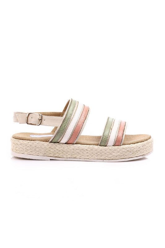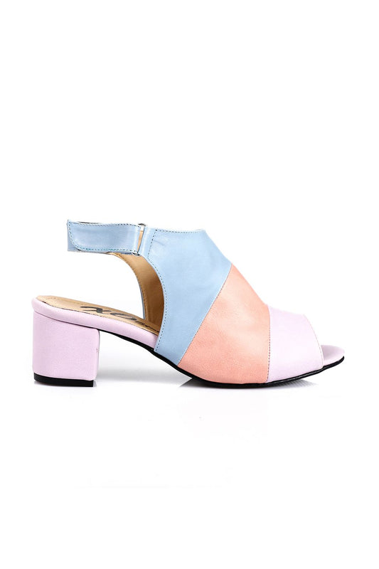 صندل ثلاثي الألوان بكعب، أخضر فاتح