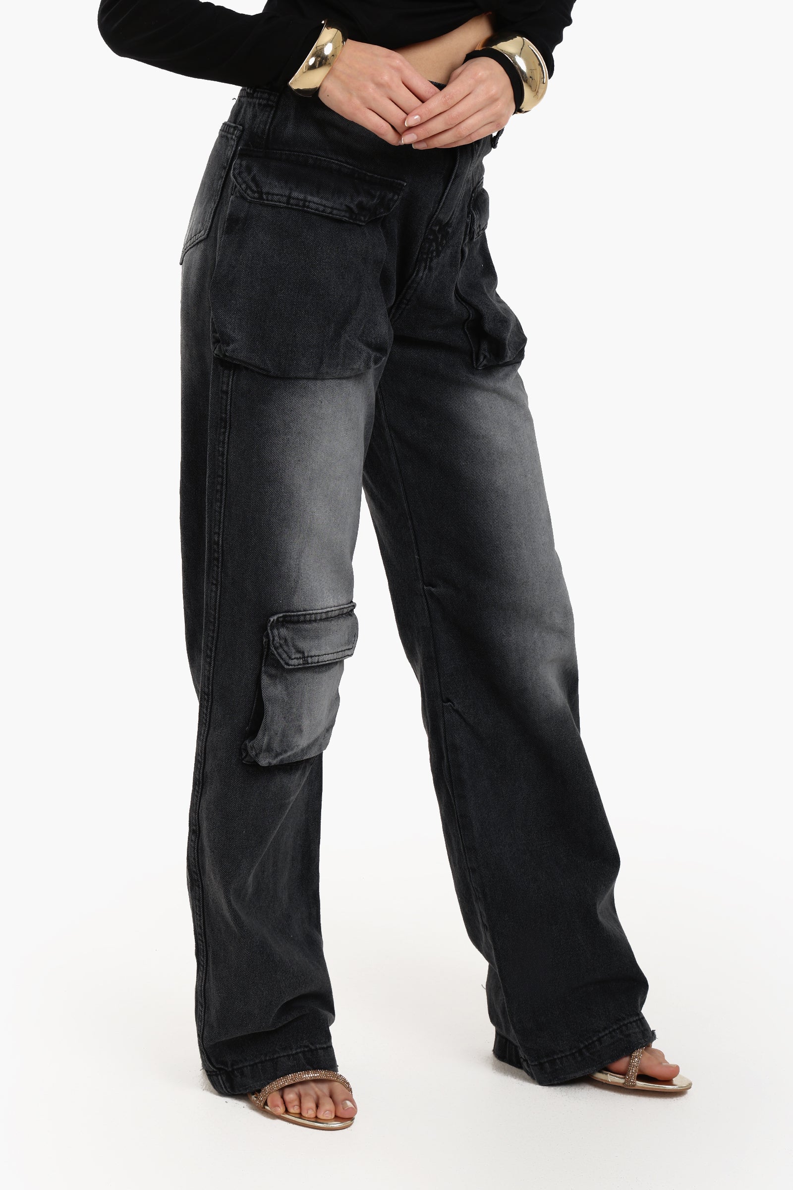 These Washed Dark Grey Cargo Jeans combine street-style edge with everyday functionality. Made from high-quality cotton, they feature a distinctive washed pattern and a loose fit that offers comfort without compromising style. The wide leg cut adds a modern twist, while the full-length design and traditional button and zip fly closure provide a classic touch. Equipped with standard pockets and three additional flop cargo pockets, these jeans are as practical as they are fashionable—making them a versatile piece for bold, casual looks.