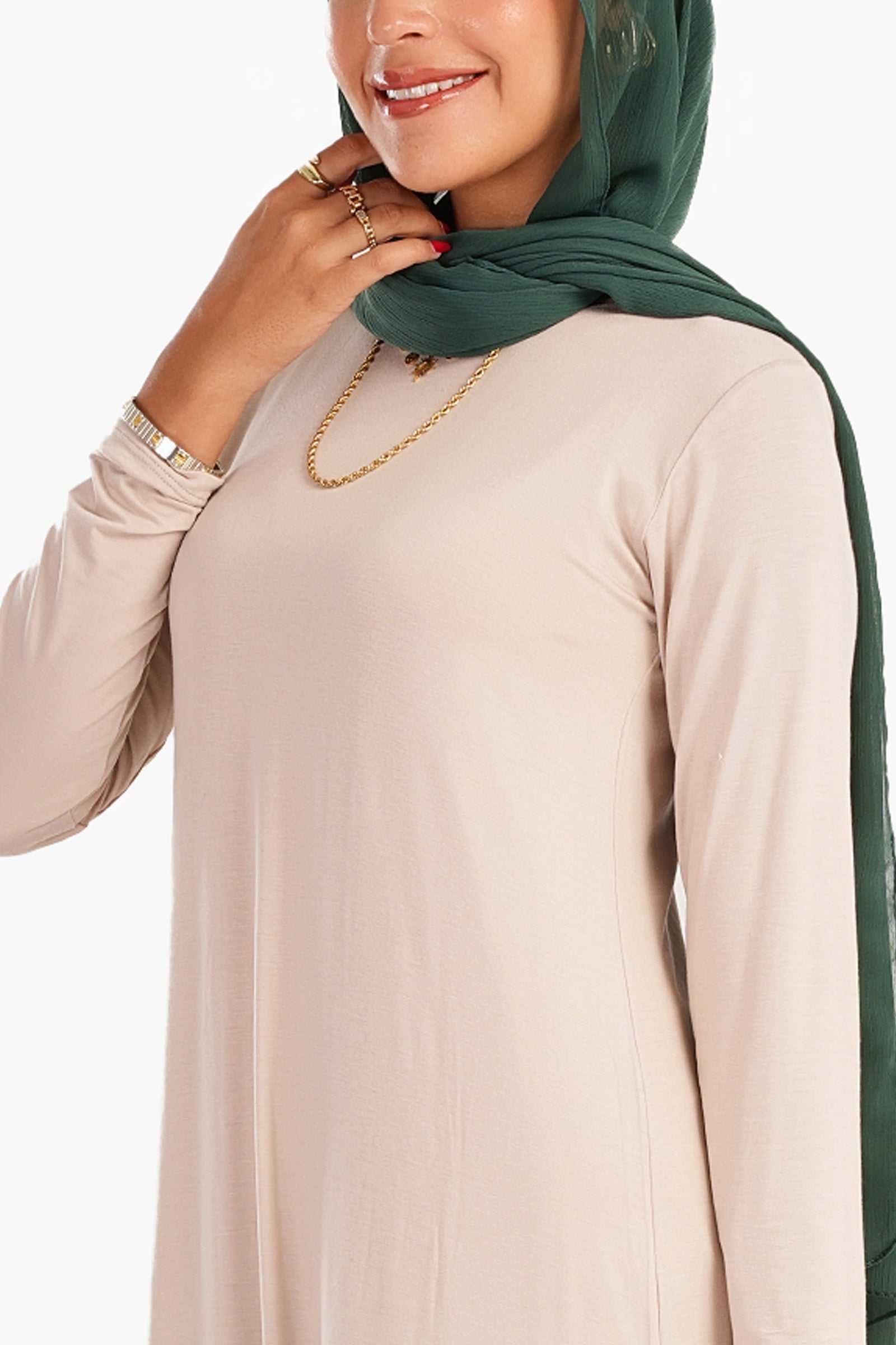This maxi dress made from soft viscose is the perfect blend of comfort and elegance. With a regular fit and a solid pattern, it offers a classic silhouette that flatters a variety of body types. The round neck provides a timeless look, while the long sleeves add warmth and sophistication, making it suitable for various occasions. Designed for ease, this slip-on dress allows for quick and effortless styling, making it a staple piece for any wardrobe.