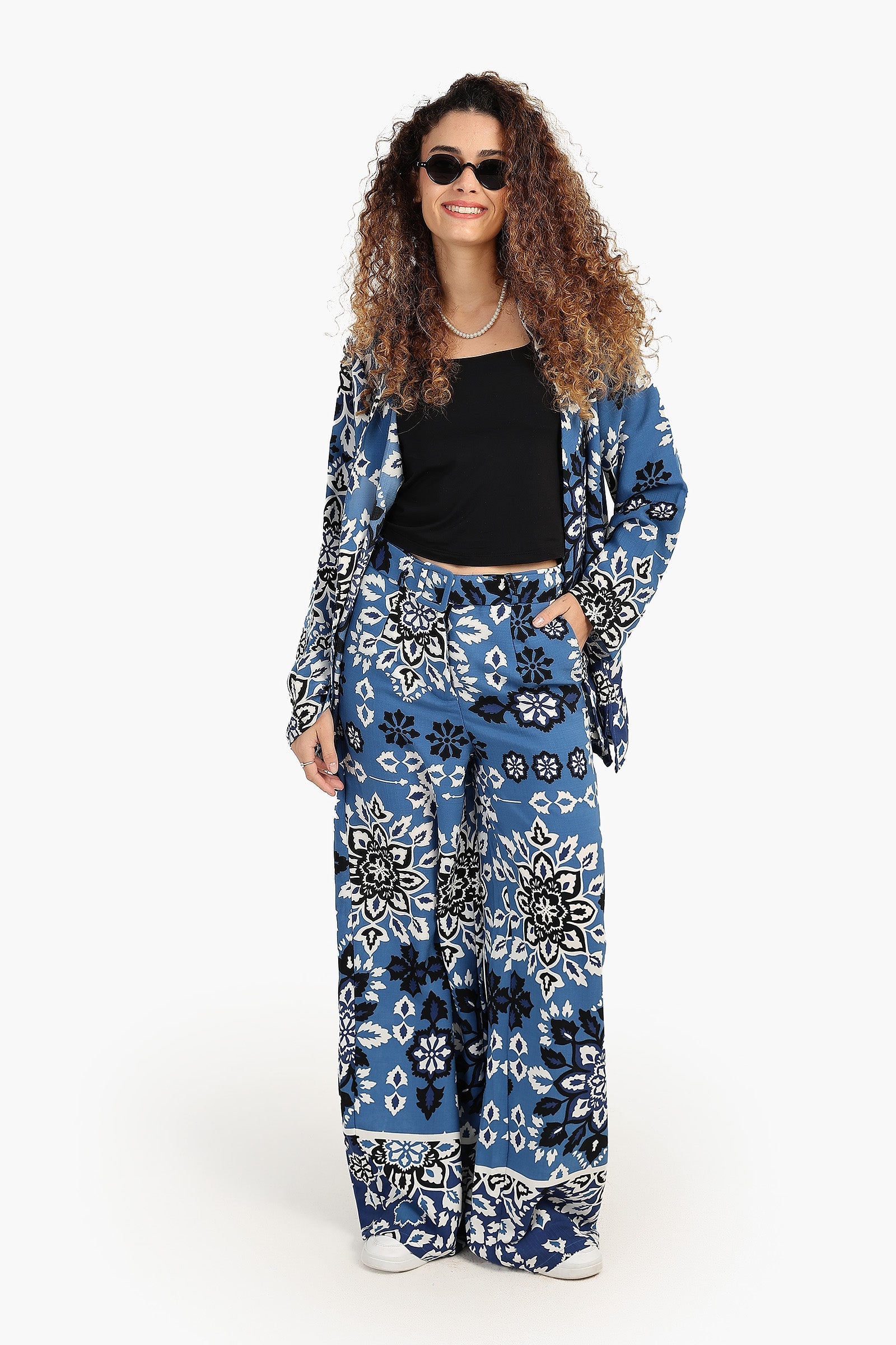 حسّني خزانة ملابسكِ مع هذا البنطال المطبوع الأنيق واسع الساقين، المثالي للمناسبات الكاجوال وشبه الرسمية. مصمم بقصّة عادية، يتميز بخصر عالٍ لإطلالة أنيقة وحزام قابل للفصل لمزيد من المرونة. يضمن تصميمه الواسع أقصى درجات الراحة والحركة، بينما يضفي تصميمه الطويل لمسةً أنيقة. مع جيوب جانبية عملية وتصميم سهل الارتداء، يجمع هذا البنطال بين العملية والأناقة.