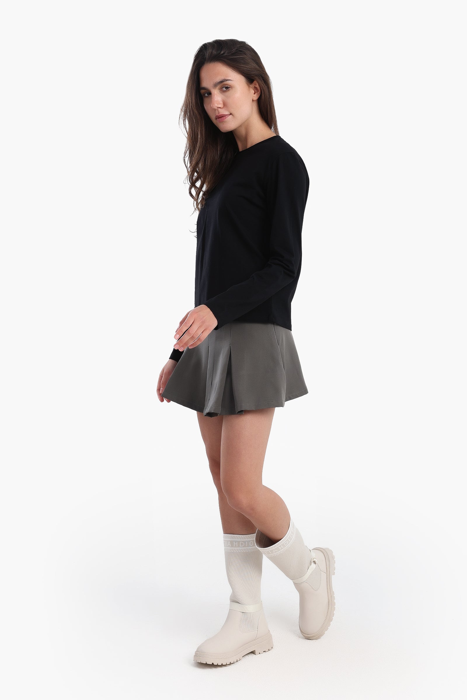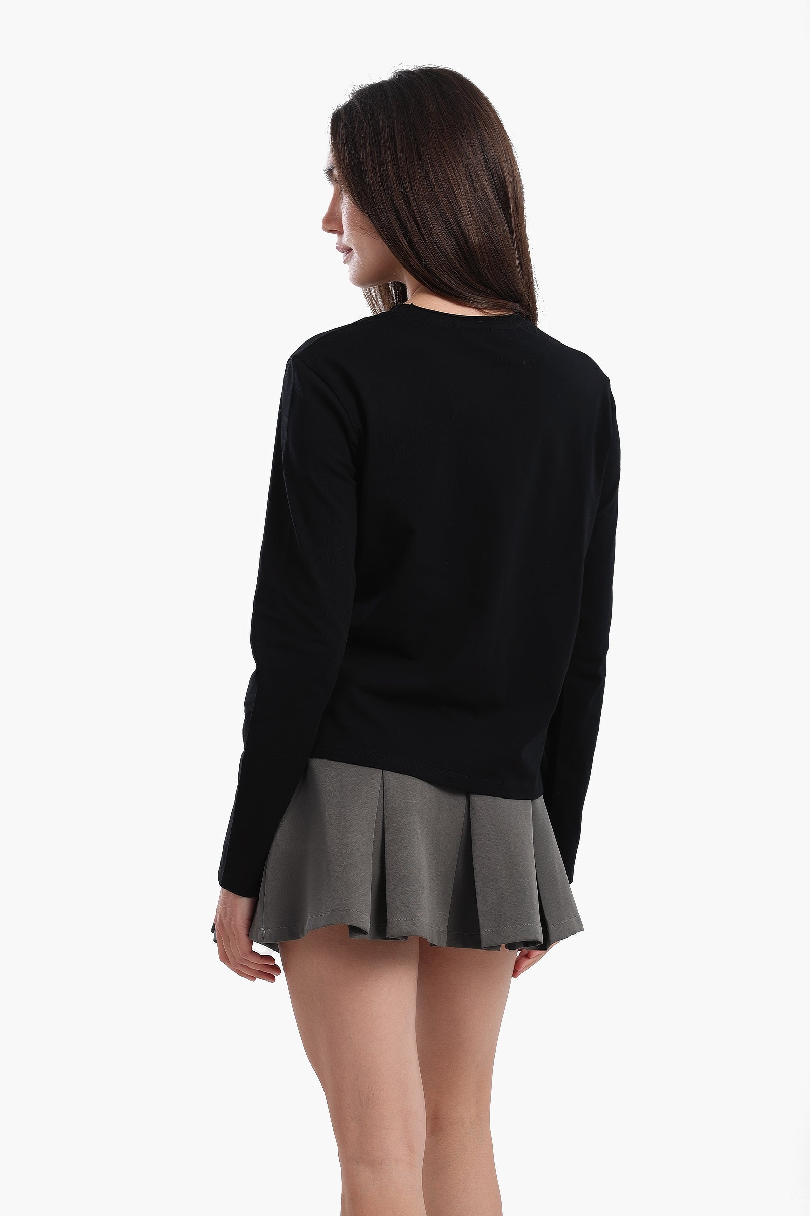 بأكمام طويلة، هذه البلوزة مثالية للارتداء فوق ملابس أخرى أو بمفردها في الأيام الباردة. تصميمها سهل الارتداء يجعلها قطعة سهلة الارتداء ستحبينها مرارًا وتكرارًا. بسيطة، أنيقة، وعملية، إنها الإضافة المثالية لمجموعة ملابسك الأساسية.