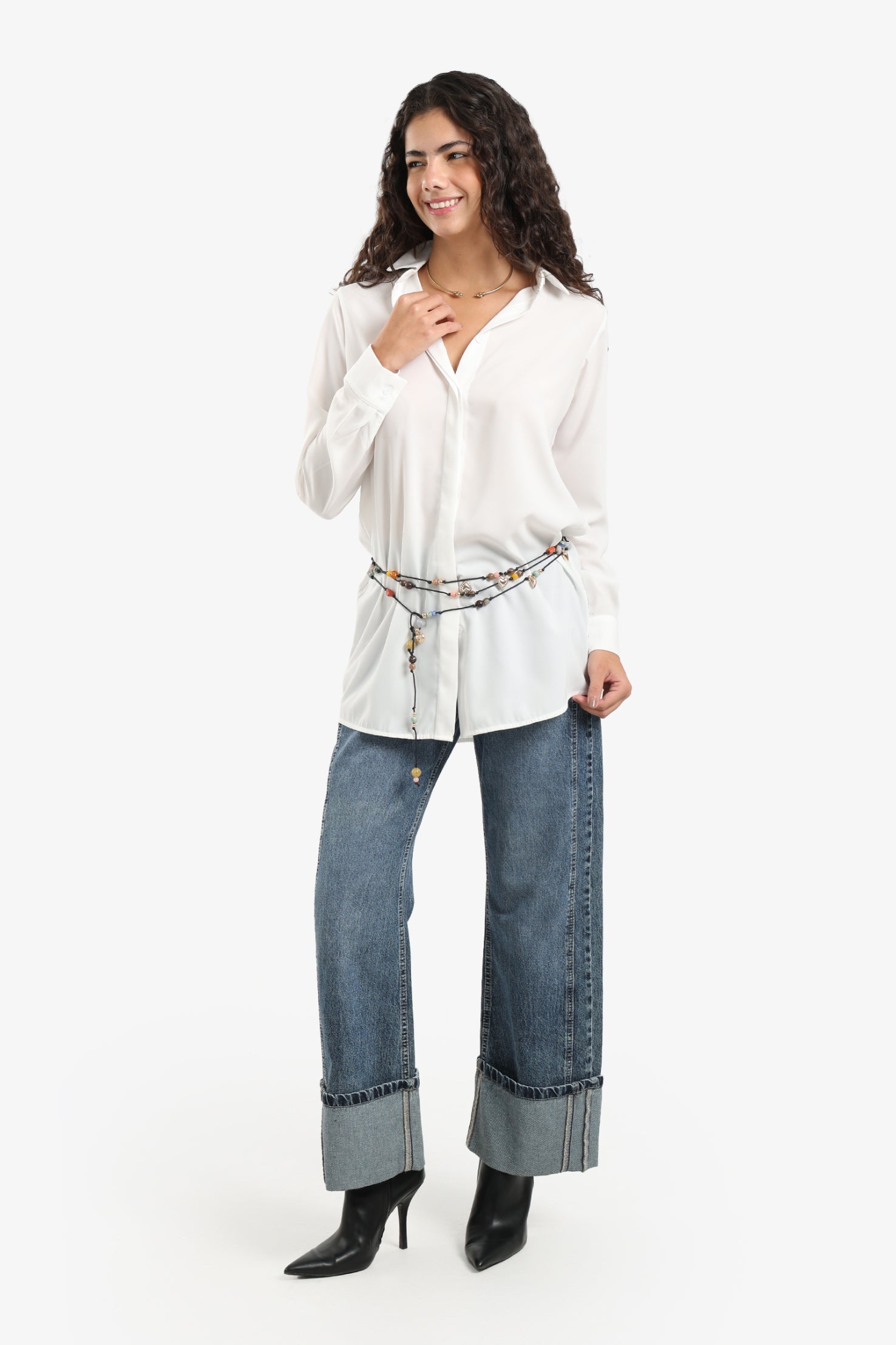 ارتقِ بإطلالتك اليومية مع قميص البوبلين هذا، المصمم لإطلالة كلاسيكية متعددة الاستخدامات. مصنوع من قماش البوبلين خفيف الوزن، يتميز بقصّة مريحة ونقشة متناسقة تُسهّل تنسيقه في المناسبات الرسمية وغير الرسمية. ياقة الياقة وأكمامها الطويلة تُضفي لمسة كلاسيكية، بينما يُضفي إغلاق الأزرار مع فتحة مخفية لمسةً أنيقةً وراقية.