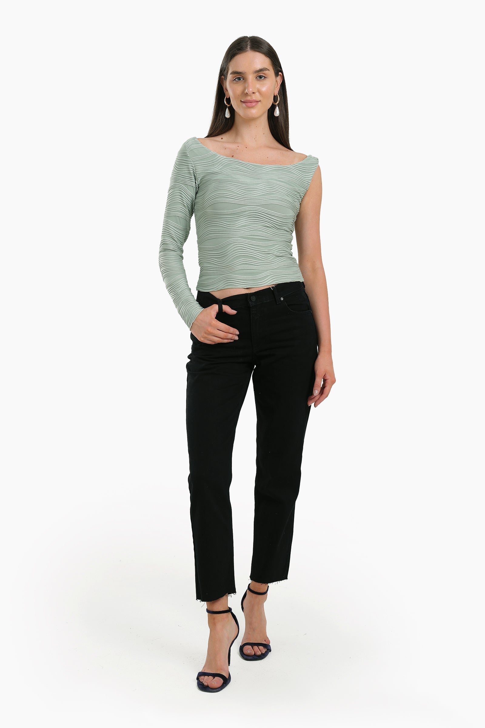 ارتقِ بإطلالة الجينز مع هذا الجينز الأسود الأنيق والمريح "مام فيت"، المصنوع من قطن عالي الجودة يسمح بمرور الهواء. صُمم بلون أسود سادة كلاسيكي، ويتميز بقصة "مام فيت" أنيقة، بخصر عالٍ وساق مدببة قليلاً، ليمنحكِ مزيجًا مثاليًا من الراحة والقوام المريح. يضمن لك الإغلاق بزر وسحاب ملاءمة محكمة، بينما تضيف الجيوب الأربعة العملية لمسة عملية يومية. يتميز هذا الجينز بقصته الكاملة وحاشية غير مكتملة، مما يمنحه مظهرًا عصريًا وعصريًا. سهل الارتداء والتنسيق، إنه خياركِ الأمثل لإطلالات مريحة وأنيقة في آن واحد.