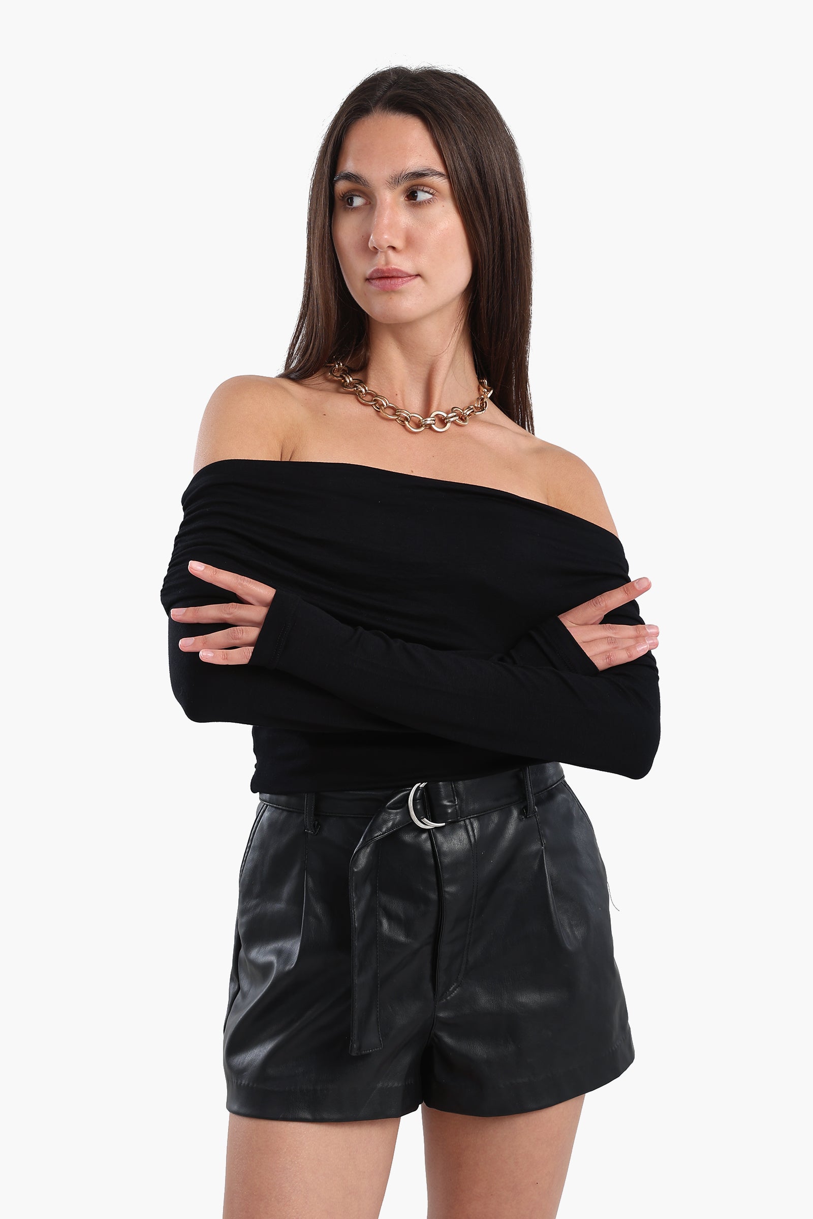 اخطفي الأنظار بهذه البلوزة السوداء المكشوفة الأكتاف ، قطعة أنيقة ومتعددة الاستخدامات تضفي سحرًا لا مثيل له. صُممت هذه البلوزة بقصّة ضيقة تُبرز جمال قوامكِ، وتتميز بتصميم أنيق مكشوف الأكتاف يُبرز خط رقبتكِ وكتفيكِ. تضفي الأكمام الطويلة لمسة من الأناقة، ما يجعلها مناسبة للمناسبات الرسمية وغير الرسمية. تصميمها سهل الارتداء يضمن سهولة ارتدائها، مما يجعلها إضافة أساسية لخزانة ملابسكِ في أي موسم.