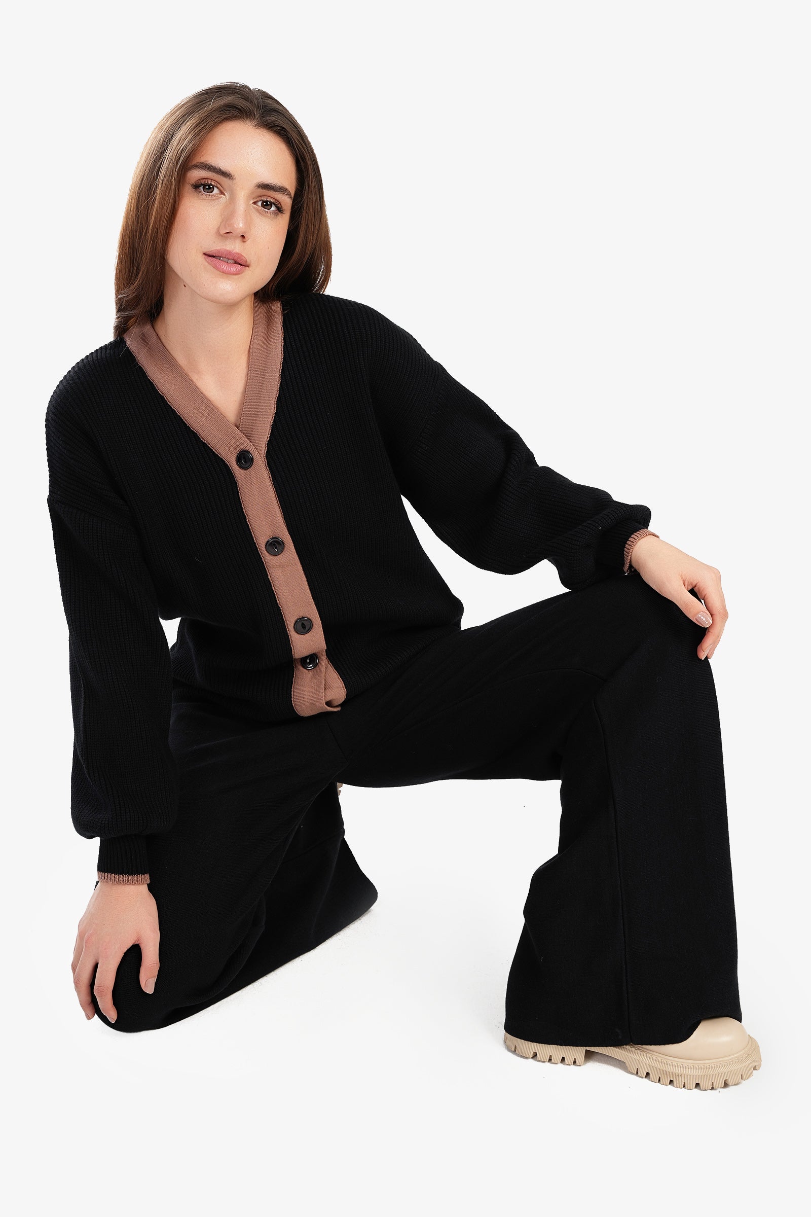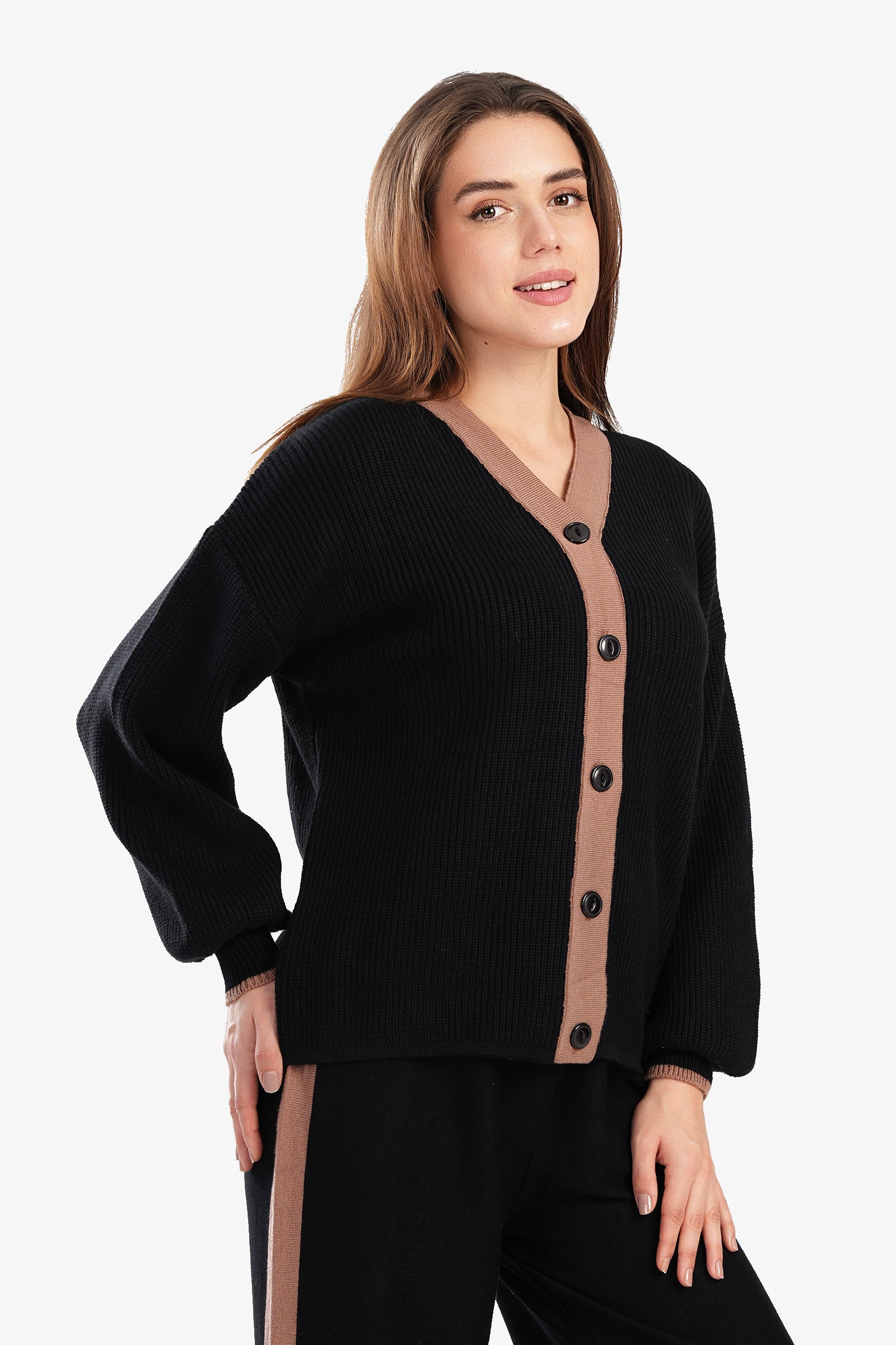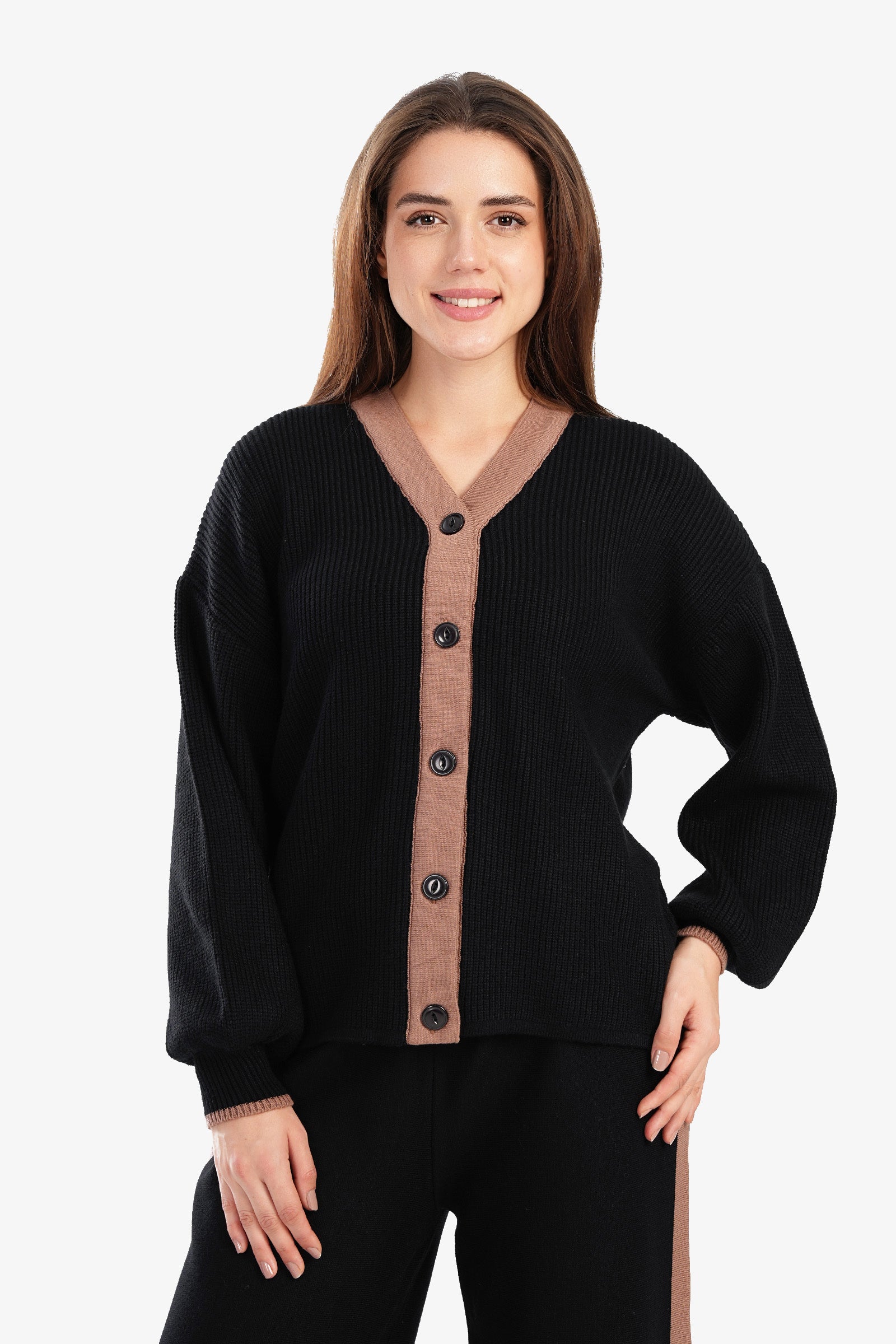 هذا الكارديجان المريح المصنوع من قماش تريكو يمنحكِ قصة مريحة وعصرية، مثالية للارتداء اليومي. يتميز بنقش محبوك أنيق مع فتحة رقبة على شكل حرف V وأزرار للإغلاق لسهولة تنسيقه مع طبقات متعددة. تضفي تفاصيل الألوان المتباينة على فتحة الرقبة والأكمام لمسة من التباين الرقيق على التصميم العام. بأكمام طويلة وتصميم مريح، يُعد هذا الكارديجان قطعة أساسية متعددة الاستخدامات وسهلة الارتداء.