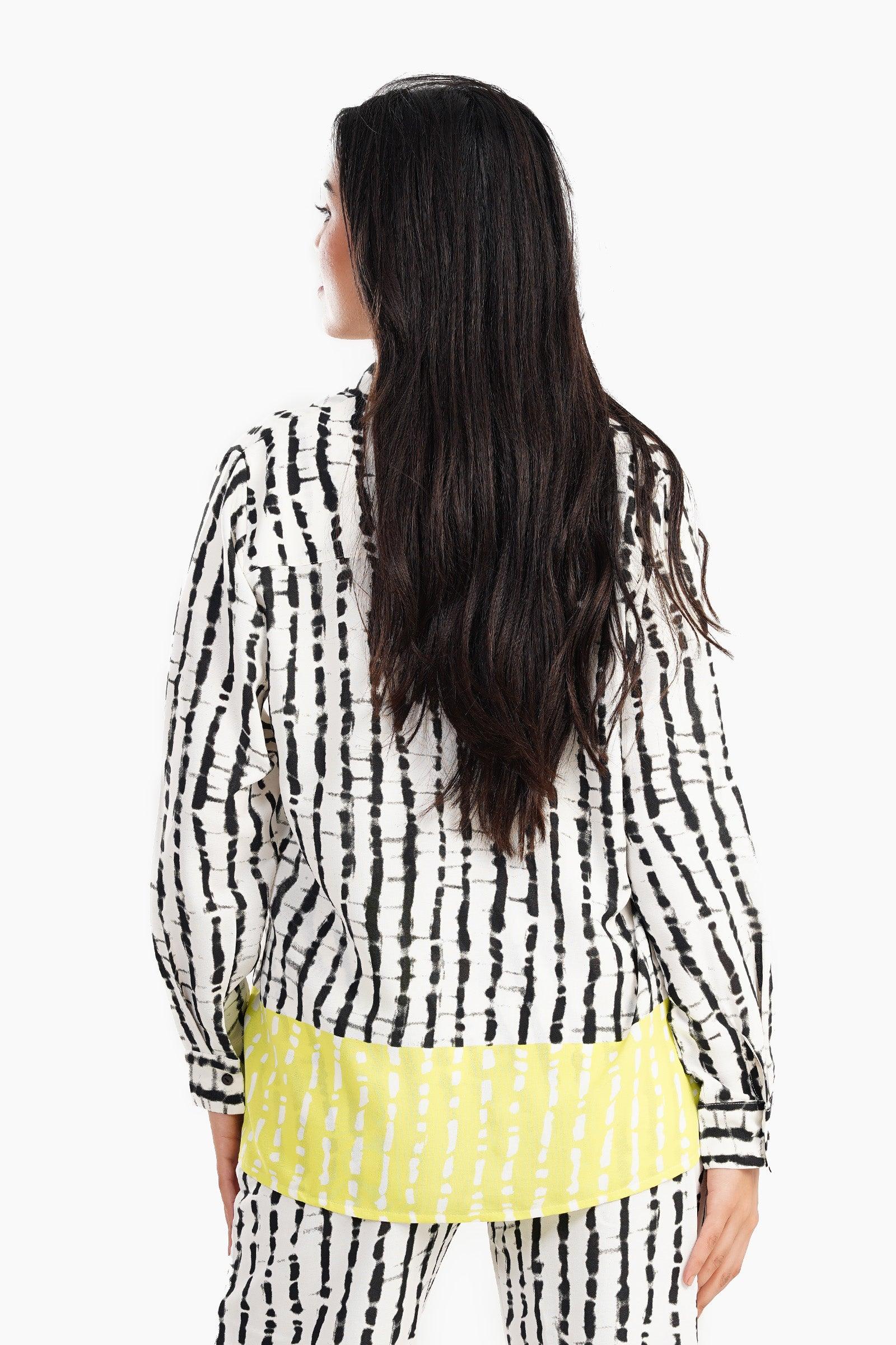 تألقي بإطلالة جريئة مع قميصنا المخطط بألوان متباينة. يتميز هذا القميص الكلاسيكي ذو الياقة بتصميمه اللافت بألوان متباينة، يضفي لمسة عصرية على إطلالتك الكلاسيكية. يتميز هذا القميص بتصميم أنيق وعملي، بفضل أزرار الإغلاق وأكمامه الطويلة. كما أن حاشية القميص المستقيمة تُسهّل طيّه، مما يجعله مثاليًا للمناسبات الرسمية وغير الرسمية.