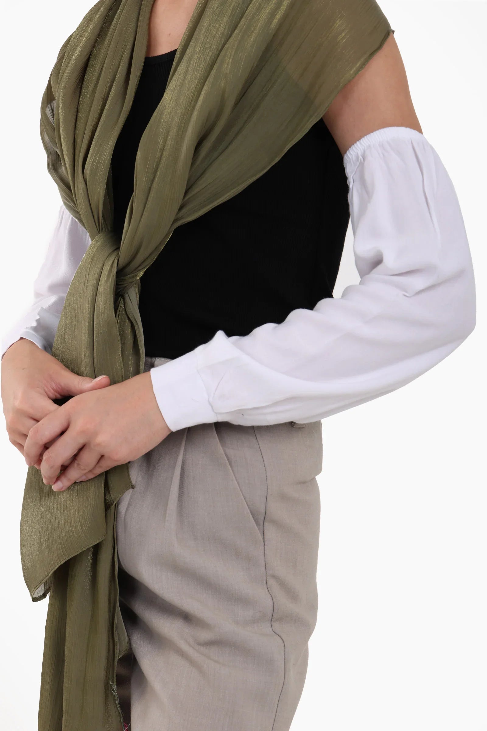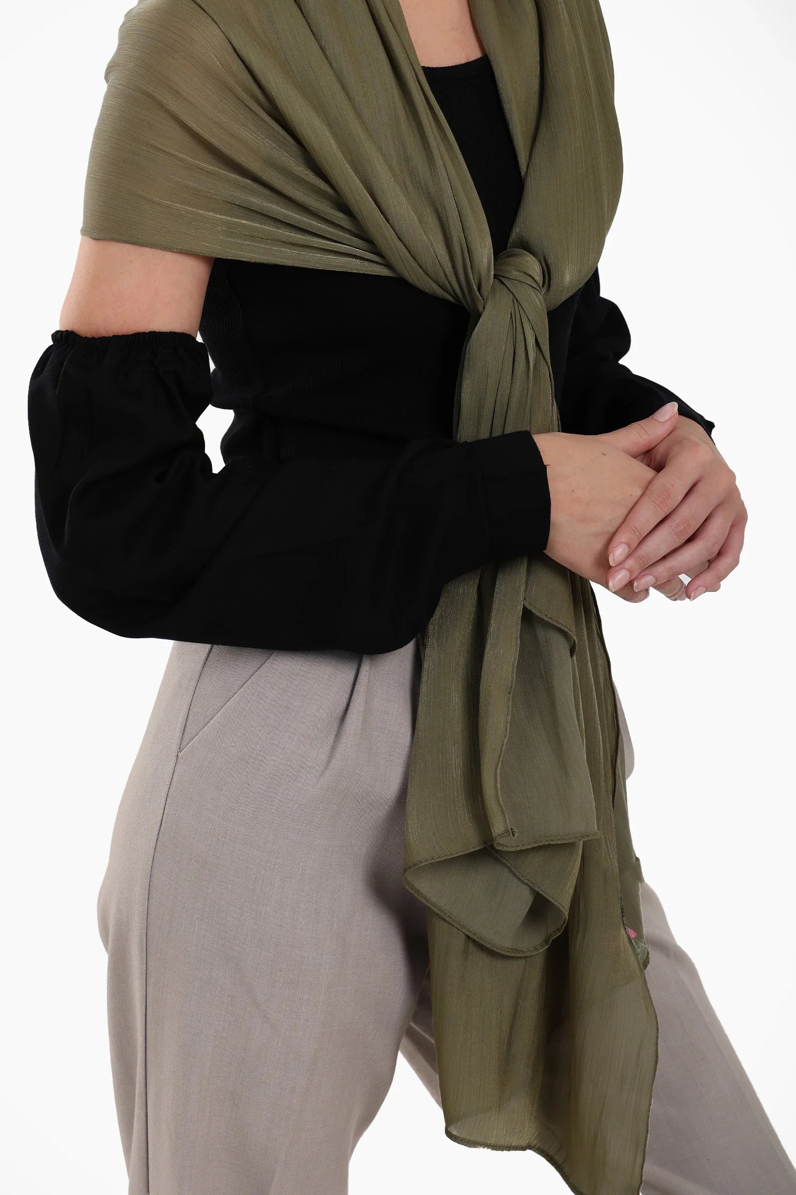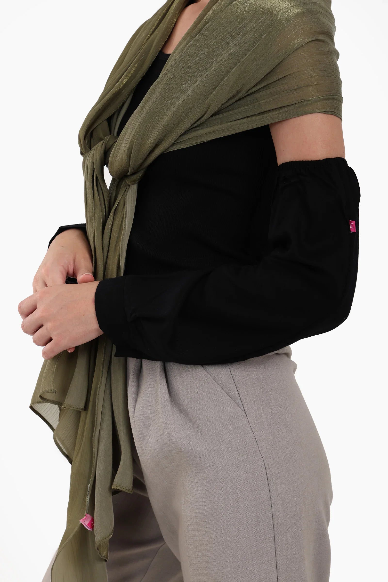 هذه الأكمام القابلة للفصل بمقاس واحد، قطعة أساسية متعددة الاستخدامات لكل خزانة ملابس محتشمة، تُعدّ الإضافة المثالية للمحجبات. مصممة بنقشة سادة وأزرار على الأكمام، لتوفر مزيجًا مثاليًا من الراحة والعملية والأناقة. صُممت لتناسب جميع الفصول، قماشها قابل للتهوية ومرن ويتمدد بسهولة ليناسب شكل ذراعيك لملاءمة مريحة وطبيعية. سواء ارتديتها تحت بلوزات بأكمام قصيرة أو بدون أكمام، توفر هذه الأكمام تغطية مثالية دون المساس بالأناقة أو الراحة.