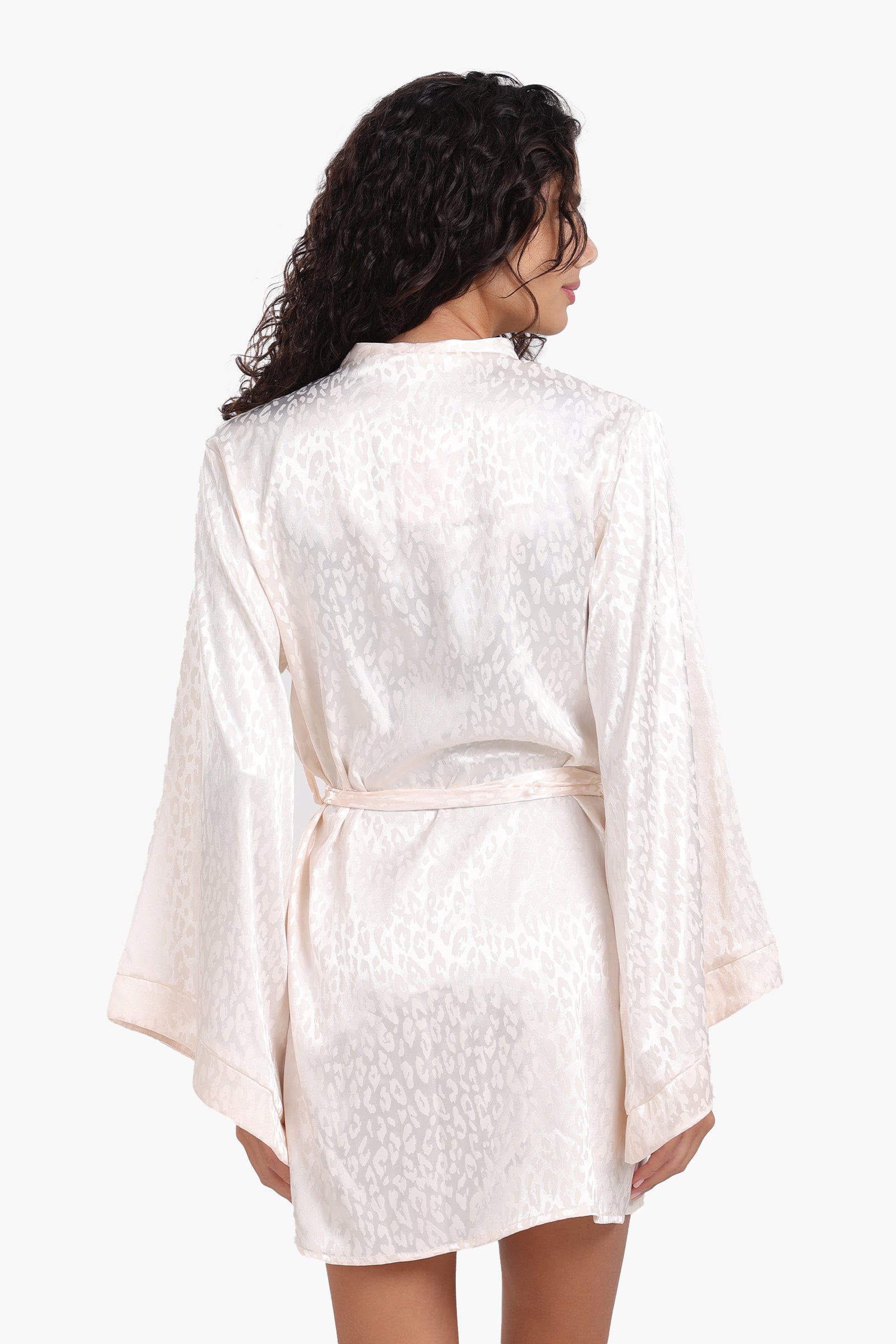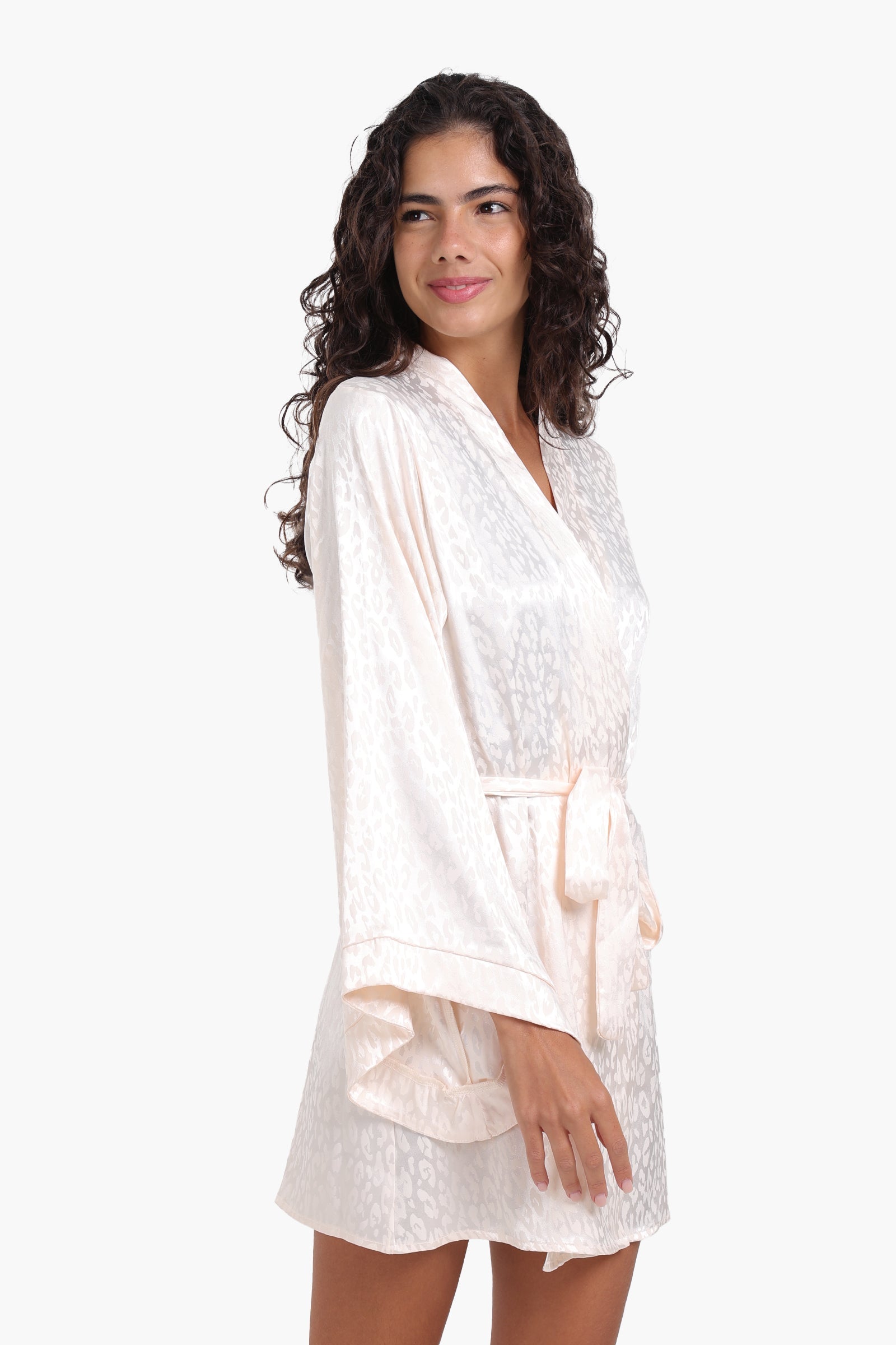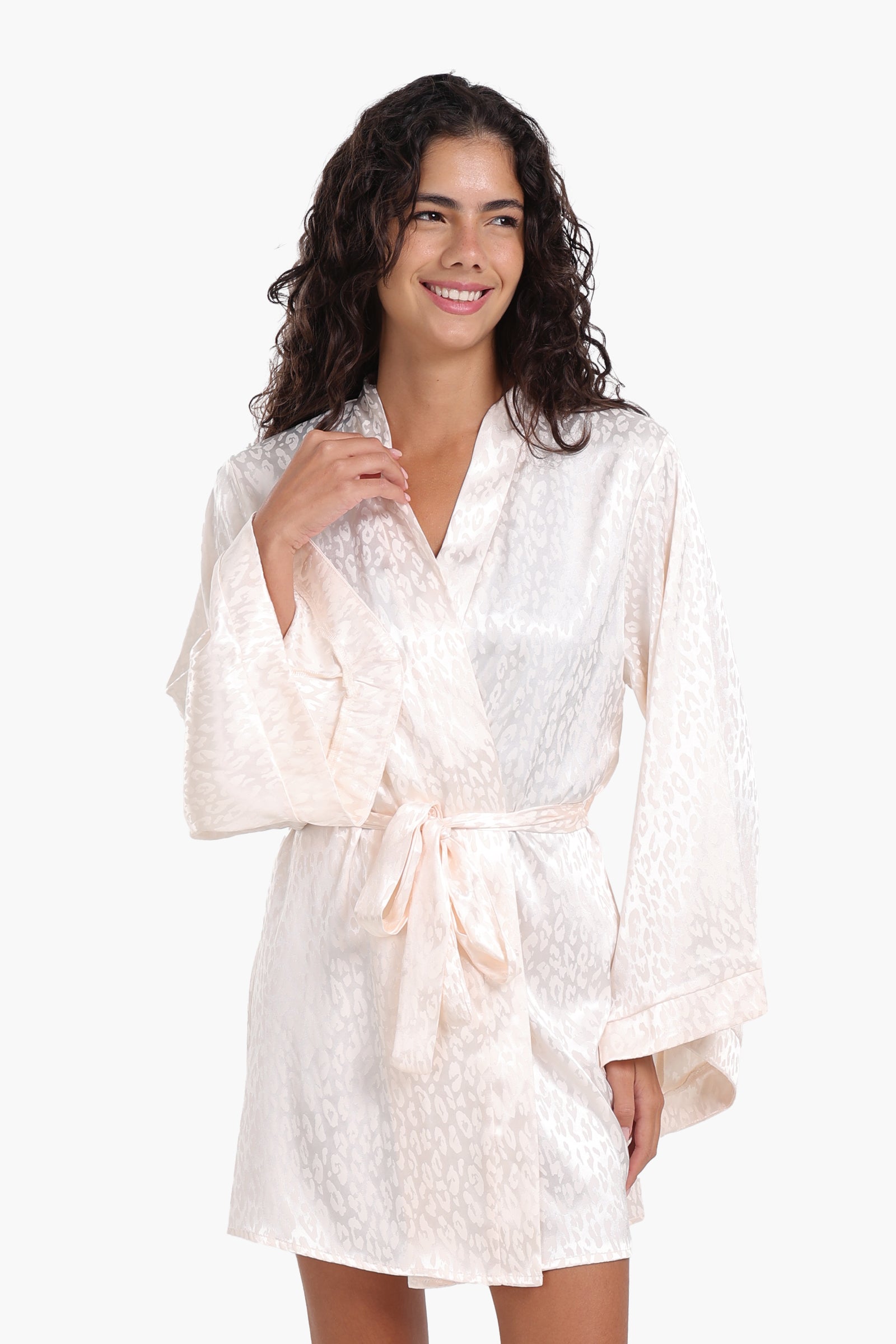 هذا الرداء الفاخر من الساتان يتميز بقصّة فضفاضة ومريحة لراحة لا مثيل لها. يتميز بنقشة جاكار ذاتية، مما يضفي لمسة من الأناقة على مجموعة ملابسك المريحة. ياقة مفتوحة وأكمام طويلة تضفي عليه مظهرًا كلاسيكيًا، بينما يتيح حزام الخصر القابل للفصل تعديل المقاس. بطول قصير، يسهل ارتداء هذا الرداء، وهو مثالي للاسترخاء في المنزل أو لإضفاء لمسة أنيقة على روتينك قبل النوم.