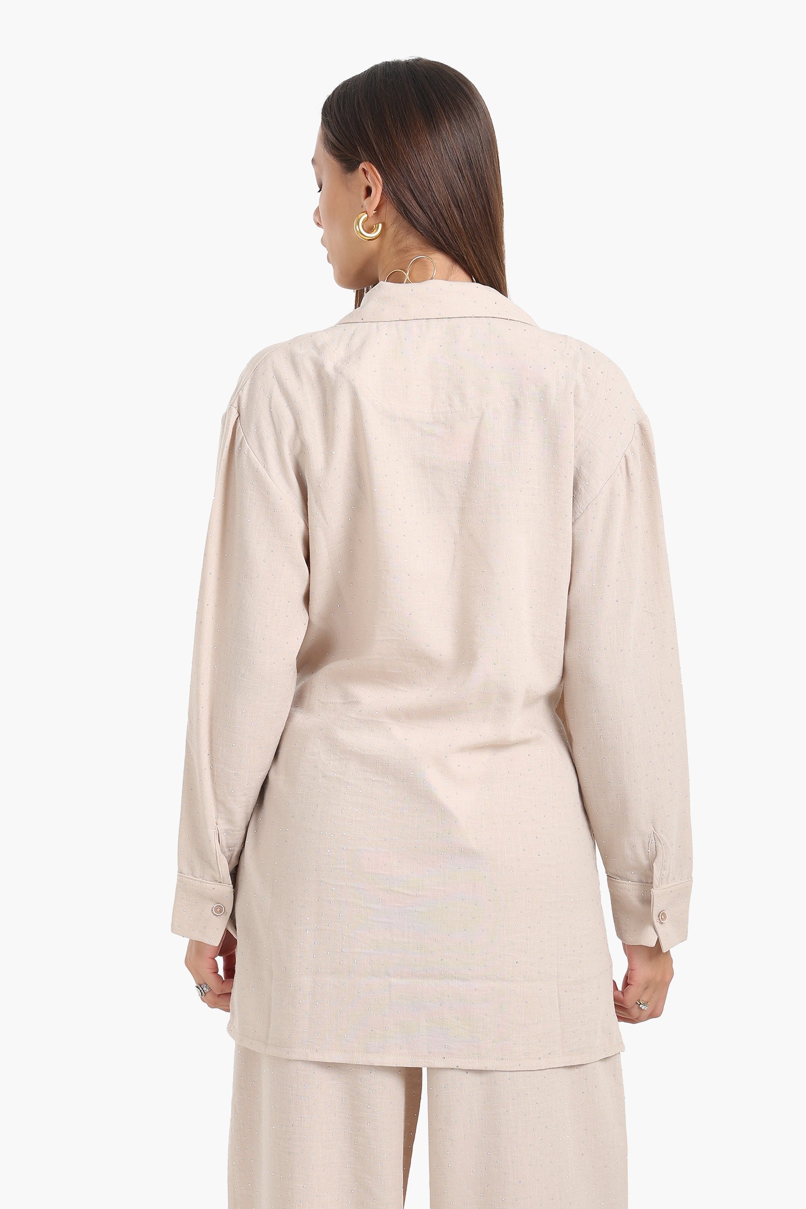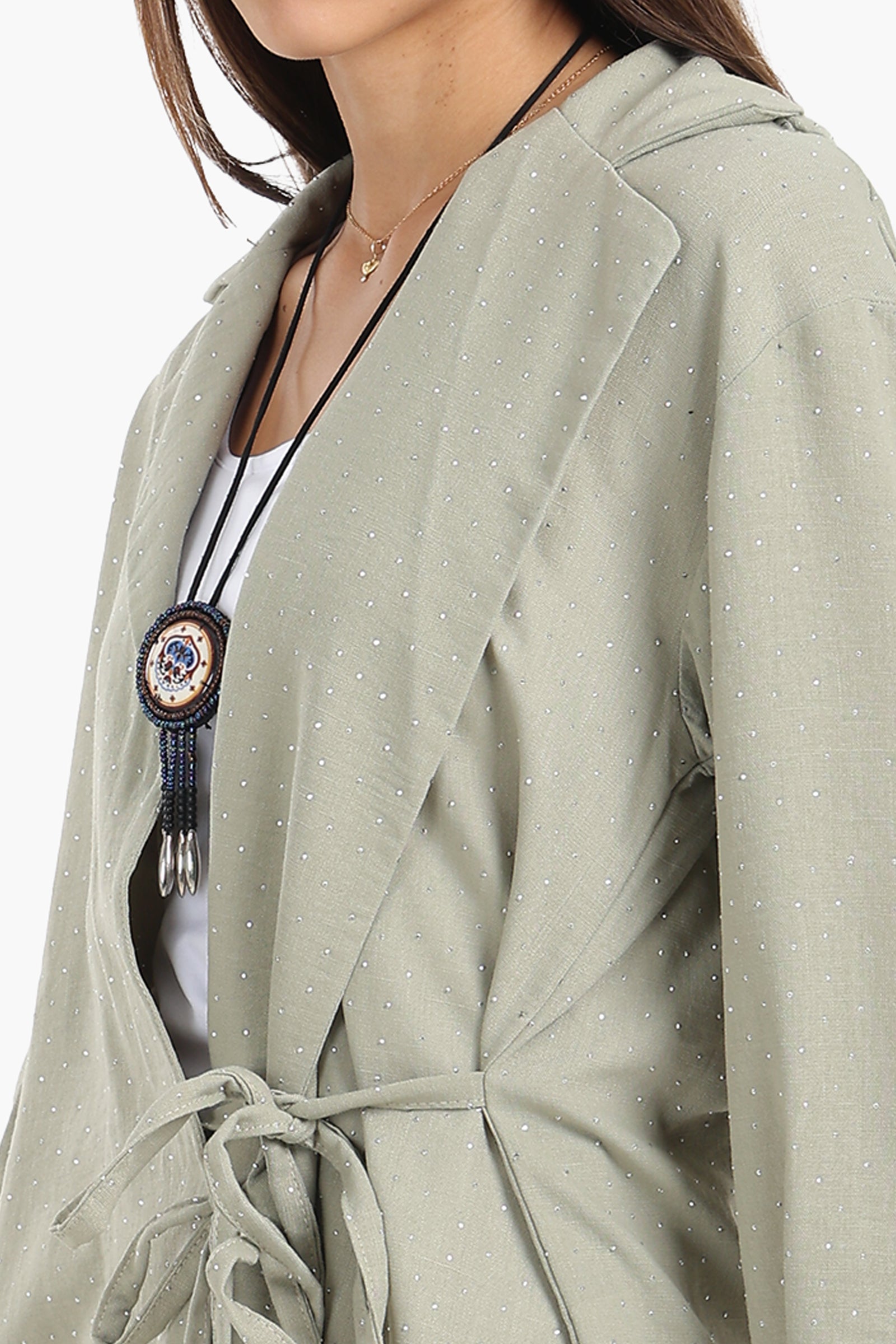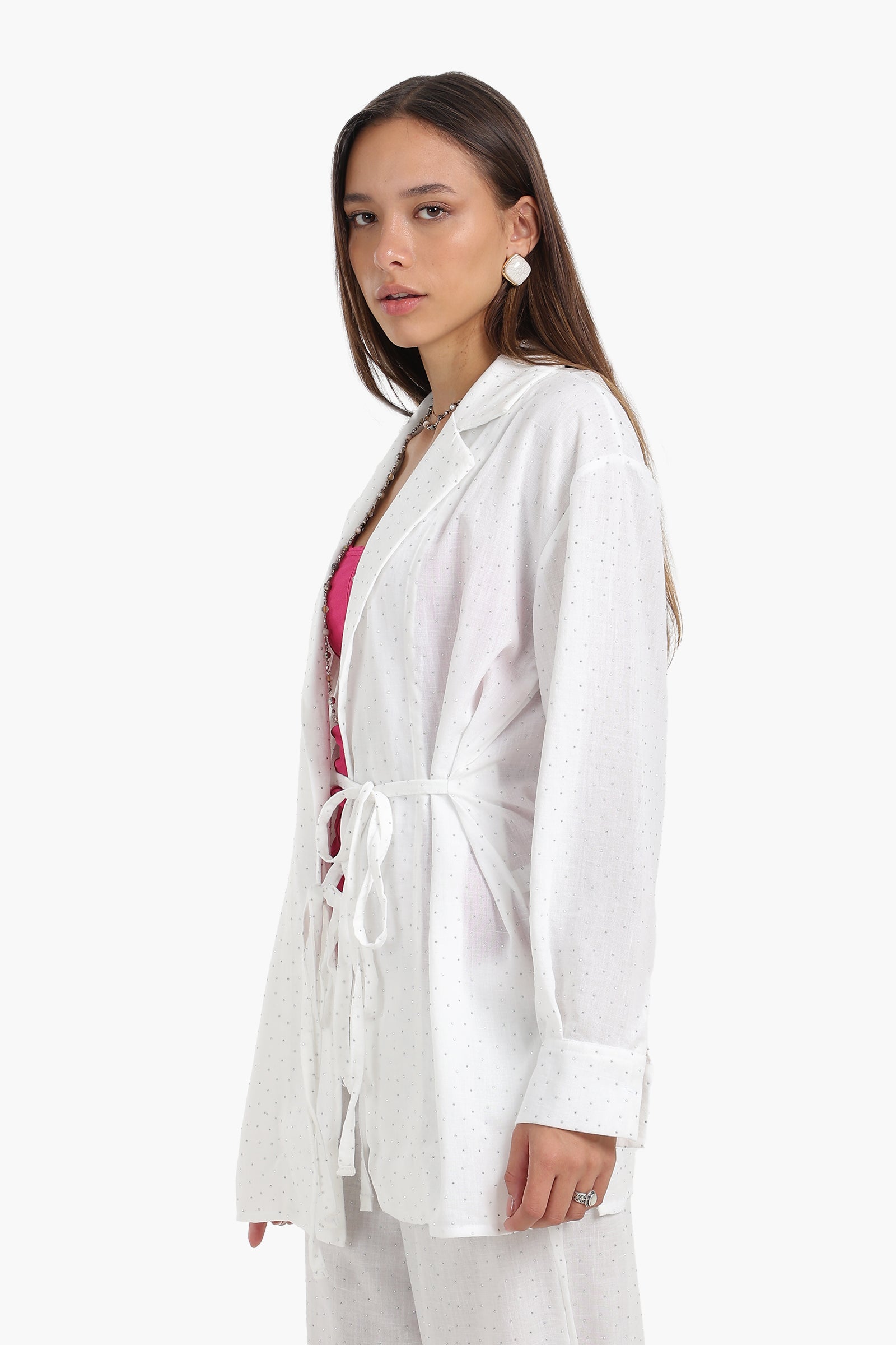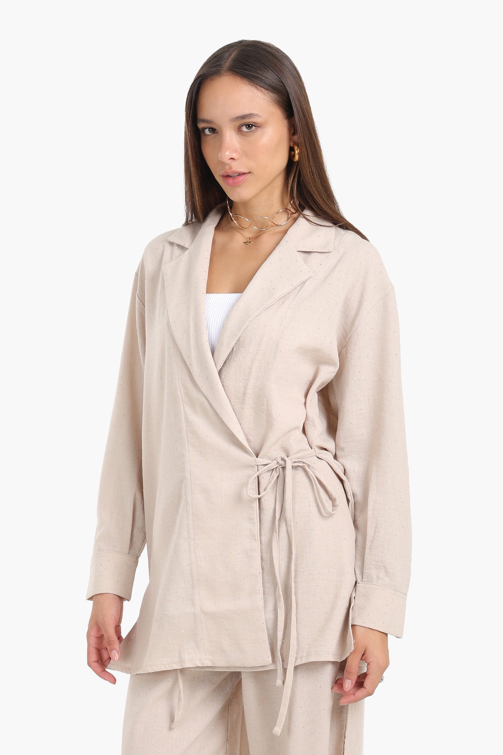 يُقدم هذا التصميم الأنيق لمسة عصرية على الكارديجان الكلاسيكي. مصنوع من نسيج بوليستر خفيف الوزن، وهو ينسدل بشكل جميل ويمنحكِ أناقة مريحة ومرخية. يتميز التصميم بأسلوب ملفوف مع إغلاق برباط، مما يسمح لكِ بضبط المقاس حسب رغبتك. يضيف الياقة المفتوحة والأكمام الطويلة لمسة من الأناقة، مما يجعله قطعة متعددة الاستخدامات لمناسبات مختلفة.