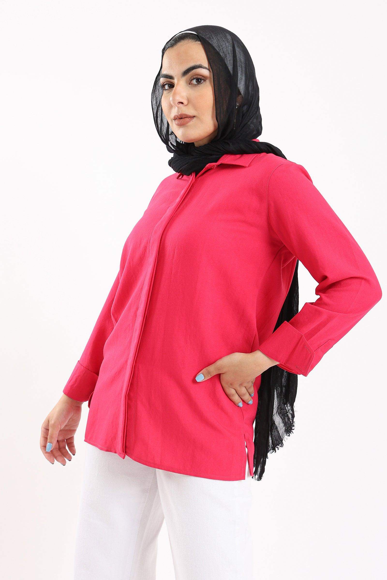 • هذا القميص ضروري للارتداء اليومي ونحن نحبه. يتميز بقماش تنسل مع تصميم أزرار أمامية مخفية وقصة عادية. ارتديه مع بنطال كلاسيكي وصندل لإطلالة أنيقة.