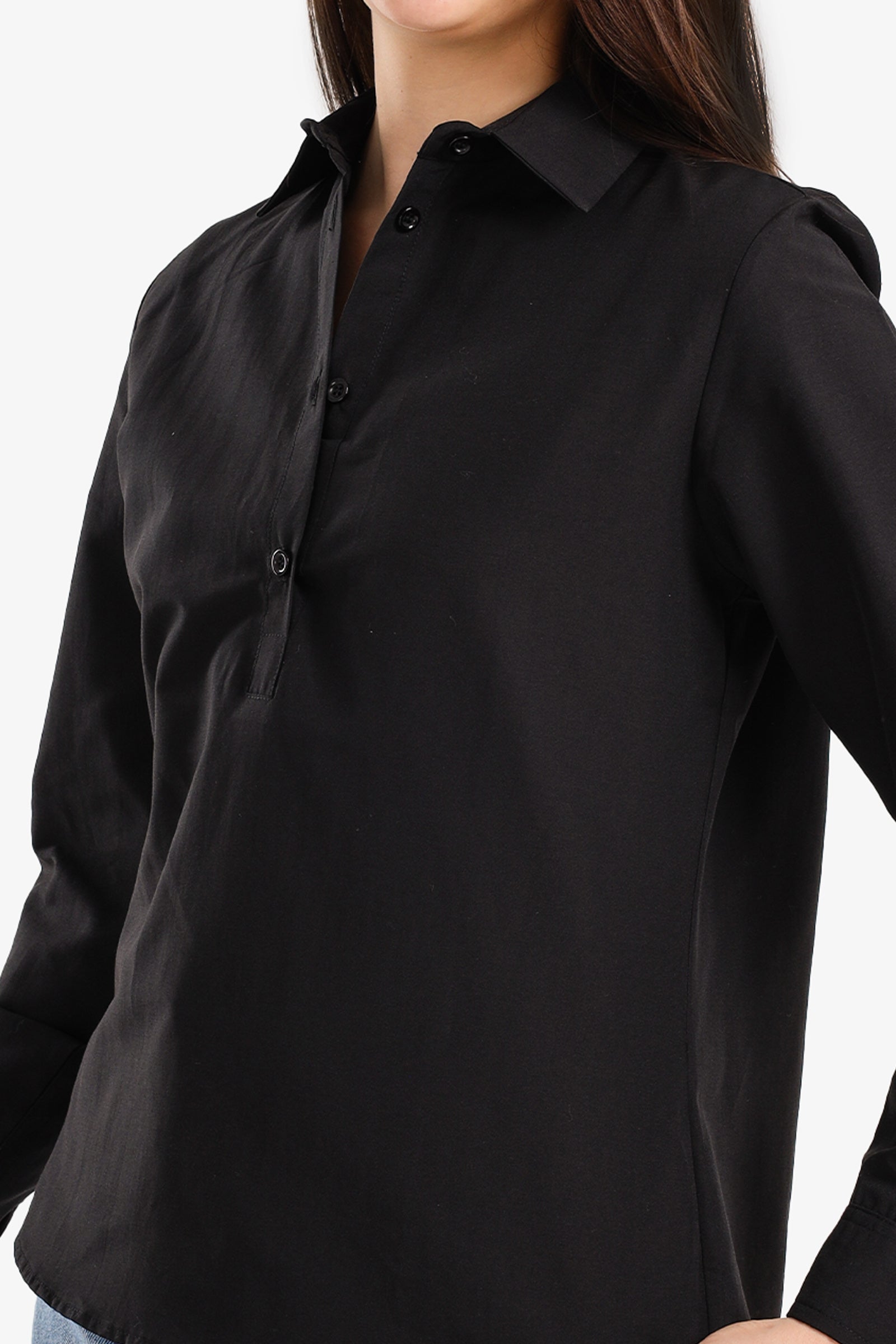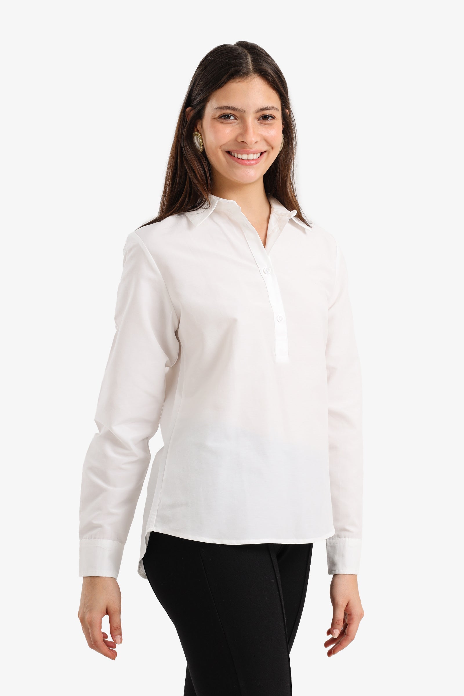 يُضفي هذا القميص القطني لمسةً عصريةً على قطعة كلاسيكية خالدة. صُمم بفتحة أزرار جزئية تبدأ من أسفل الصدر، ليجمع بين الراحة والسهولة في الارتداء والخياطة الأنيقة. تُضفي الياقة الكلاسيكية والأصفاد المُزررة والأكمام الطويلة لمسةً أنيقة، بينما تُضفي الحافة المُرتفعة والمنخفضة والحافة المستديرة لمسةً عصريةً ومريحة. مثالي للإطلالات الكاجوال والأنيقة على حدٍ سواء.