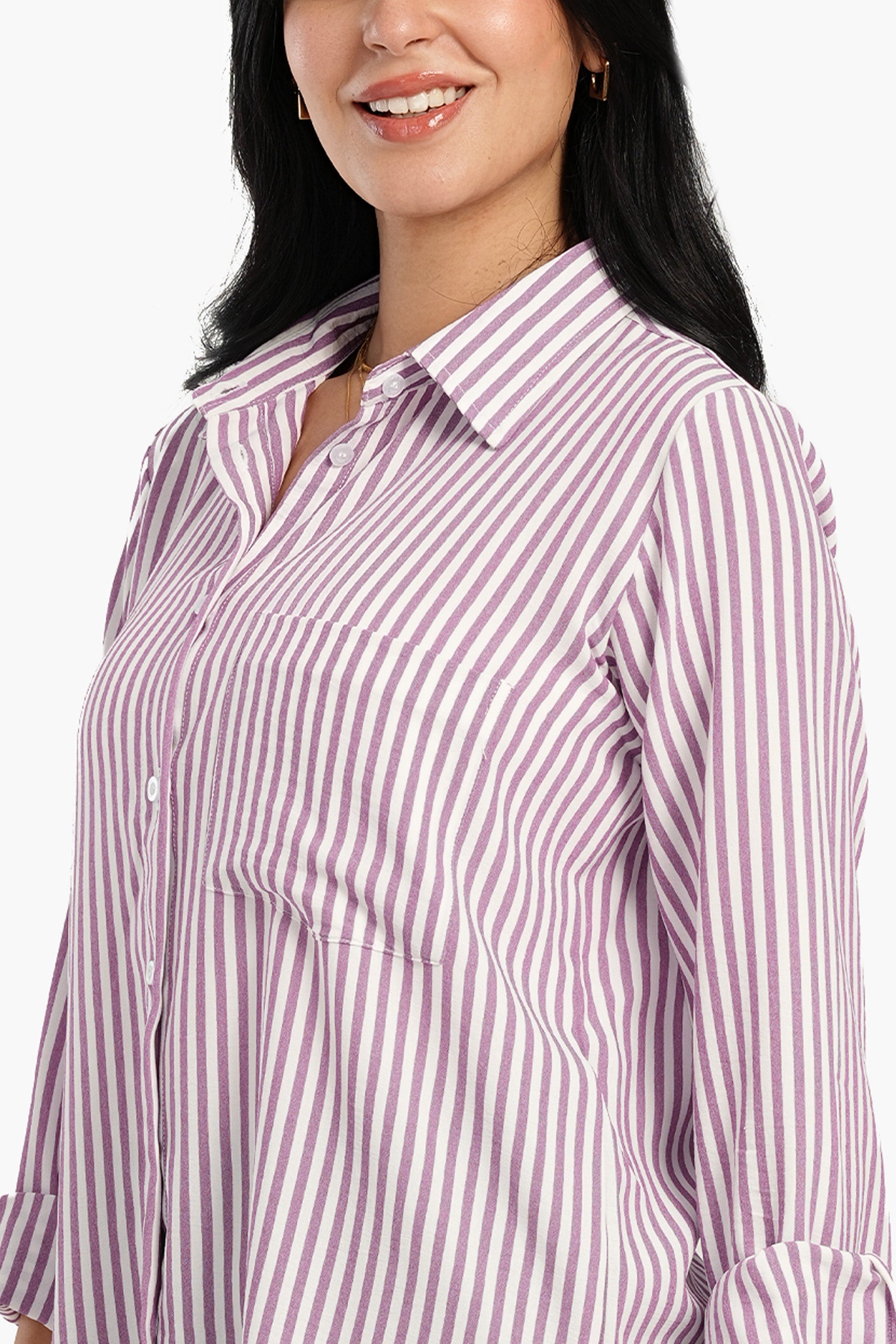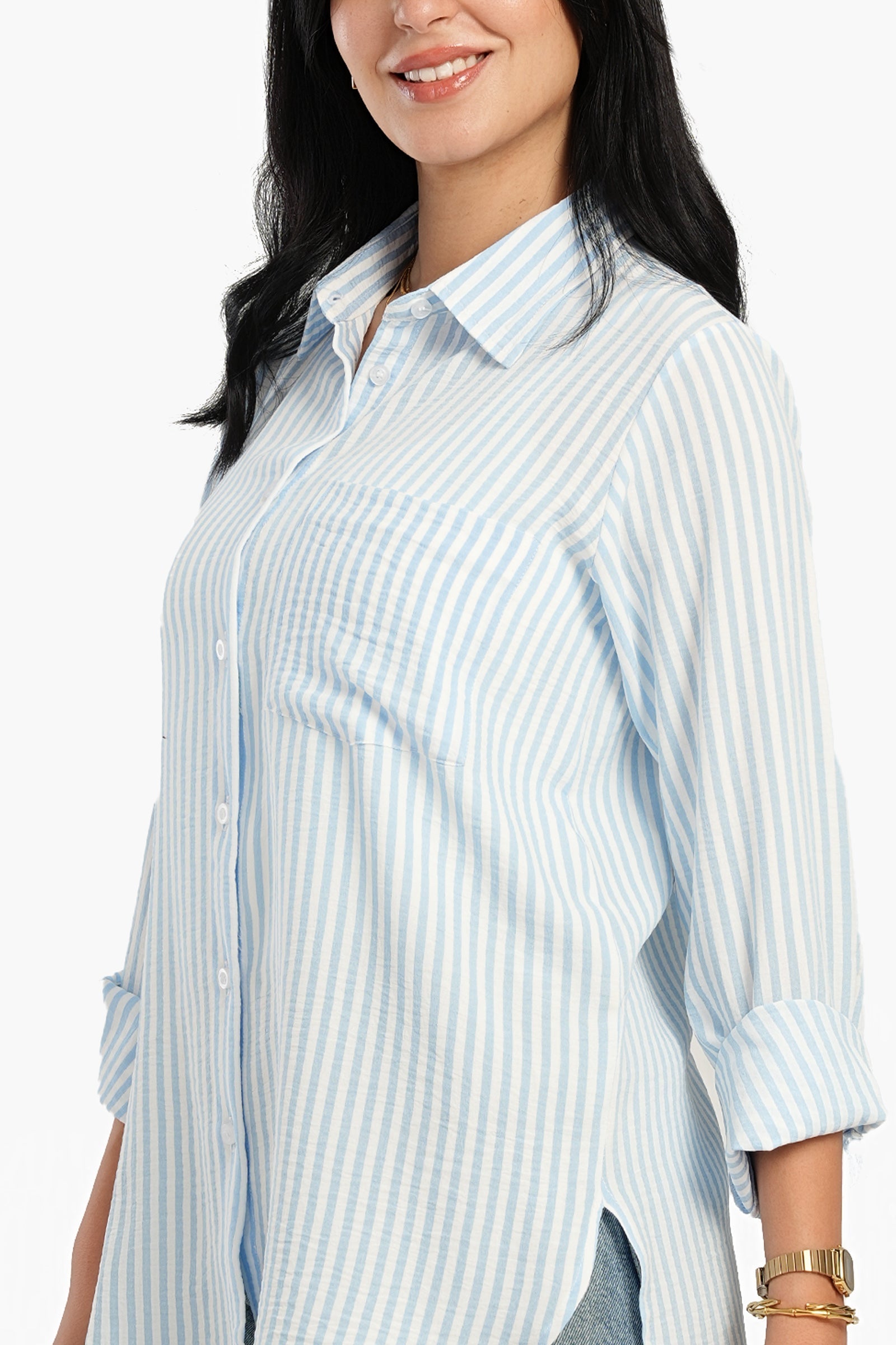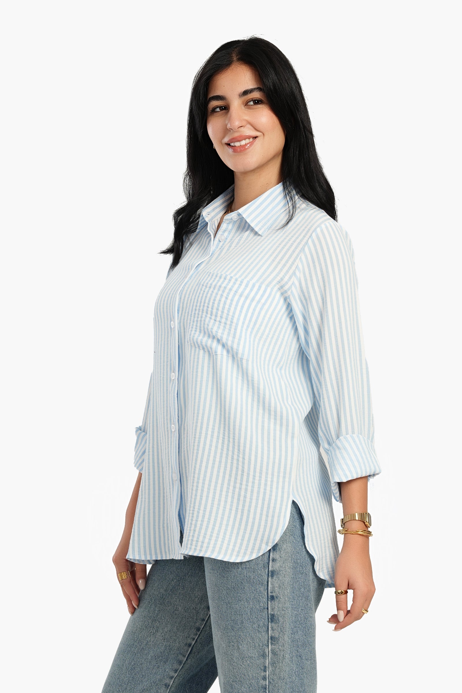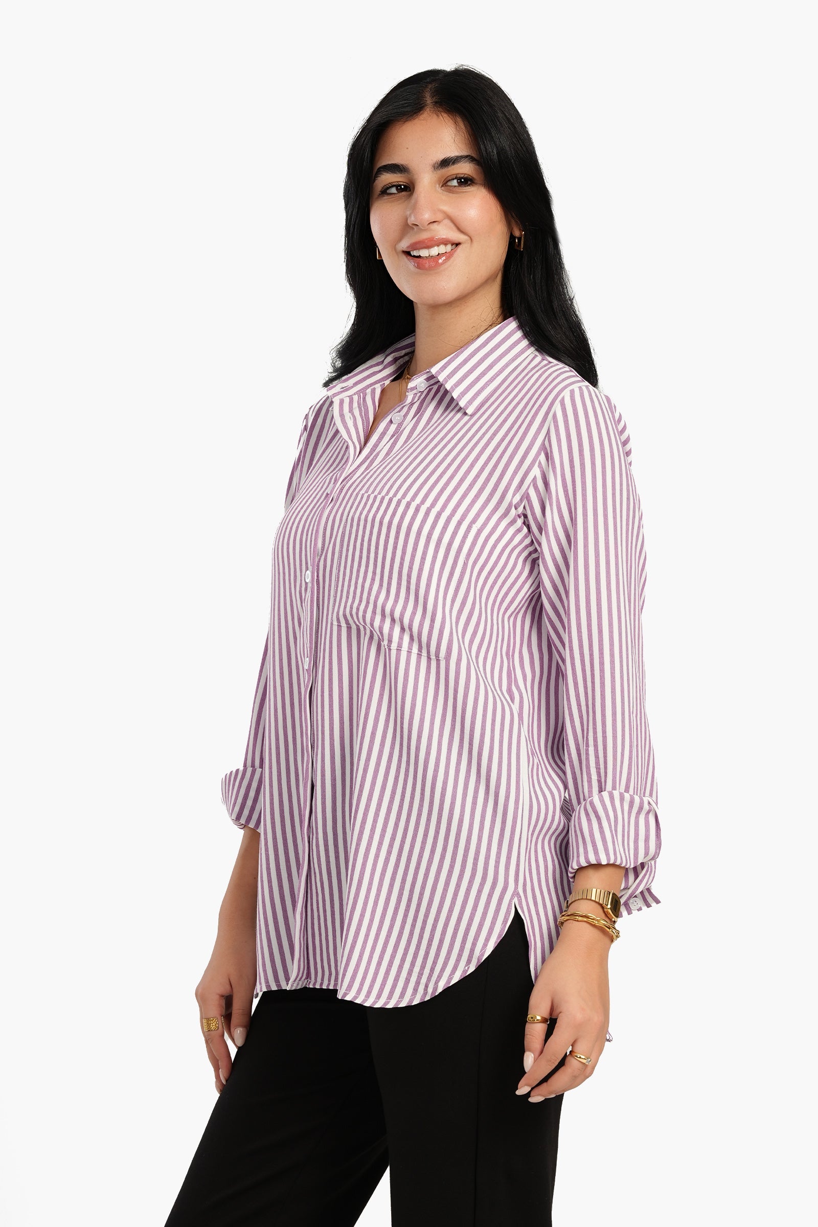أضف لمسة كلاسيكية إلى خزانة ملابسك مع قميصنا البوليستر المخطط، مثالي للإطلالات الكاجوال والأنيقة. صُمم هذا القميص بقصّة عادية، ويتميز بنقشة مخططة خالدة تُضفي لمسةً أنيقةً على إطلالتك. ياقة الياقة وأزرار الإغلاق تُضفي لمسةً راقية، بينما يُضفي التصميم الطويل والمنخفض والحاشية المستديرة لمسةً عصرية. يأتي هذا القميص بأكمام طويلة وجيب صدر عملي، ليجمع بين العملية والأناقة. يضمن نسيج البوليستر خفيف الوزن الراحة، مما يجعله قطعةً أساسيةً سهلة الارتداء في أي مناسبة.