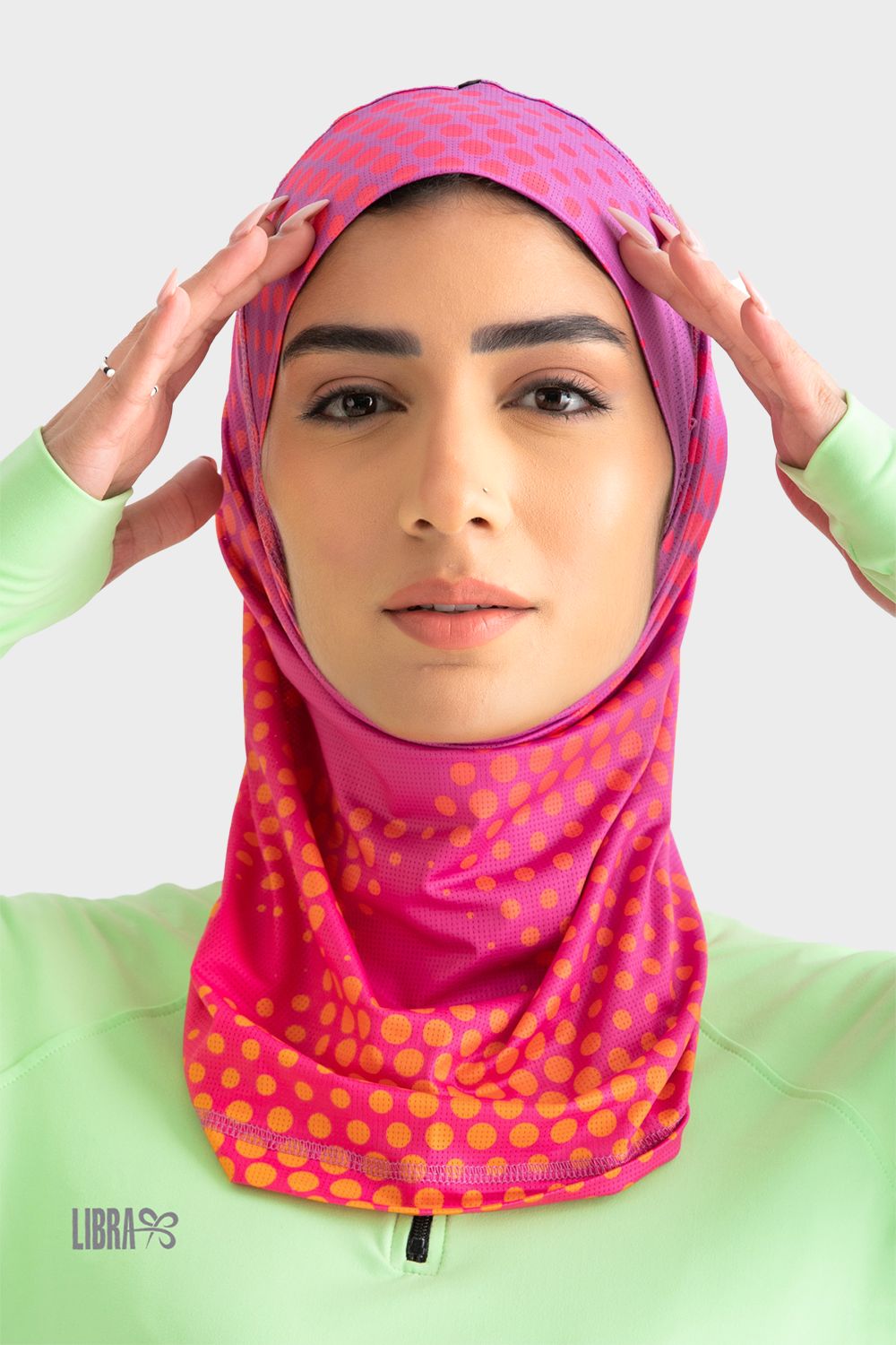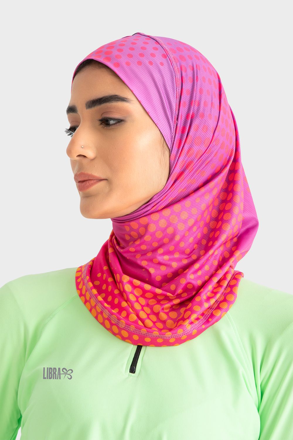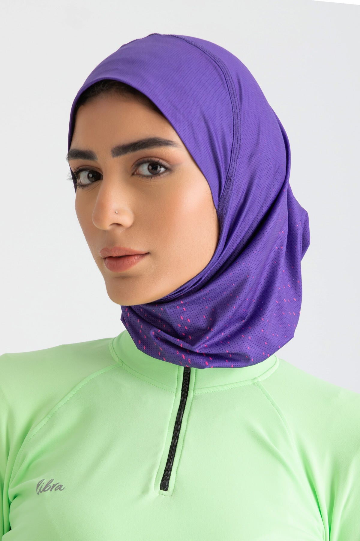 هذا الحجاب هو الحل الأمثل لحجابك الرياضي اليومي. فهو خفيف الوزن ومصنوع من نسيج شبكي يسمح بمرور الهواء، ويتضمن تقنية Ultra-Grip مع شريط من مقابض السيليكون لتثبيته في مكانه أثناء التمرين.
