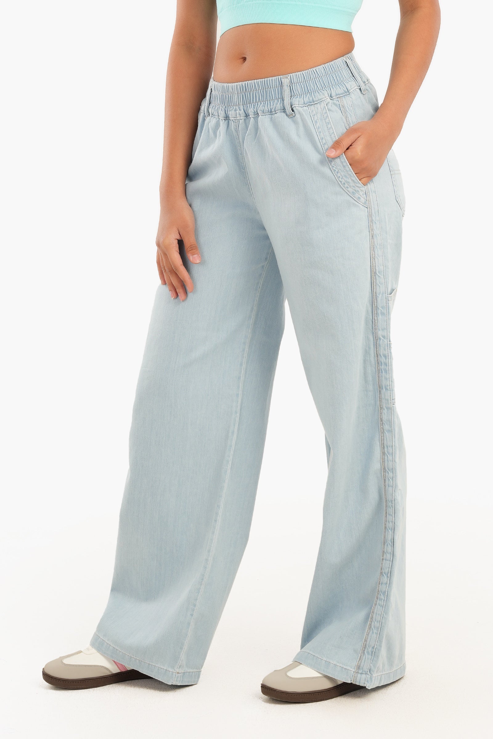 صُمم هذا الجينز بخصر مطاطي، ليمنحكِ مقاسًا مريحًا ومرنًا لراحة طوال اليوم. تصميمه سهل الارتداء يجعله سهل الارتداء، بينما تُضفي الجيوب الجانبية العملية لمسةً عمليةً دون المساس بأناقته. مثالي للنزهات غير الرسمية أو أيام الاسترخاء، يجمع هذا الجينز بين الراحة والأناقة بسلاسة.