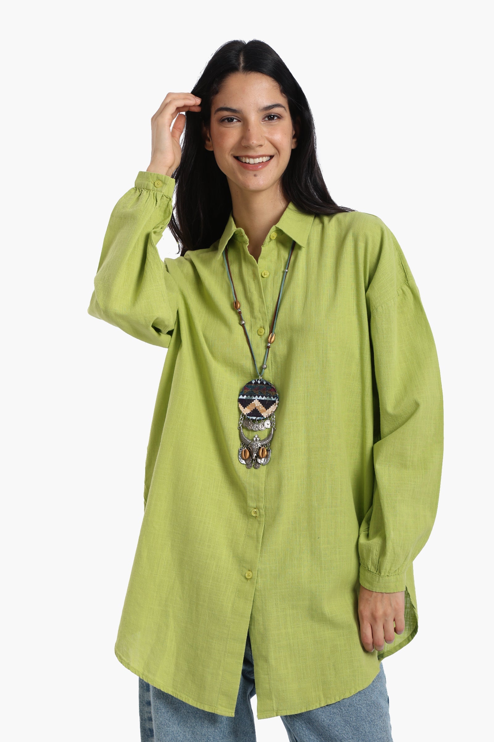 حافظ على أناقتك وراحة بشرتك مع هذا القميص المصنوع من الكتان - مزيج مثالي من الراحة والأناقة. مصمم بقصة مريحة، يتميز برقبة كلاسيكية، وإغلاق بزر، وأكمام طويلة مع أساور بزر، مما يجعله قطعة أساسية خالدة. يضيف الحاشية المستديرة لمسة نهائية ناعمة، مما يعزز مظهره الهادئ والمصقول. مصنوع من الكتان النافذ للهواء، إنه قطعة أساسية سهلة الارتداء للملابس اليومية.