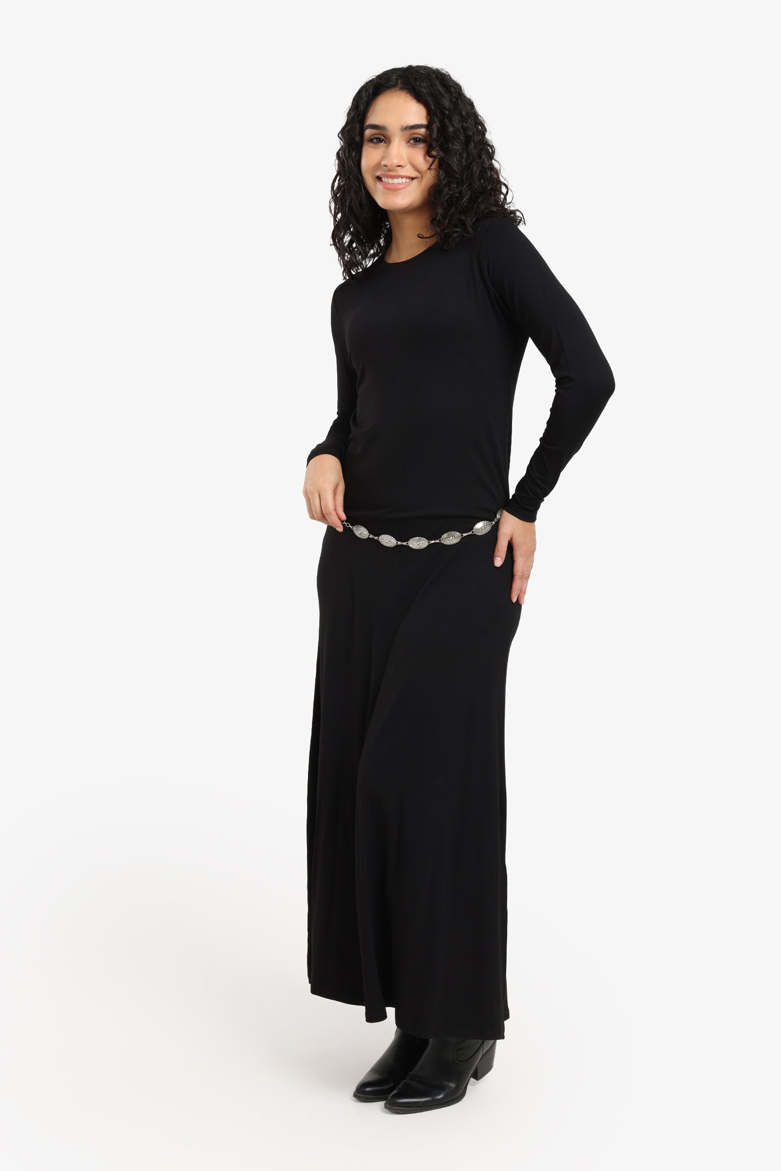 هذا الفستان الطويل مصنوع من قماش محبوك ناعم، يوفر الراحة والأناقة بقصته العادية. يتميز برقبة دائرية كلاسيكية وأكمام طويلة، مما يمنحكِ إطلالة بسيطة وعصرية بنقشة بسيطة، سهلة الارتداء. تصميمه سهل الارتداء يضمن لكِ سهولة الارتداء، مما يجعله قطعة مثالية للأناقة اليومية.