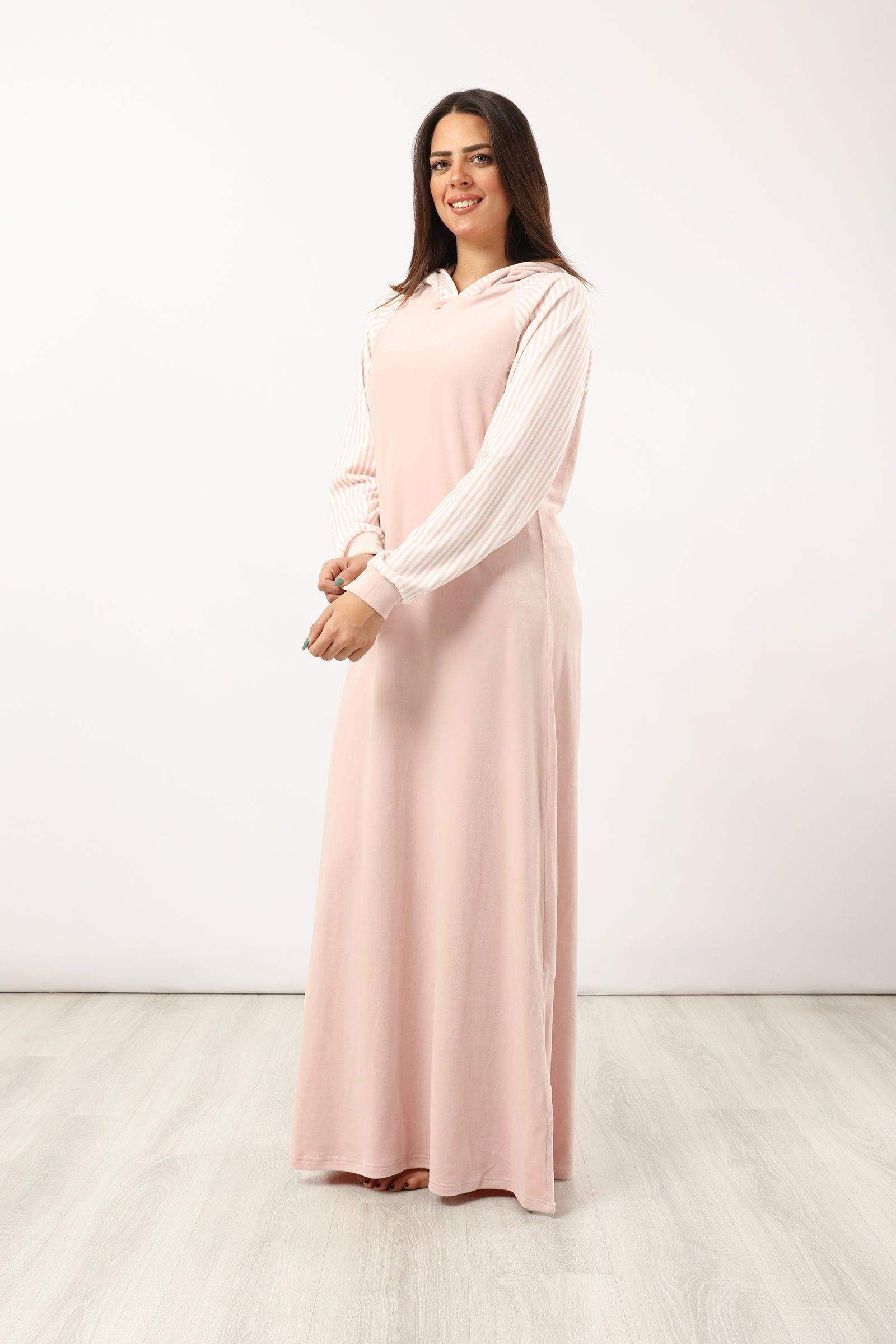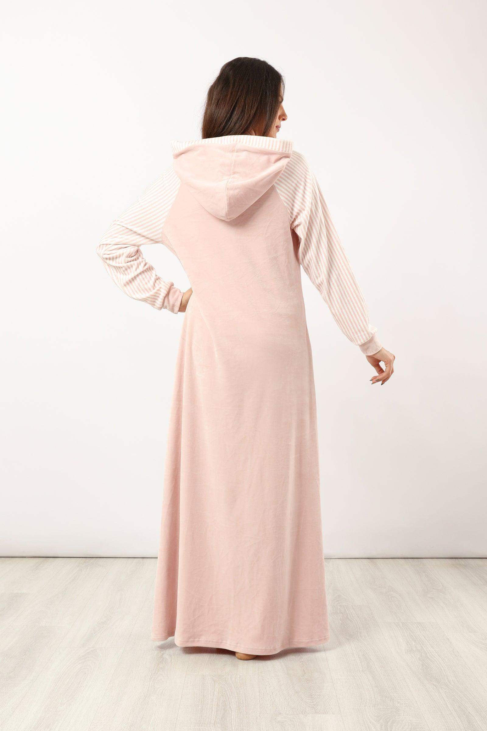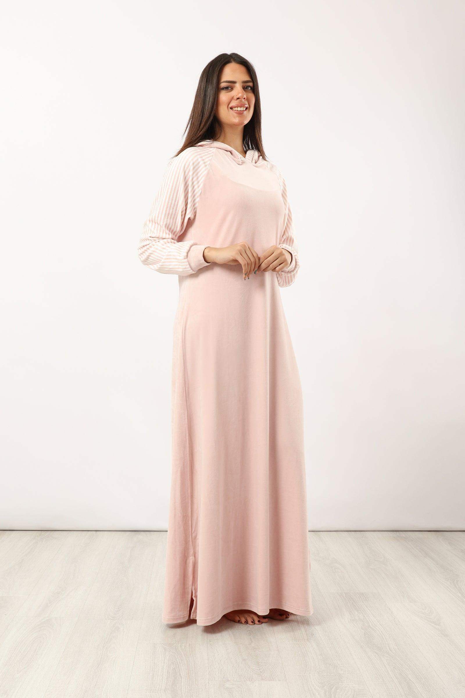 • عندما تصبح الليالي أكثر برودة، فإن قميص النوم المريح هذا هو الاختيار الأمثل. مقاس عادي، بأكمام طويلة وغطاء رأس لإبقائك دافئًا. سيبقيك القماش المخملي القابل للتنفس مسترخيًا طوال الليل.