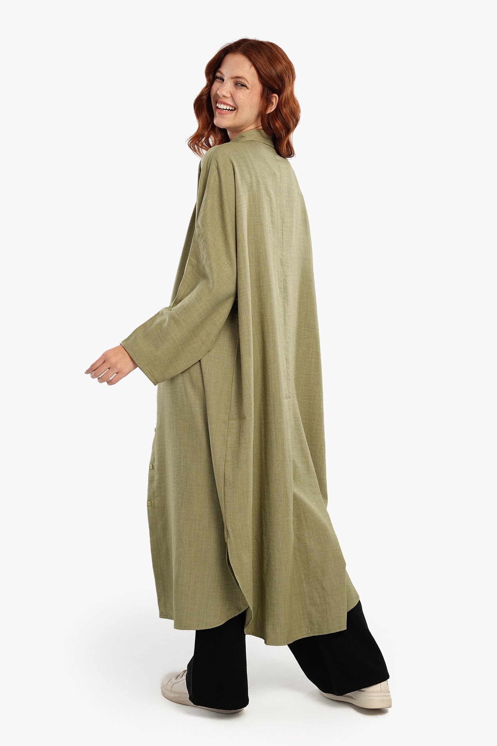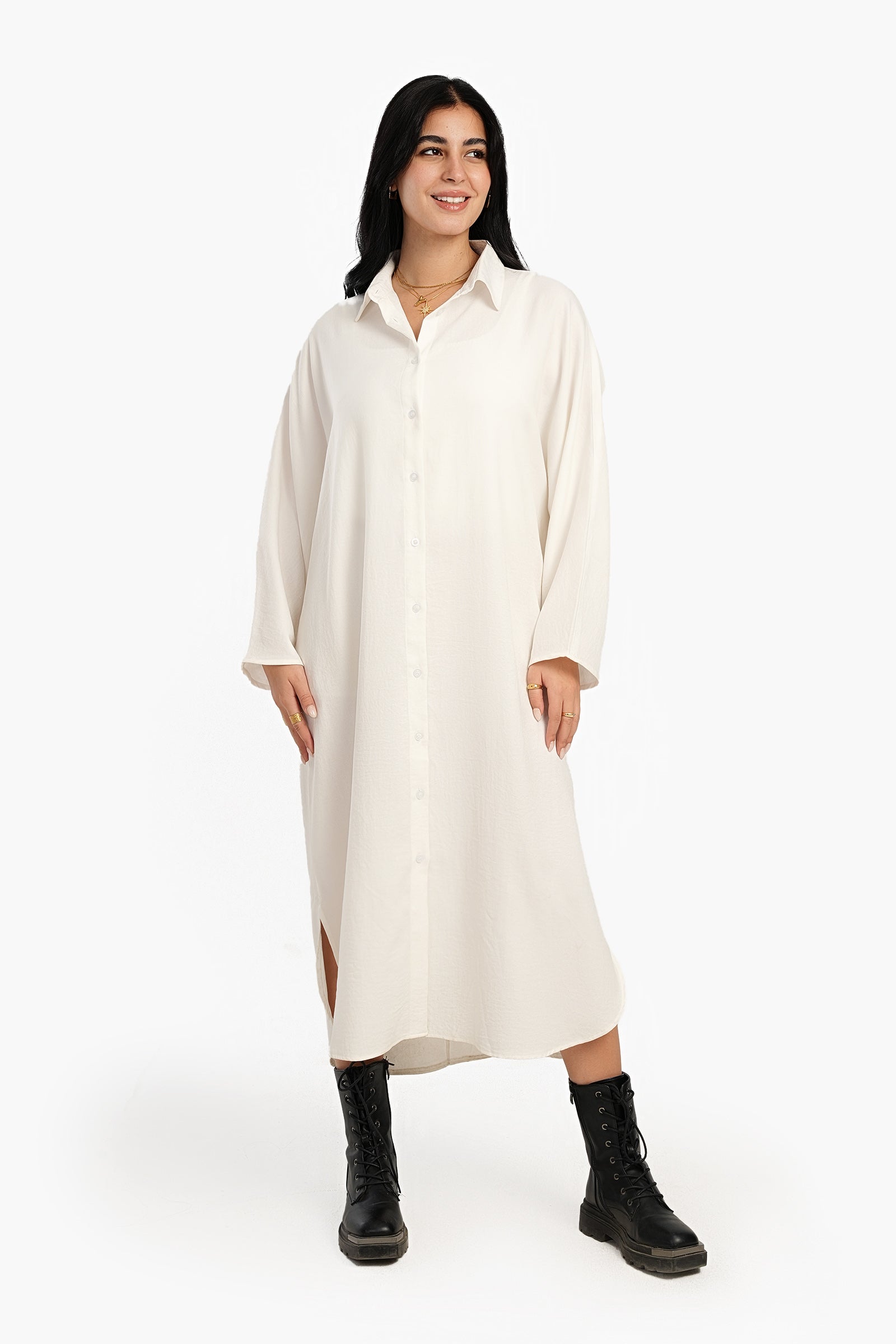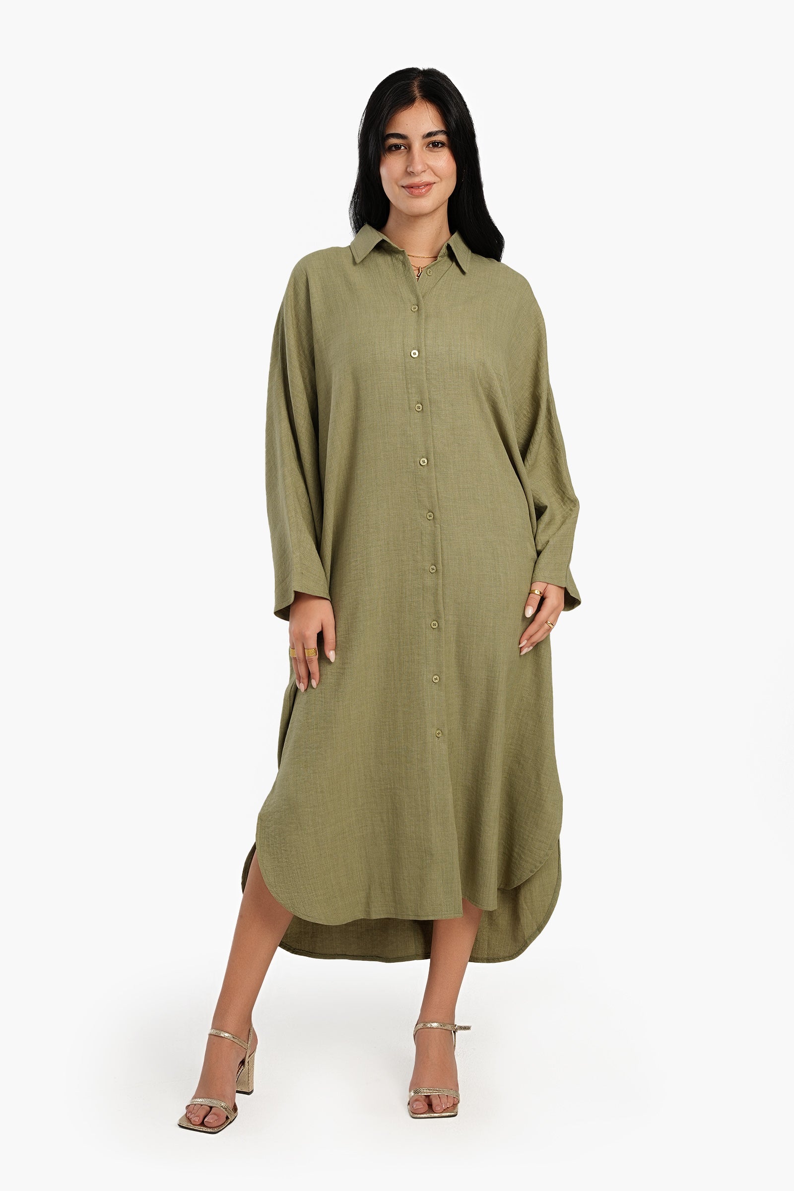 استرخِ بأناقة مع فستان القميص اللاونج، مزيج مثالي من الراحة والأناقة. مصنوع من البوليستر الناعم، يتميز هذا الفستان بقصّة فضفاضة تنسدل بسلاسة لإطلالة مريحة. ياقة كلاسيكية وأزرار للإغلاق تُضفي لمسةً كلاسيكية، بينما تُتيح الفتحة الكاملة إمكانية تنسيقه بطرق مُتعددة. بأكمام طويلة وحاشية دائرية غير مُتماثلة، صُمم هذا الفستان متوسط الطول لسهولة الحركة ولمسة عصرية أنيقة. لونه الموحد يُتيح خيارات لا حصر لها للتنسيق، مما يجعله قطعة أساسية سهلة الارتداء لأيام العمل أو لقضاء بعض المهام.