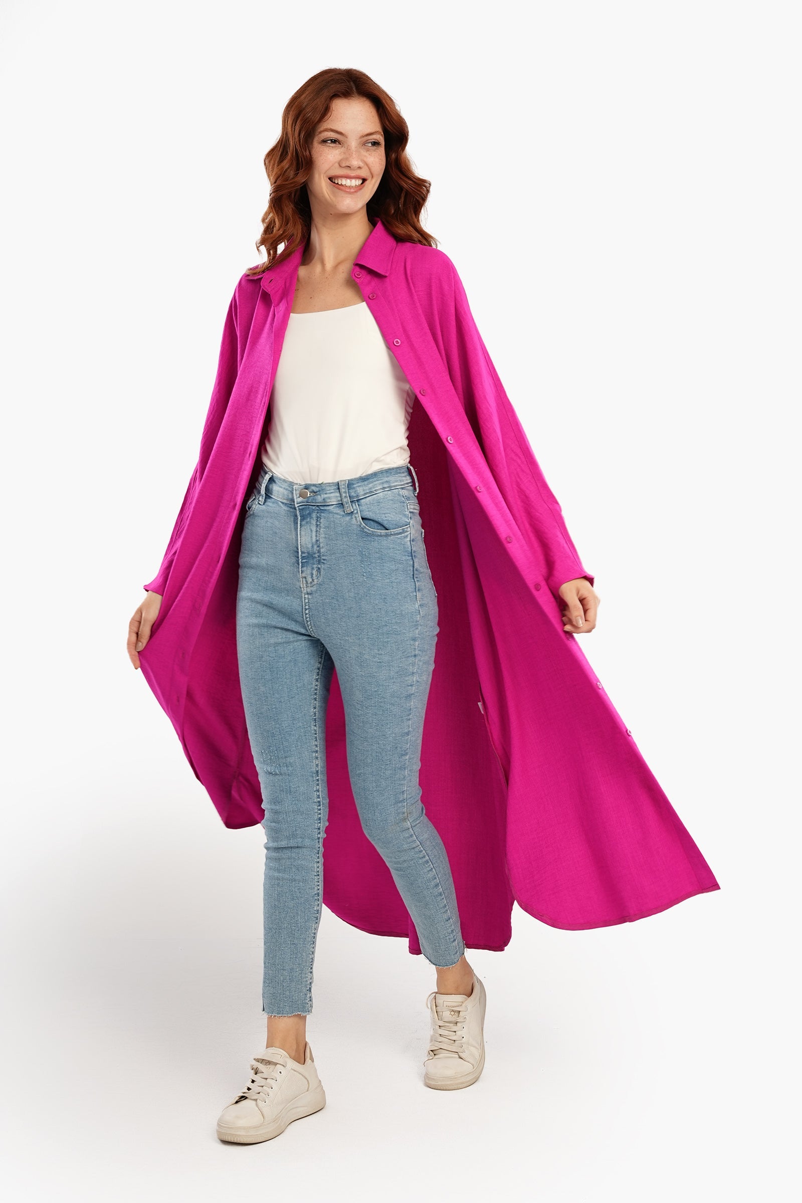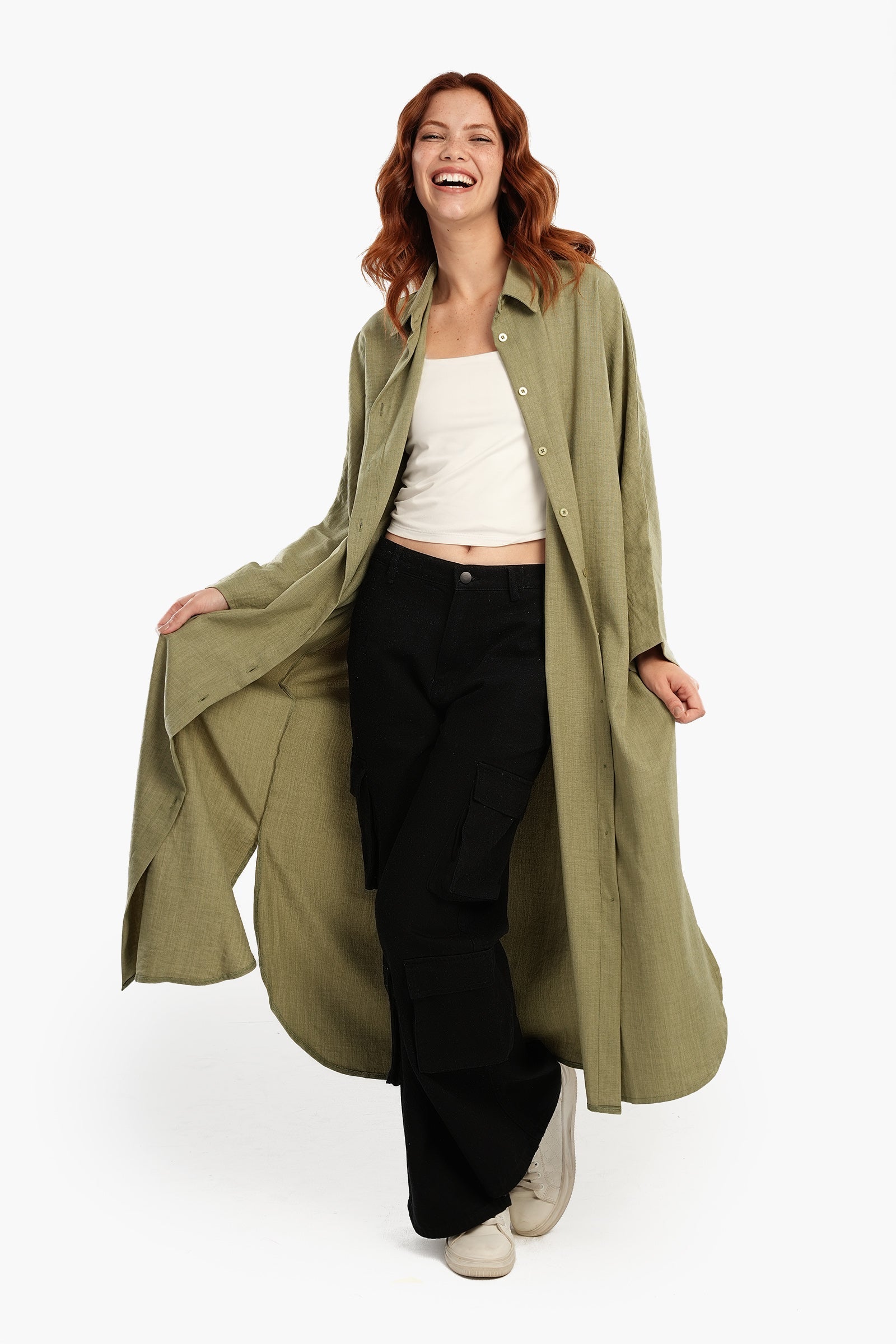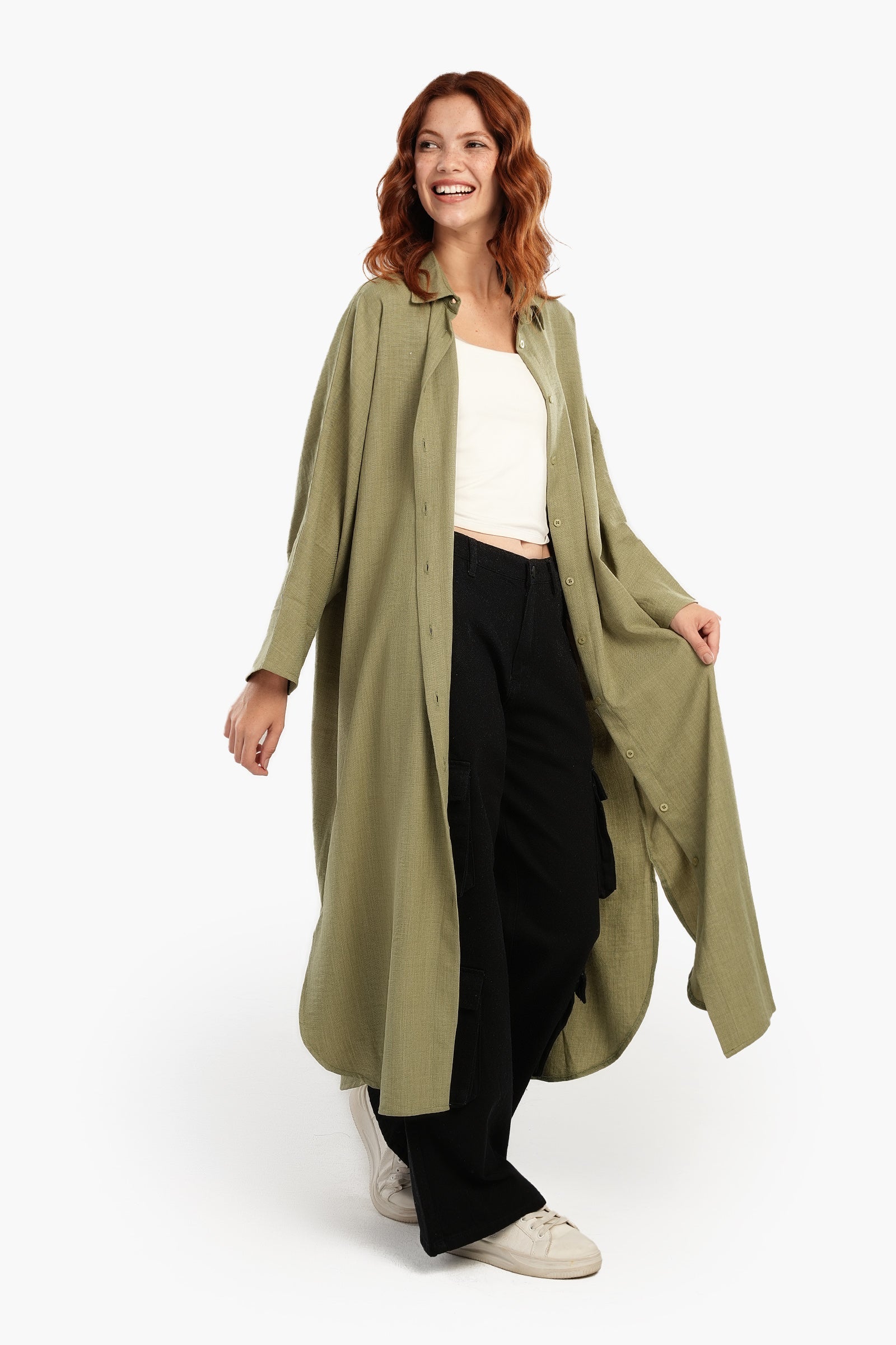 استرخِ بأناقة مع فستان القميص اللاونج، مزيج مثالي من الراحة والأناقة. مصنوع من البوليستر الناعم، يتميز هذا الفستان بقصّة فضفاضة تنسدل بسلاسة لإطلالة مريحة. ياقة كلاسيكية وأزرار للإغلاق تُضفي لمسةً كلاسيكية، بينما تُتيح الفتحة الكاملة إمكانية تنسيقه بطرق مُتعددة. بأكمام طويلة وحاشية دائرية غير مُتماثلة، صُمم هذا الفستان متوسط الطول لسهولة الحركة ولمسة عصرية أنيقة. لونه الموحد يُتيح خيارات لا حصر لها للتنسيق، مما يجعله قطعة أساسية سهلة الارتداء لأيام العمل أو لقضاء بعض المهام.