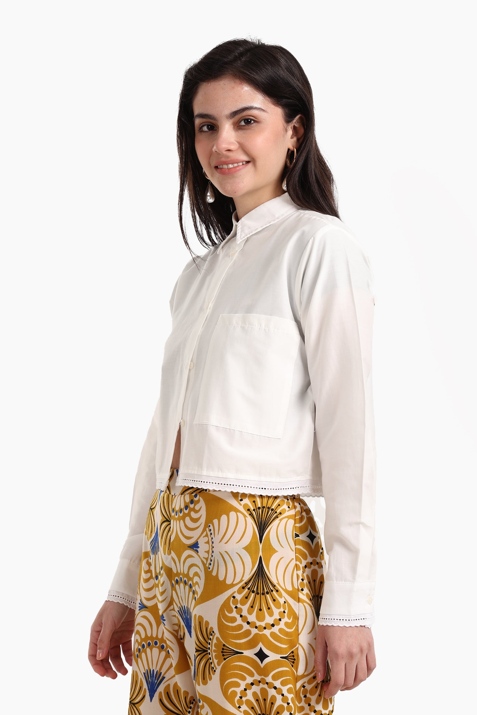 يتميز هذا القميص بياقة كلاسيكية وأزرار إغلاق كاملة، مما يضفي عليه لمسةً عصرية. تصميمه القصير يضفي عليه لمسةً عصرية، بينما يُعزز جيب الصدر من وظائفه. أكمامه الطويلة وأزراره تُتيح تعديل المقاس، مما يجعله قطعةً أنيقةً وسهلة الارتداء.