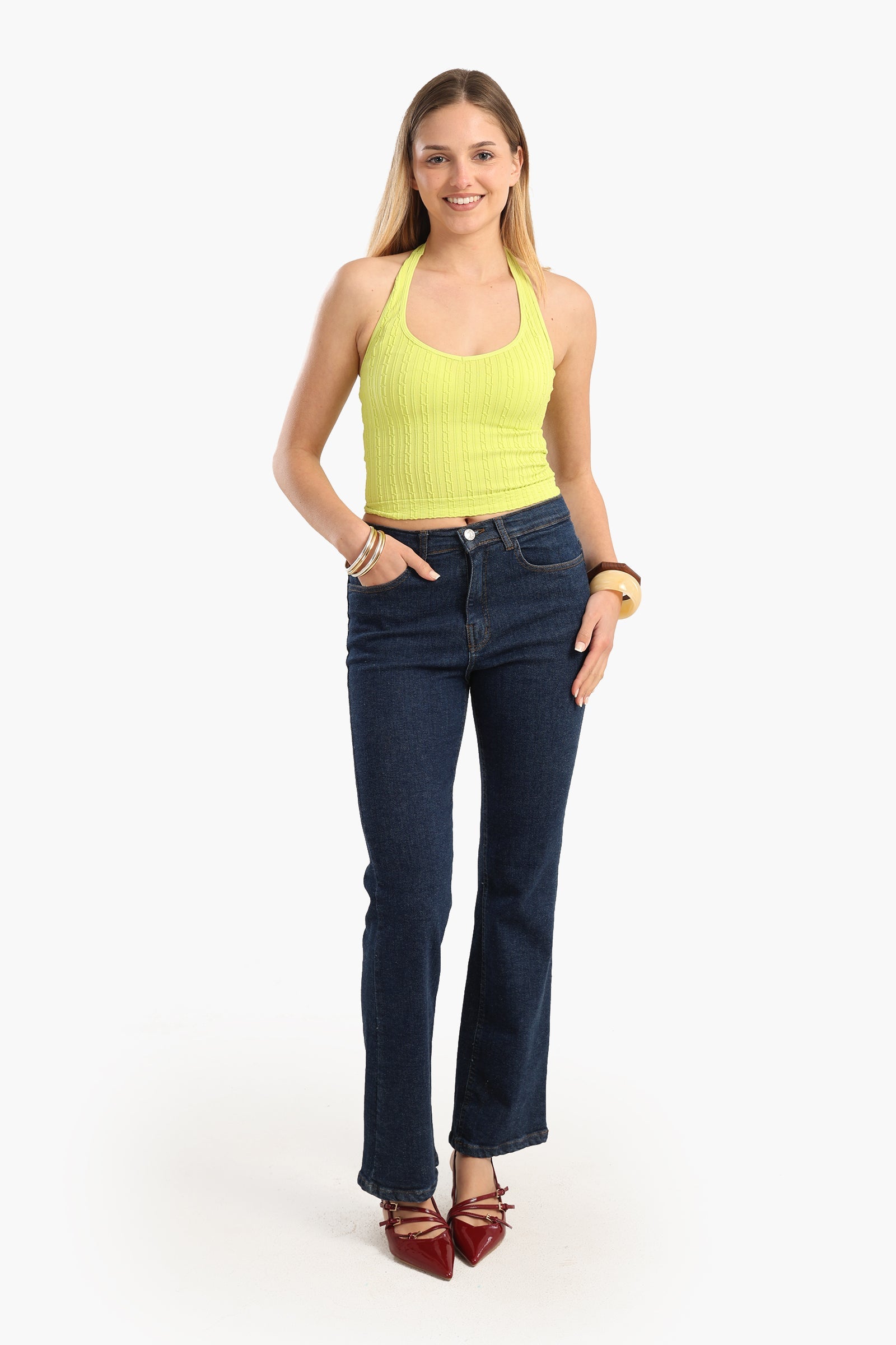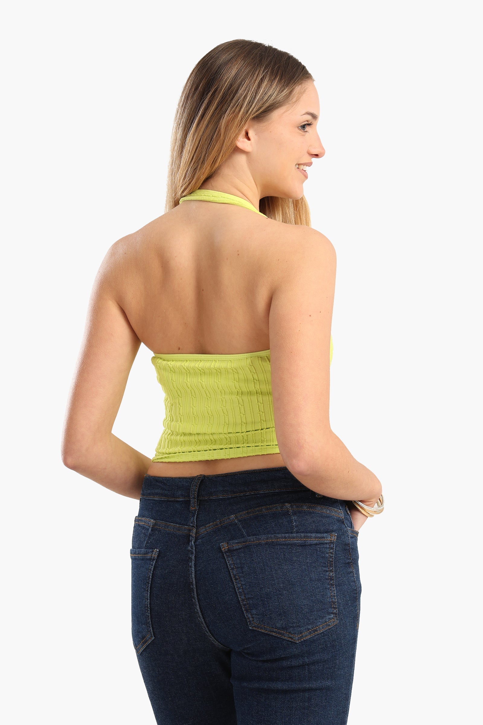 بلوزة قصيرة مضلعة بفتحة رقبة على شكل هالتر