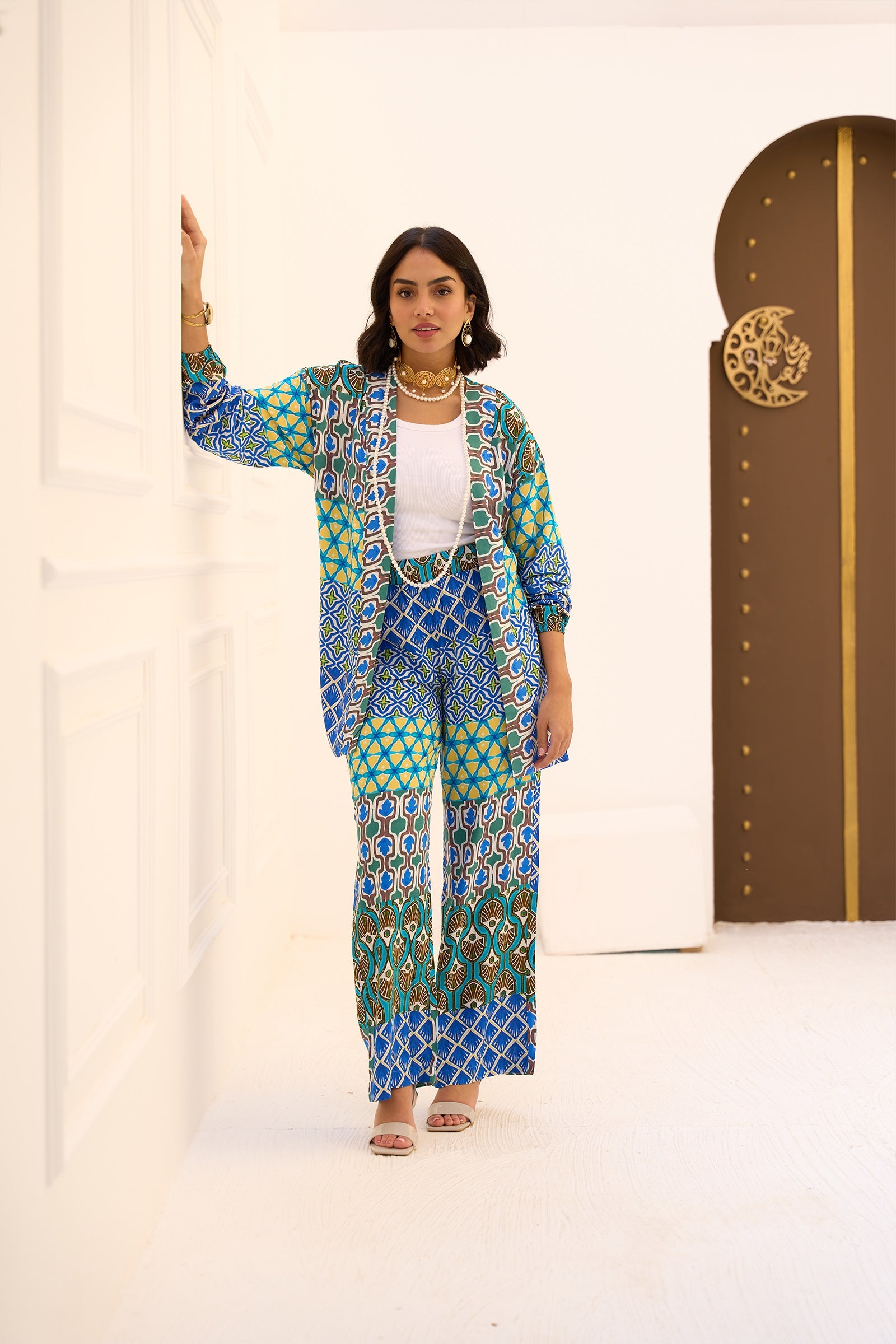 انطلقي في إطلالة أنيقة وبسيطة مع هذا البنطال المريح متعدد الأنماط ، المصمم لإطلالة جريئة. يتميز هذا البنطال بطبعة نابضة بالحياة متعددة الأنماط، ويضفي لمسة فنية على خزانة ملابسك. قصته المستقيمة وقصته المريحة توفران راحة طوال اليوم، بينما يضمن الخصر المرن العالي ملاءمة محكمة ومرنة. مصمم بنمط سهل الارتداء، هذا البنطال الطويل مثالي لأي مناسبة. نسقيه مع كيمونو مطابق لإطلالة أنيقة ومتناسقة تلفت الأنظار.