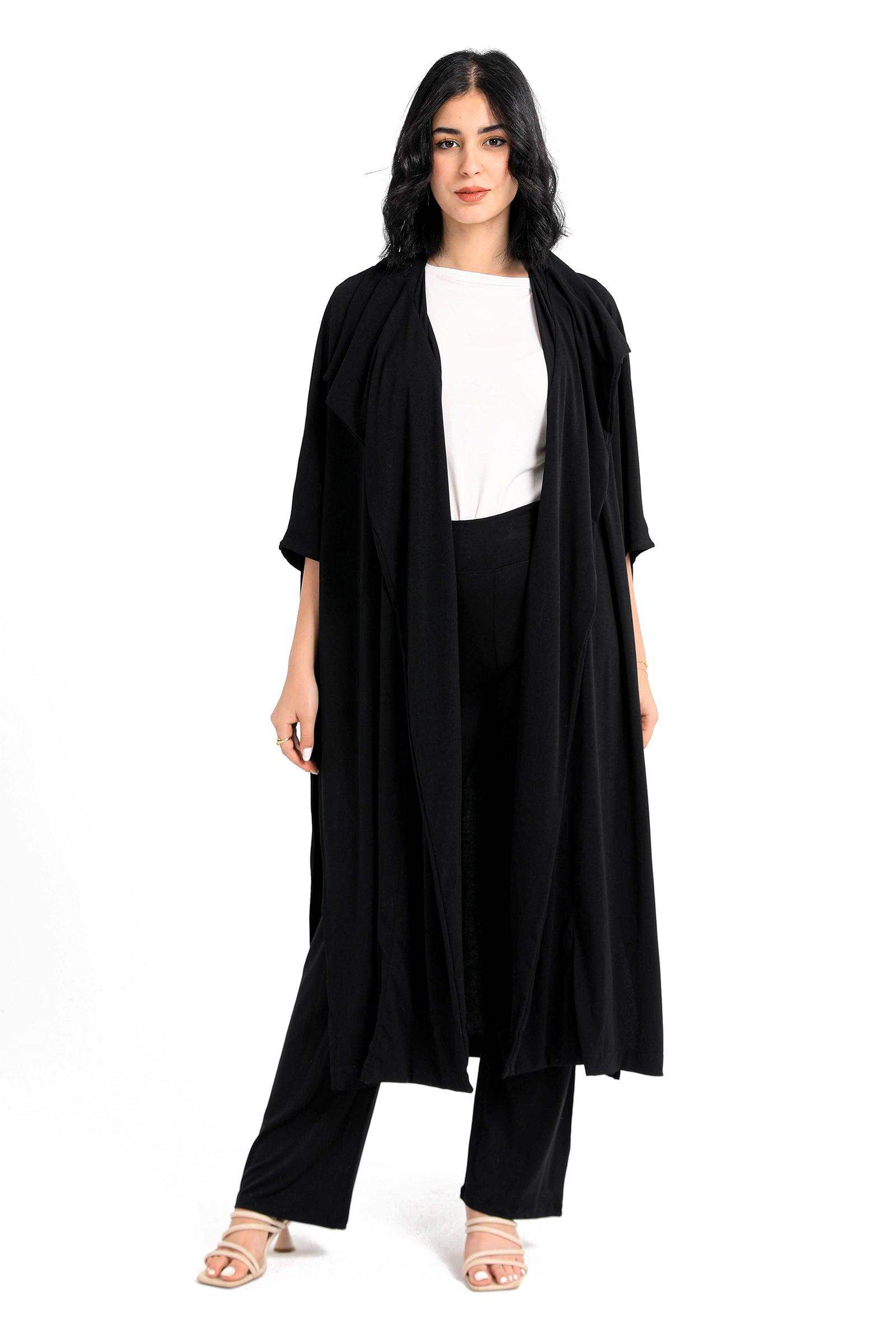 كيمونو متوسط الطول بأكمام ربع طول هو ثوب أنيق ومتعدد الاستخدامات يوفر التوازن بين التغطية والراحة. يتميز هذا الكيمونو بأكمام ربع طول وطول متوسط، مما يجعله خيارًا رائعًا لأولئك الذين يفضلون المزيد من التغطية مع الاستمرار في الرغبة في ثوب خفيف الوزن ومنعش. توفر الأكمام ربع الطول تصميمًا جذابًا وعمليًا، وتوفر تغطية للجزء العلوي من الذراعين مع السماح بسهولة الحركة. هذا الطول من الأكمام مثالي للانتقال بين المواسم أو لأولئك الذين يفضلون القليل من تغطية الذراعين دون الشعور بالقيود الشديدة. يشير الطول المتوسط للكيمونو إلى حاشية الكيمونو، والتي تقع في مكان ما بين الركبة والكاحل. هذا الطول جذاب على أنواع الجسم المختلفة ويوفر مظهرًا متواضعًا ولكنه أنيق. يسمح الطول المتوسط أيضًا بتنوع في التصميم، حيث يمكن إقرانه مع قيعان مختلفة مثل البناطيل أو التنانير أو الفساتين.