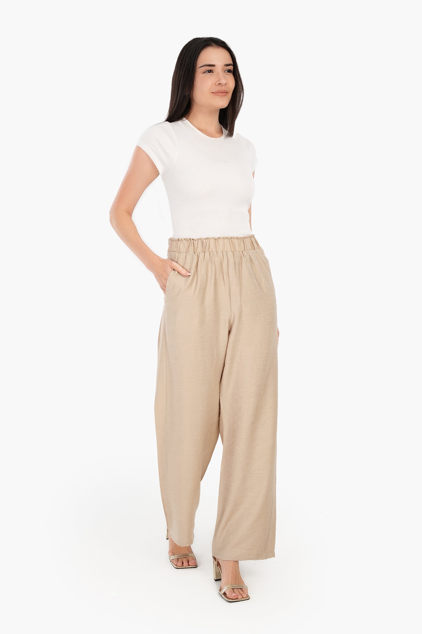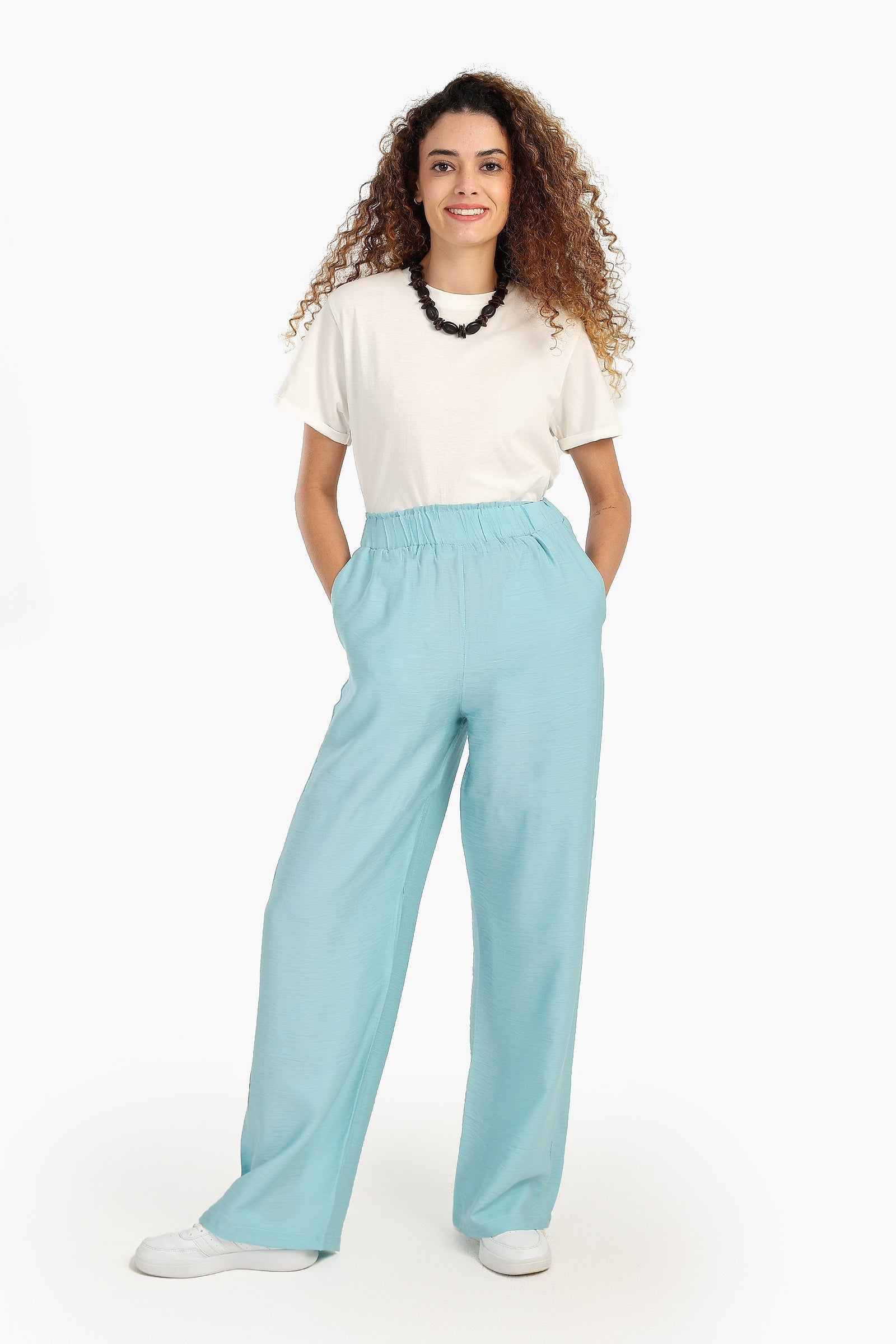 حسّني راحتكِ مع هذا البنطال الأنيق والبسيط. مصمم بنمط سادة لمظهر أنيق ومتعدد الاستخدامات، يوفر هذا البنطال قصة مريحة تضمن لكِ راحةً وحريةً في الحركة طوال اليوم. خصر مطاطي يوفر لكِ ملاءمةً محكمة ومريحة، مما يجعله مثاليًا للاسترخاء أو قضاء المهمات. يتميز بقصّة مستقيمة وطول كامل ، مما يمنح هذا البنطال مظهرًا أنيقًا يناسب جميع أنواع الأجسام. جيوب جانبية مصممة بعناية تضفي لمسةً عملية، وتوفر مساحةً لحفظ أغراضكِ الأساسية الصغيرة. تصميمه سهل الارتداء يجعله سهل الارتداء، ويجمع بين الأناقة والراحة بسلاسة.