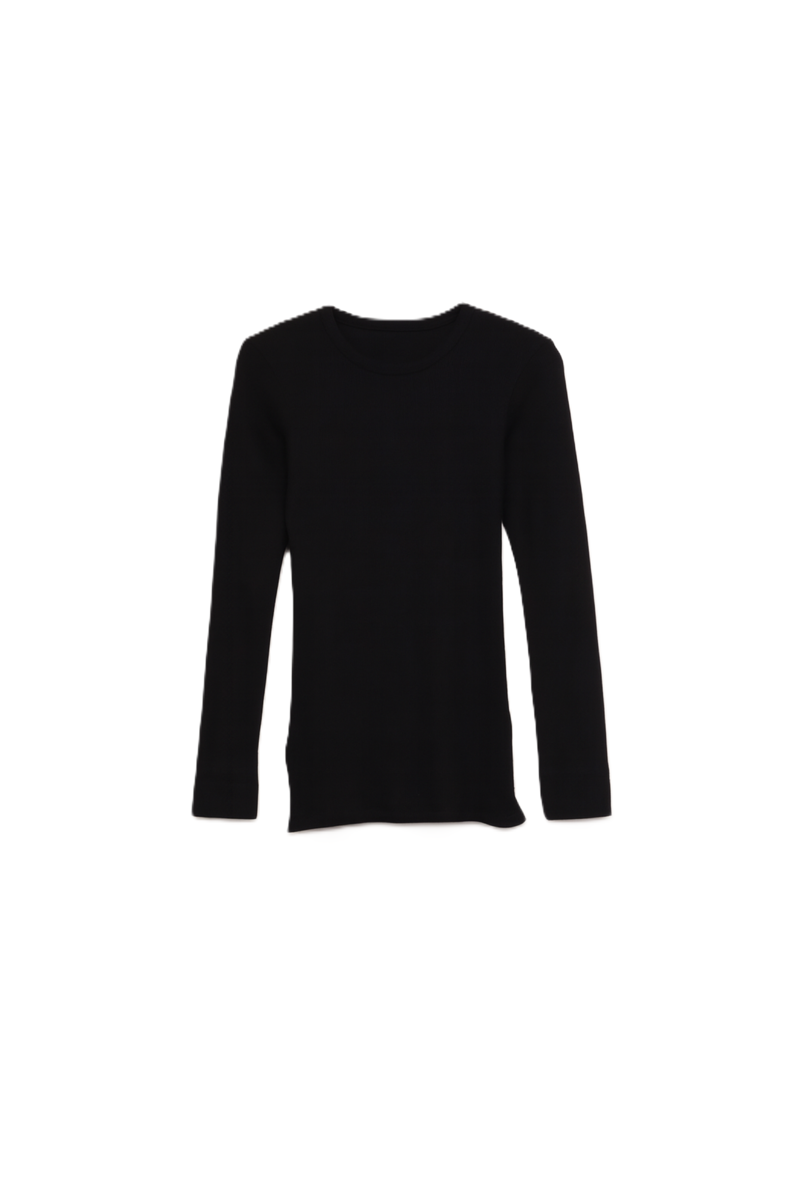 هذا التيشيرت بأكمام طويلة مصنوع من قطن ناعم لراحة تدوم طوال اليوم. يتميز بقصّة ضيّقة، وملمس مضلّع، وياقة مستديرة كلاسيكية، وتصميم بسيط وأنيق مع شقوق جانبية أنيقة لمزيد من الأناقة. مثالي للارتداء مع طبقات أو بمفرده، يجمع هذا التيشيرت متعدد الاستخدامات بين الراحة والأناقة.