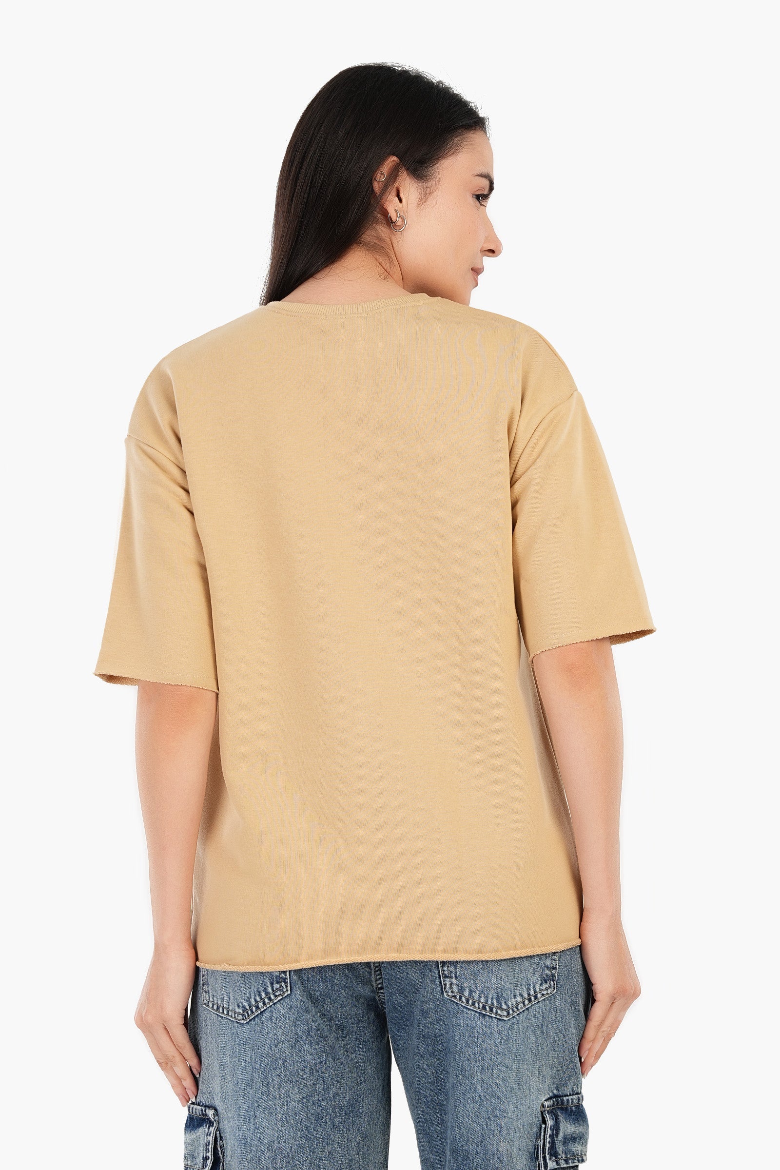 إضافةٌ لا تُضاهى إلى خزانة ملابسك اليومية، يجمع هذا التيشيرت المتين بين الراحة والأناقة بقصته الاعتيادية وتصميمه الأنيق. يتميز بياقة دائرية مضلعة وأكتاف منسدلة، ليمنحكِ تصميمًا عصريًا مريحًا مثاليًا لأي مناسبة غير رسمية. أكمامه القصيرة وحاشيته المستقيمة تضمنان سهولة الحركة، بينما تصميمه سهل الارتداء يجعله سهل الارتداء.