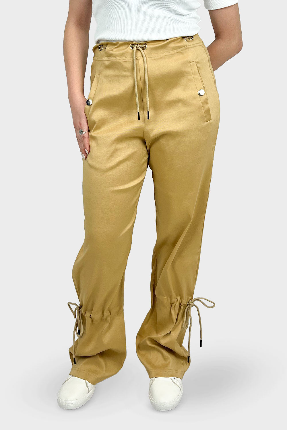 صُنع هذا البنطلون البيج من أوكوي بمهارة من خامة بنغالين المريحة، وهو خيار أنيق ومتعدد الاستخدامات لخزانة ملابسك. يضيف اللون الأسود لمسة من الرقي، بينما يضمن تصميم الكاحل برباط السحب ملاءمة مثالية. مثالي لموسم الصيف.