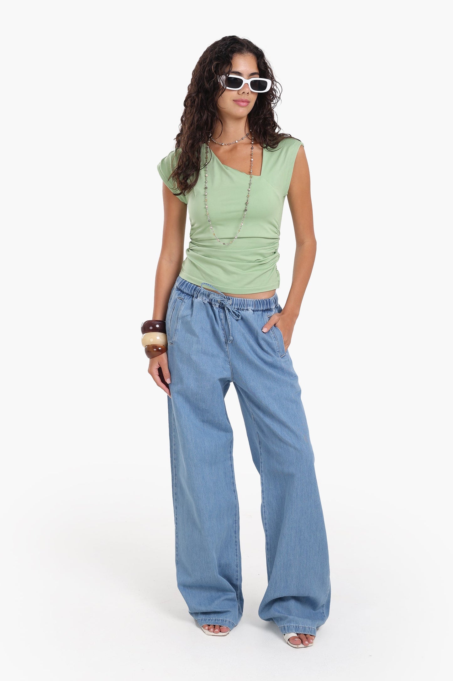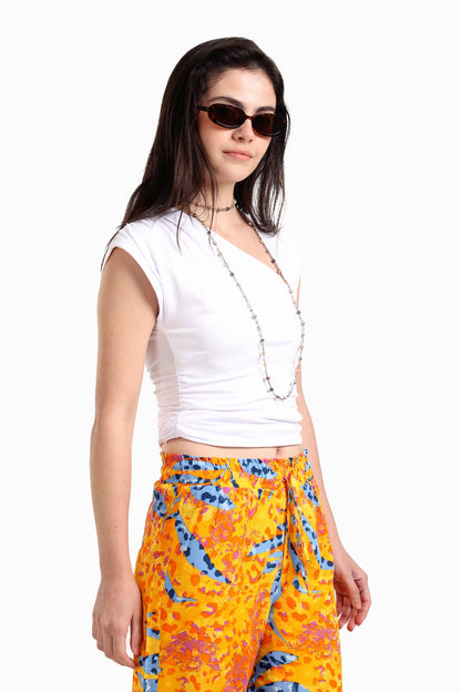 بلوزة غير متماثلة بفتحة رقبة على شكل حرف V