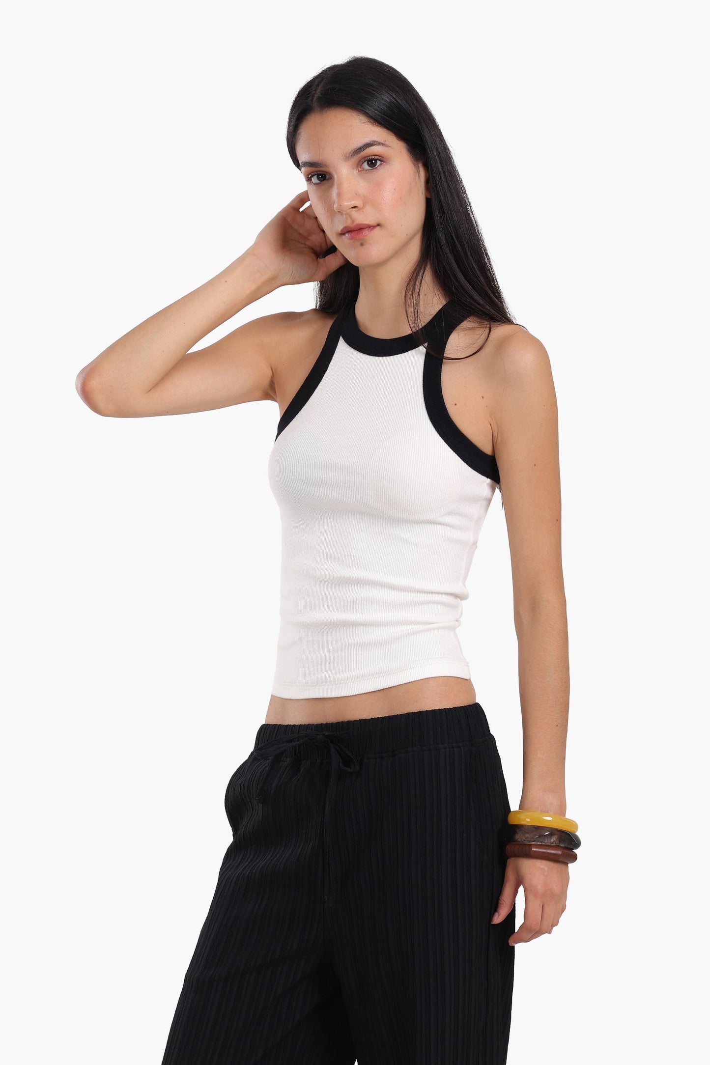 جريئة ورياضية بكل سهولة، هذه البلوزة القطنية المضلعة بتصميم ريسر هي قطعة مميزة لخزانة ملابسك الكاجوال. مصنوعة من قطن ناعم ومرن، تتميز بقصة ضيقة ضيقة مع نسيج مضلع يتحرك معك. فتحة الرقبة والظهر بتصميم ريسر تُبرز أناقتها الرياضية وتُبرز الكتفين. بتصميمها المتناسق مع الألوان، تُضفي هذه البلوزة بدون أكمام لمسة جمالية وأناقة على أي إطلالة. بتصميمها سهل الارتداء، فهي مثالية للأيام التي ترغبين فيها بإطلالة أنيقة بأقل جهد.