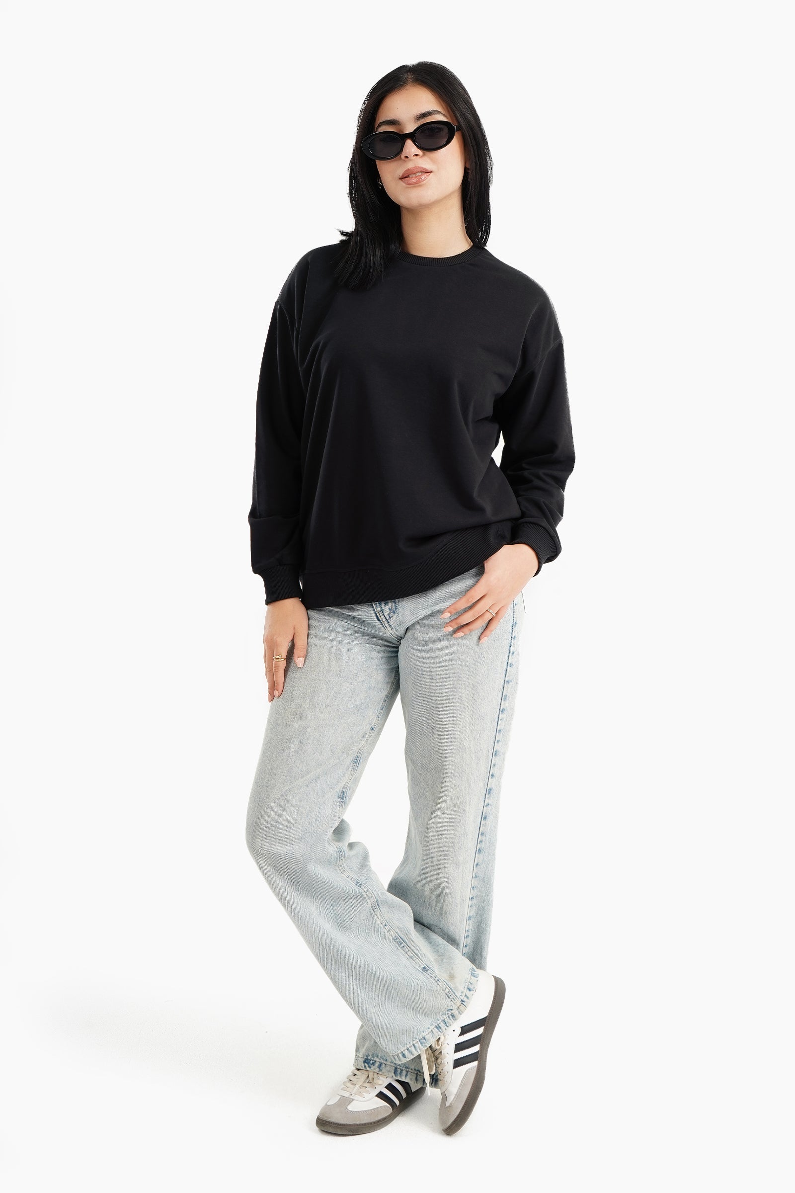 - نقدم لكم سويت شيرت لاونج، رمز الراحة والدفء والأناقة الكاجوال. مصنوع من القطن الناعم، يمنحك هذا السويت شيرت شعورًا بالدفء والراحة، مثاليًا للاسترخاء في المنزل أو لقضاء مشاويرك. يضفي نقشه الموحد لمسة كلاسيكية، بينما يمنحك قصته المريحة مظهرًا أنيقًا. يتميز هذا السويت شيرت بياقة دائرية وأكمام طويلة، مما يمنحك إطلالة كلاسيكية أنيقة، ويسهل تنسيقه مع ملابسك المفضلة. تضفي الأكمام المغلقة والكتف المنسدلة لمسة عصرية على التصميم، بينما يجعل تصميمه سهل الارتداء ارتداءه سهلًا.