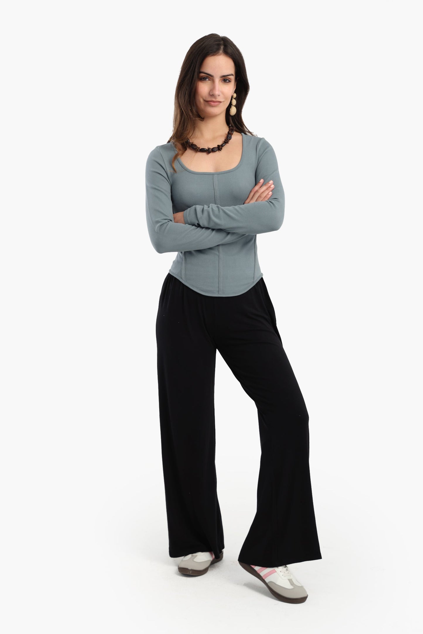 أبرزي قوامكِ مع هذا الكورسيه العلوي المُناسب لشكل الجسم، المُصمم بقصّة ضيقة بلمسة عصرية. مُصمّم بنمط مُضلّع، يُحيط بالجسم من جميع الجوانب، مُوفرًا تصميمًا مُتناسقًا ومرنًا لراحة تدوم طوال اليوم. يُضفي خط العنق المربع لمسةً أنثوية أنيقة، بينما تُضفي الأكمام الطويلة لمسةً من الأناقة والرقي على الإطلالة.