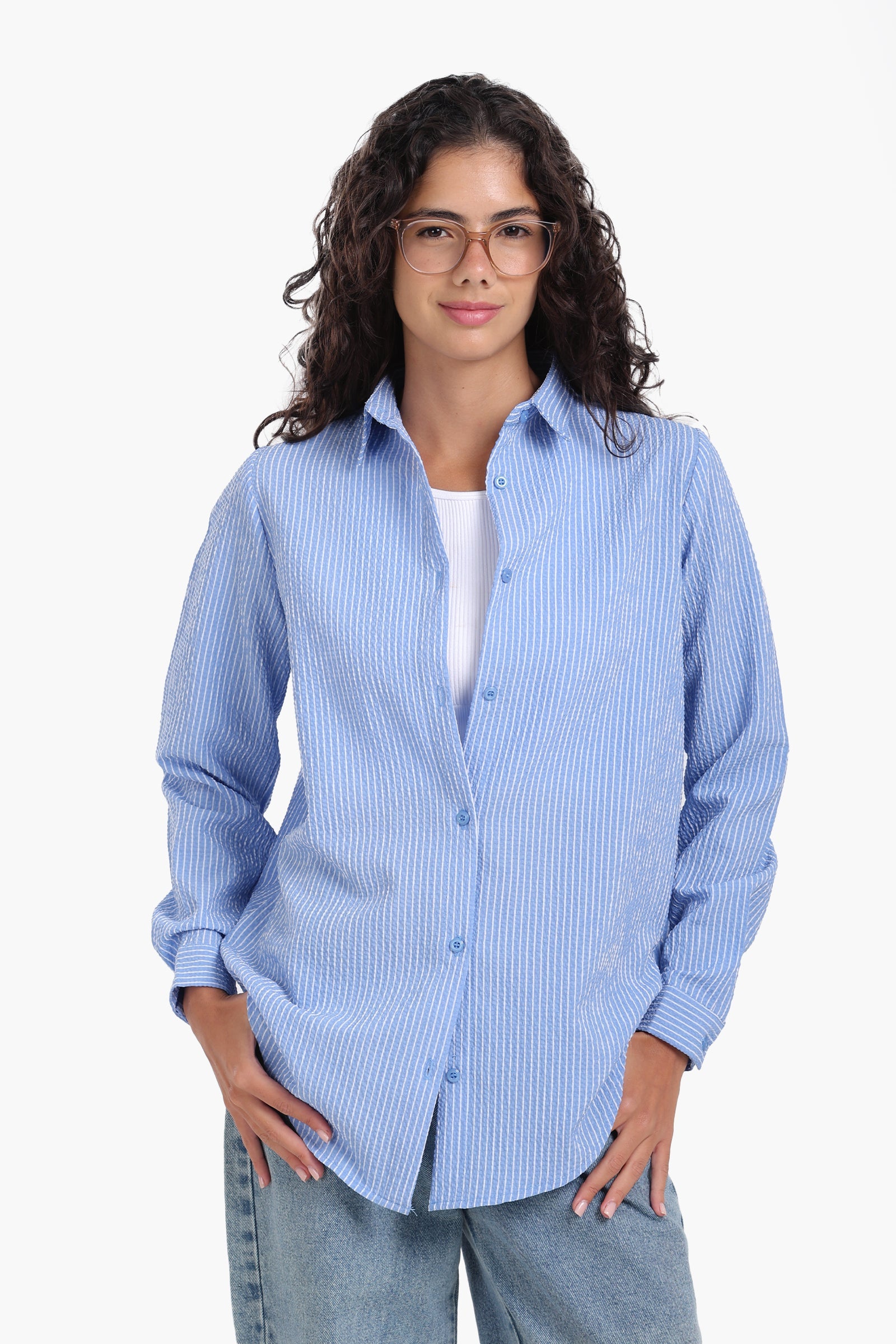 قميص مخطط بأكمام طويلة