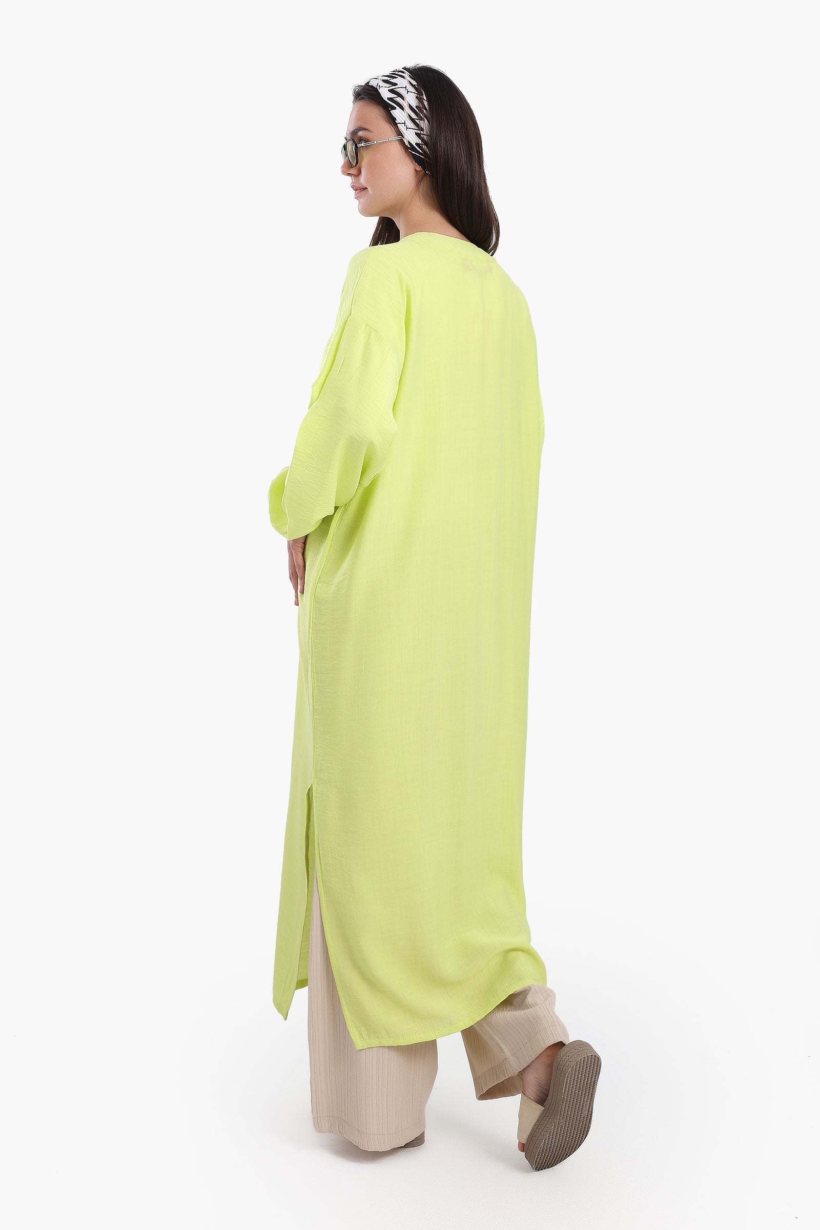ارتقِ بإطلالة صيفية أنيقة مع هذا الكارديجان الصيفي الخفيف والأنيق. مصمم بقصّة مريحة، يمنحك شعورًا بالراحة والبرودة، مما يجعله مثاليًا للنزهات في الطقس الدافئ. يضفي نقشه الموحد لمسة من الرقي، مما يجعله مثاليًا للارتداء مع مختلف الملابس. يتميز هذا الكارديجان بفتحة رقبة مفتوحة، وينسدل بسلاسة، ليمنحكِ إطلالة أنيقة ومتعددة الاستخدامات.