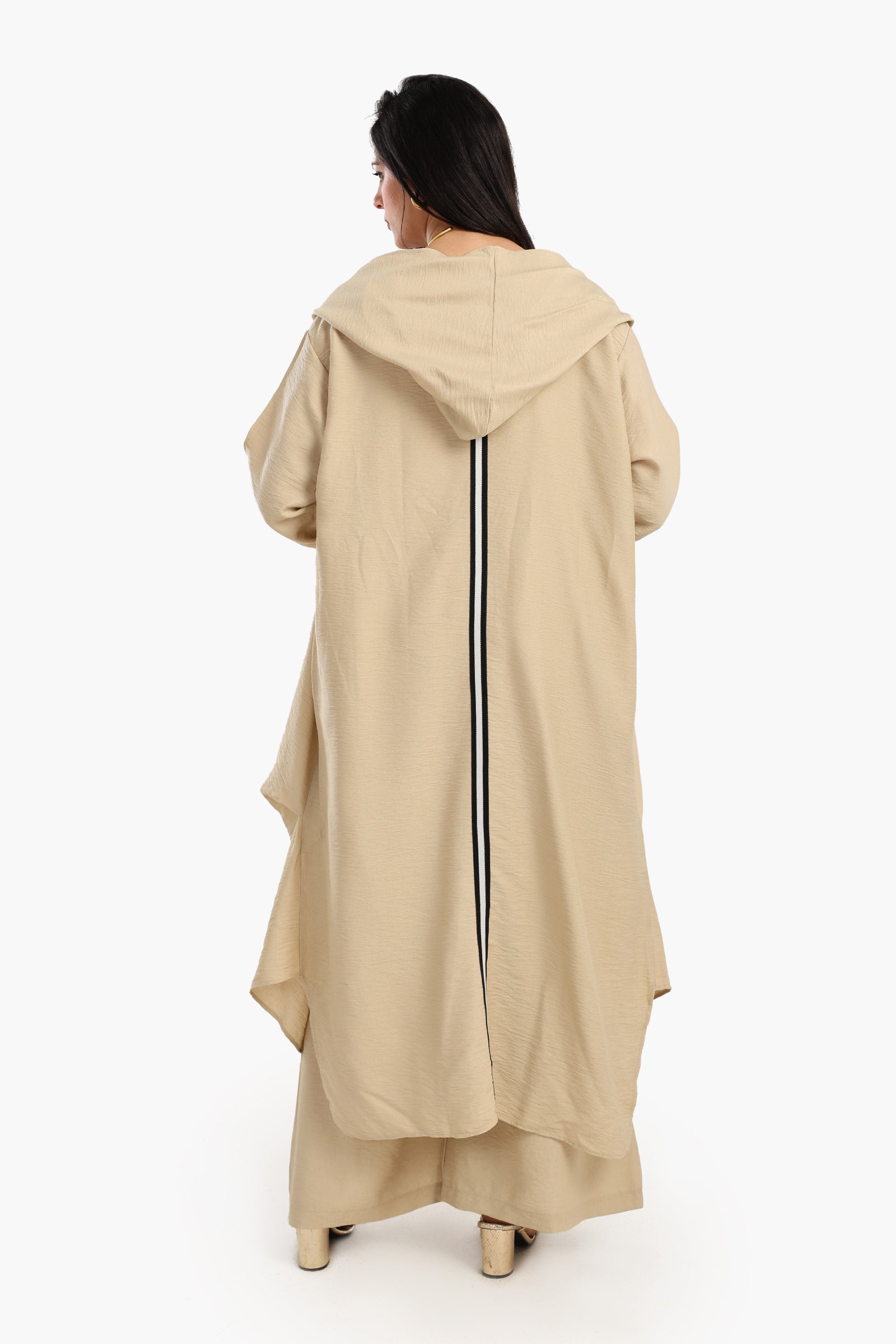 استمتعي بأناقة مريحة مع كيمونو الاسترخاء هذا، المصنوع من مزيج فيسكوز ناعم يمنحكِ شعورًا بالتهوية والانسيابية. مصمم بقصّة مريحة، ينساب بسلاسة على الجسم، ليمنحكِ الراحة والأناقة. يضمن النمط الموحد تعدد الاستخدامات، بينما يُضفي خط العنق المفتوح والياقة المزودة بغطاء رأس لمسة عصرية ومريحة. يتميز هذا الكيمونو بأكمام طويلة لمزيد من الدفء والتغطية، ويصل طوله إلى متوسط الطول بتصميم غير متماثل، مما يُضفي عليه مظهرًا ديناميكيًا وأنيقًا. بفضل سهولة ارتدائه، يُعدّ قطعةً مثاليةً للاسترخاء أو الخروجات غير الرسمية.