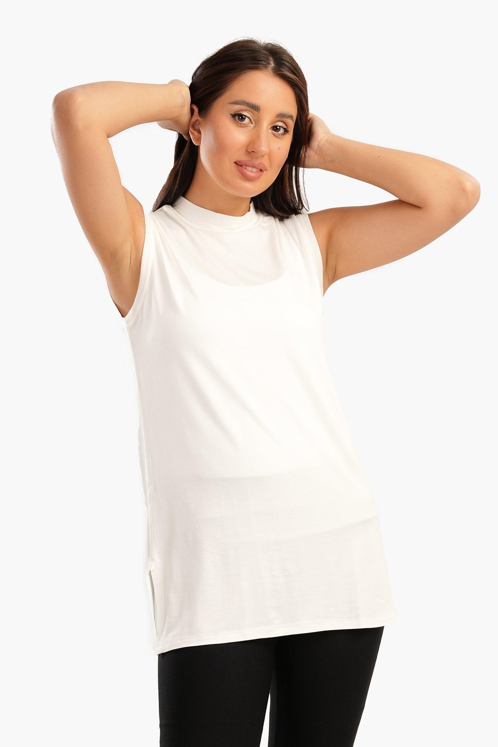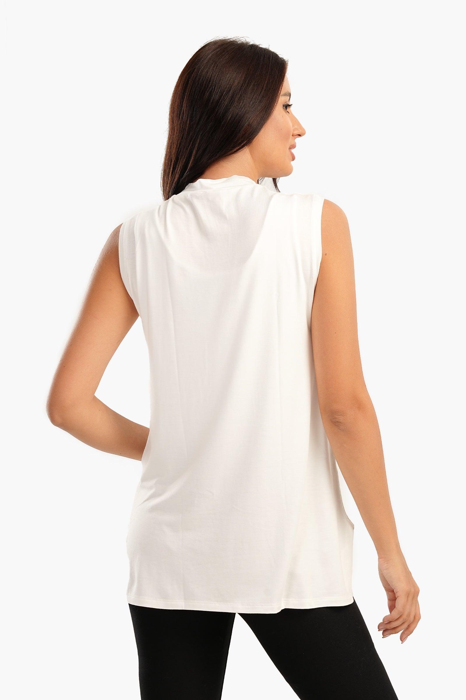 بلوزة فيسكوز بيضاء اللون بقصّة عادية