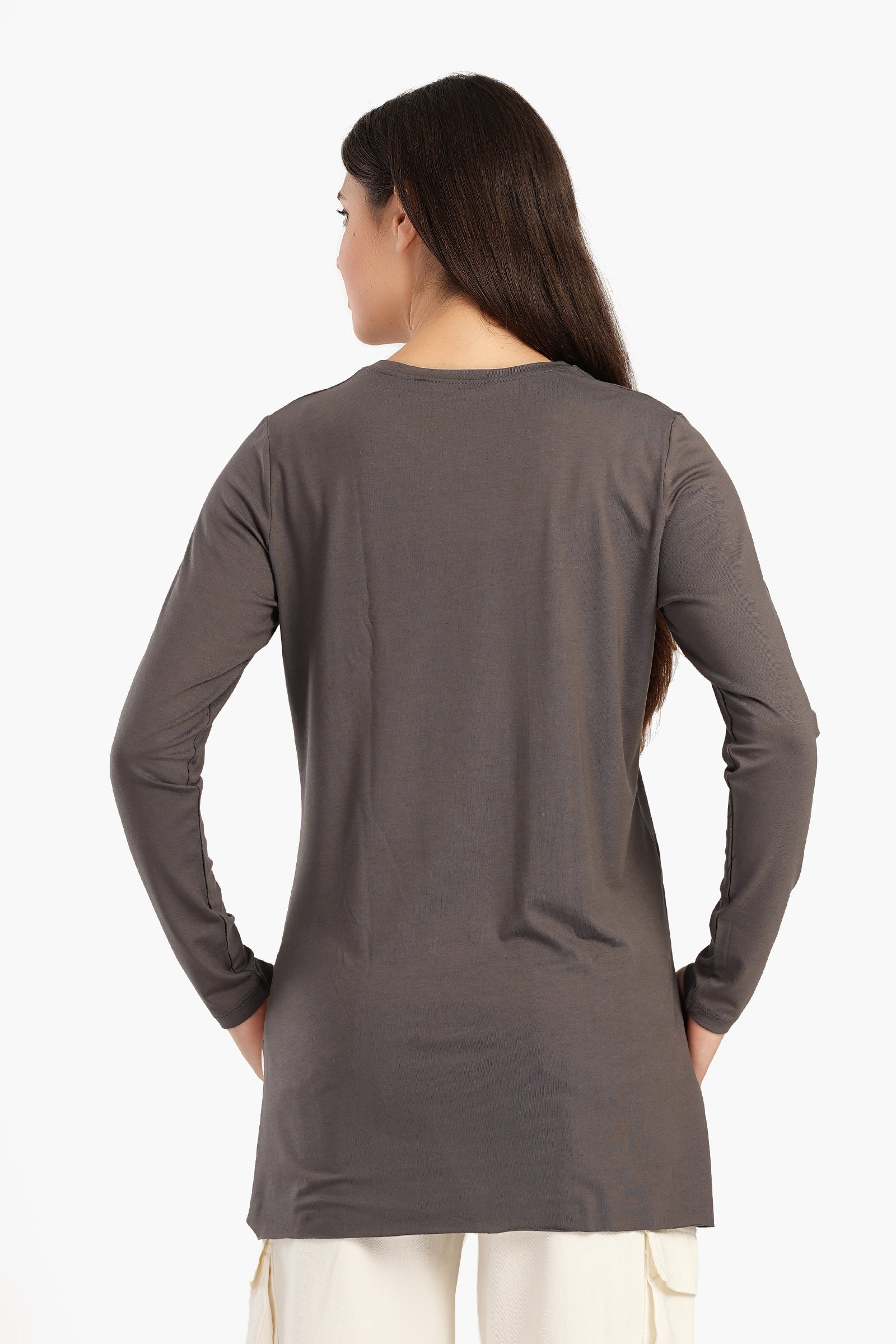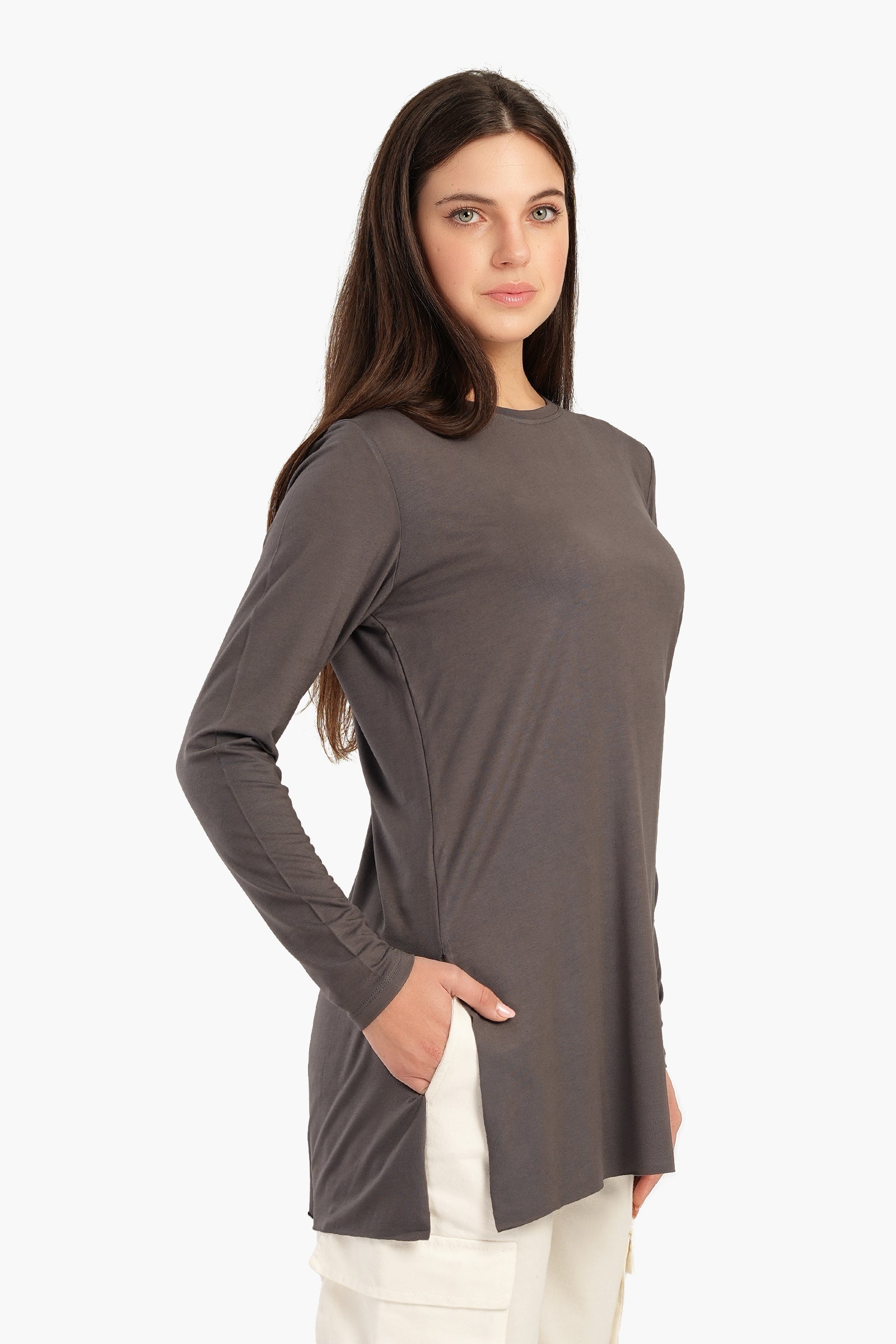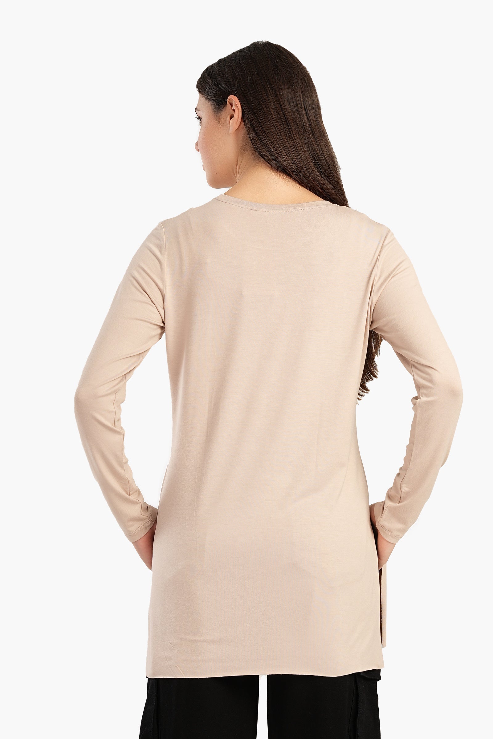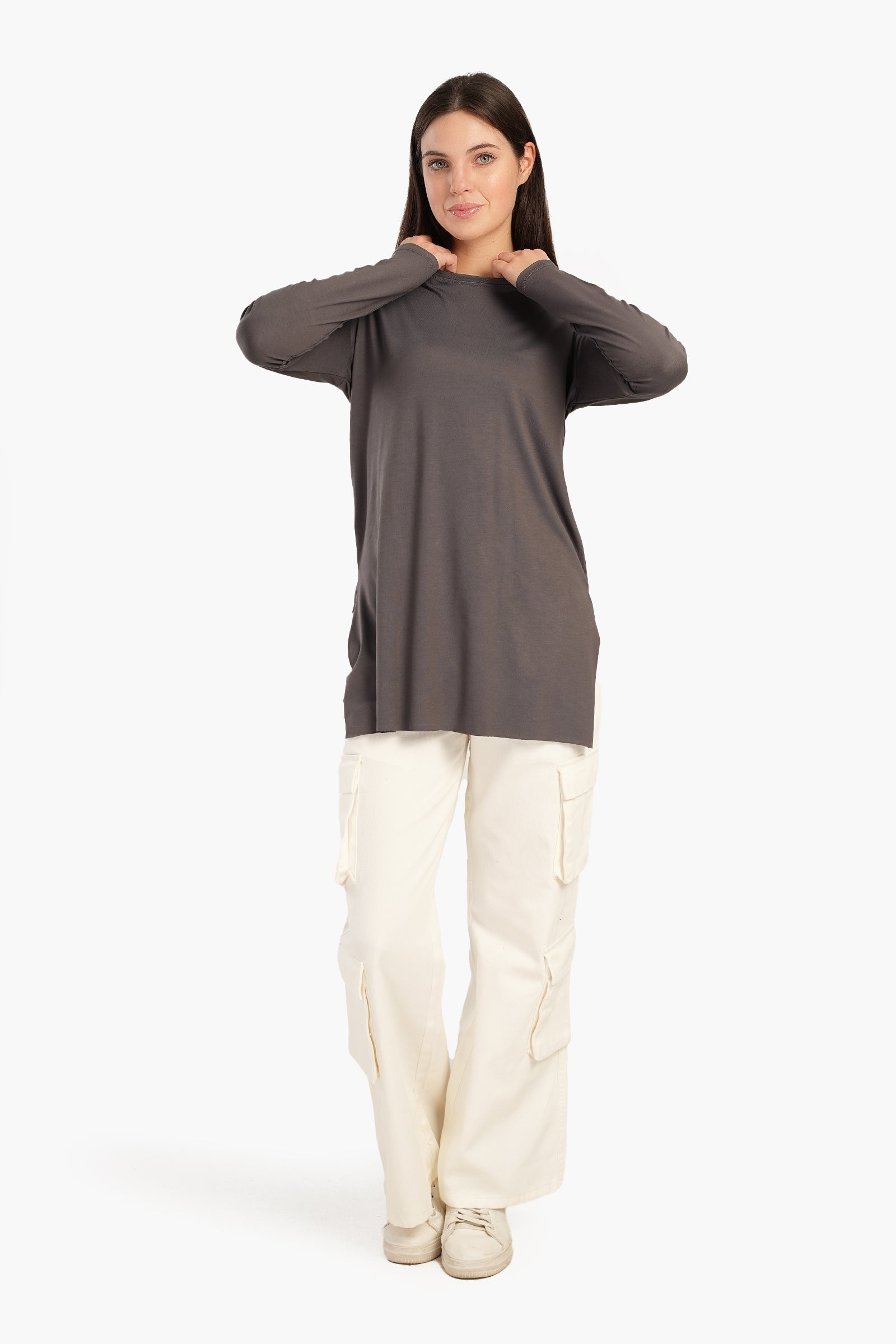 هذا التيشيرت المصنوع من الفيسكوز يمنحكِ الراحة والأناقة بقصته المريحة وقماشه الناعم والمسامي. نقشته المتناسقة تجعله قطعة أساسية متعددة الاستخدامات في خزانة ملابسكِ، بينما تمنحه الرقبة المستديرة مظهرًا عصريًا وعصريًا. بأكمامه الطويلة وفتحتين جانبيتين، يضفي هذا التيشيرت لمسة من الراحة والانسيابية على إطلالتكِ. تصميمه سهل الارتداء يضمن لكِ الراحة والأناقة دون عناء.