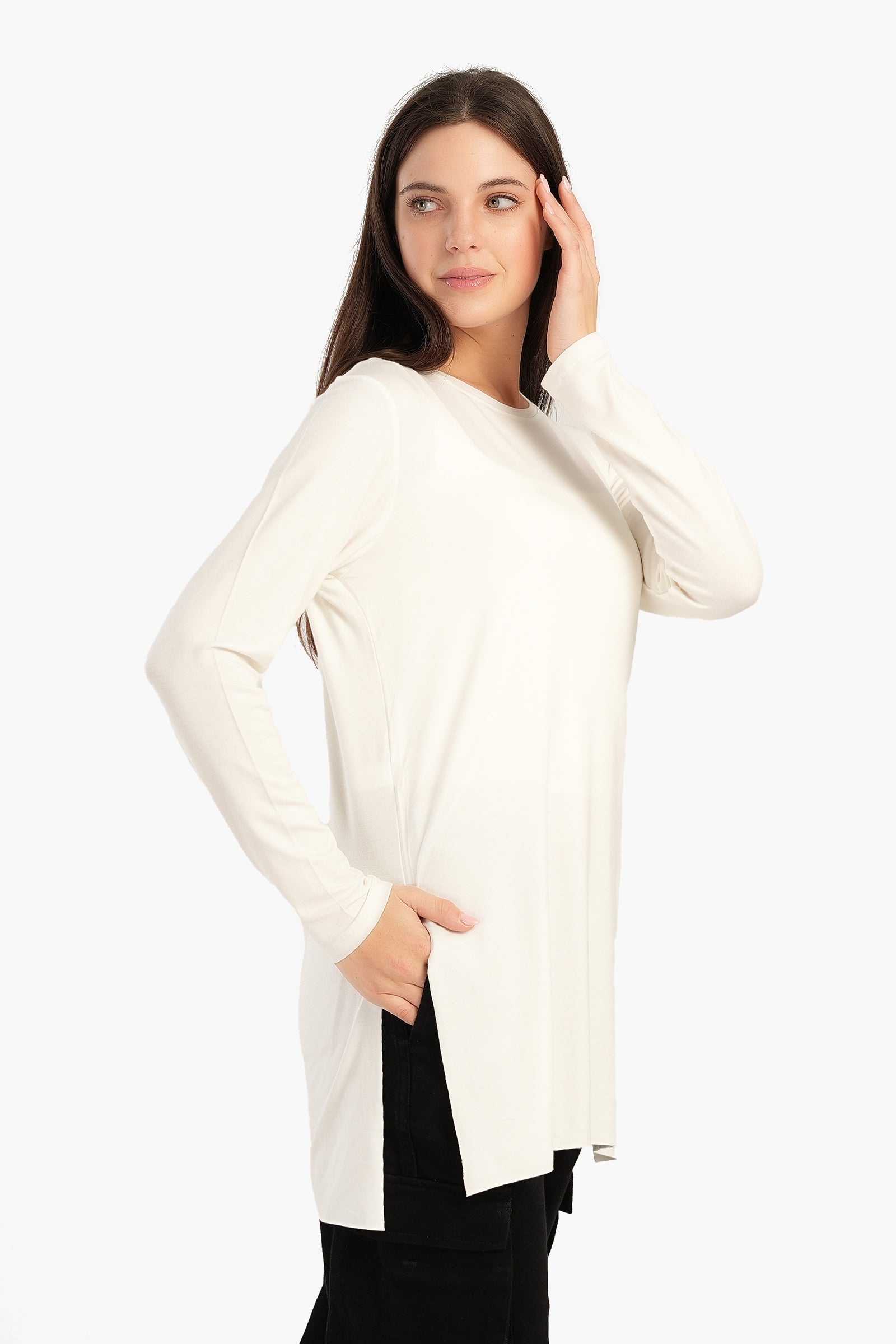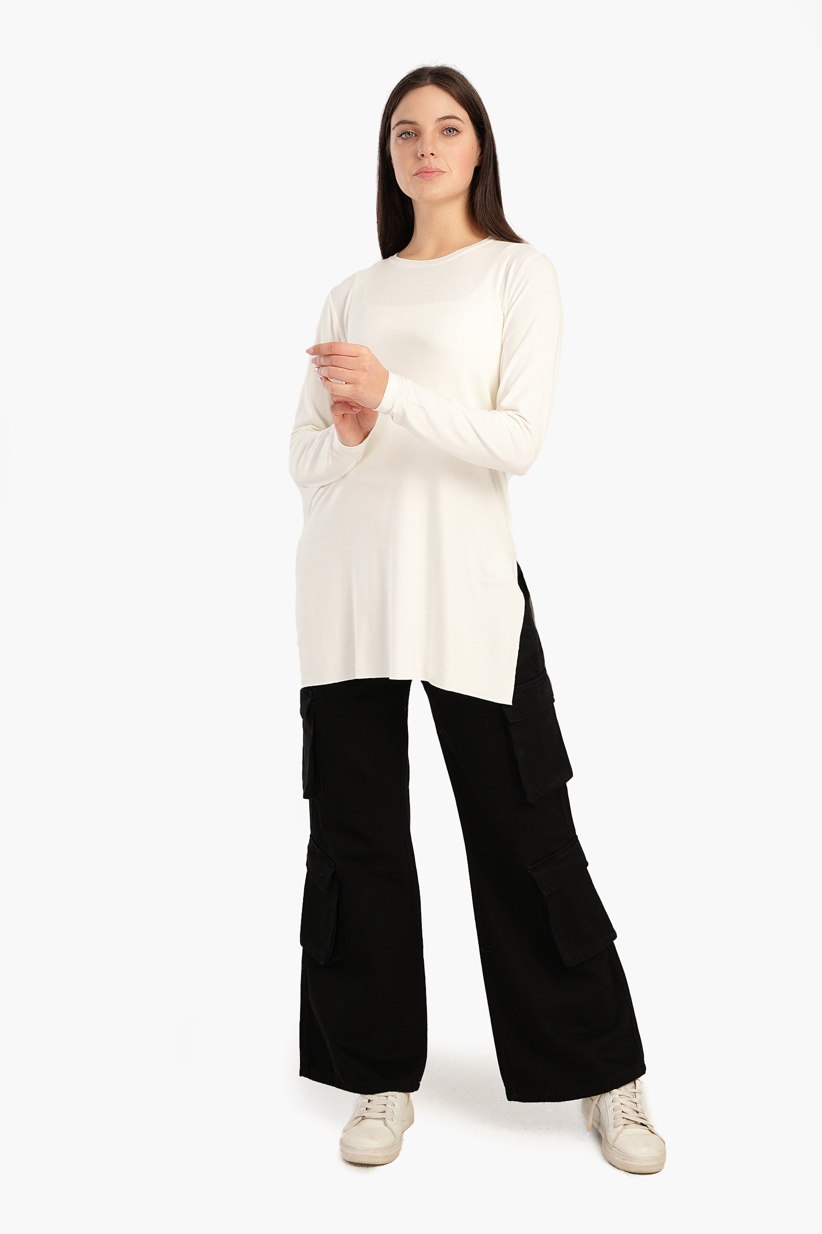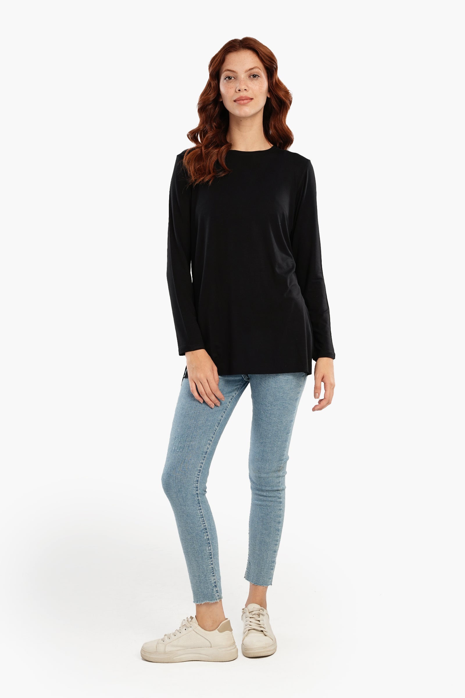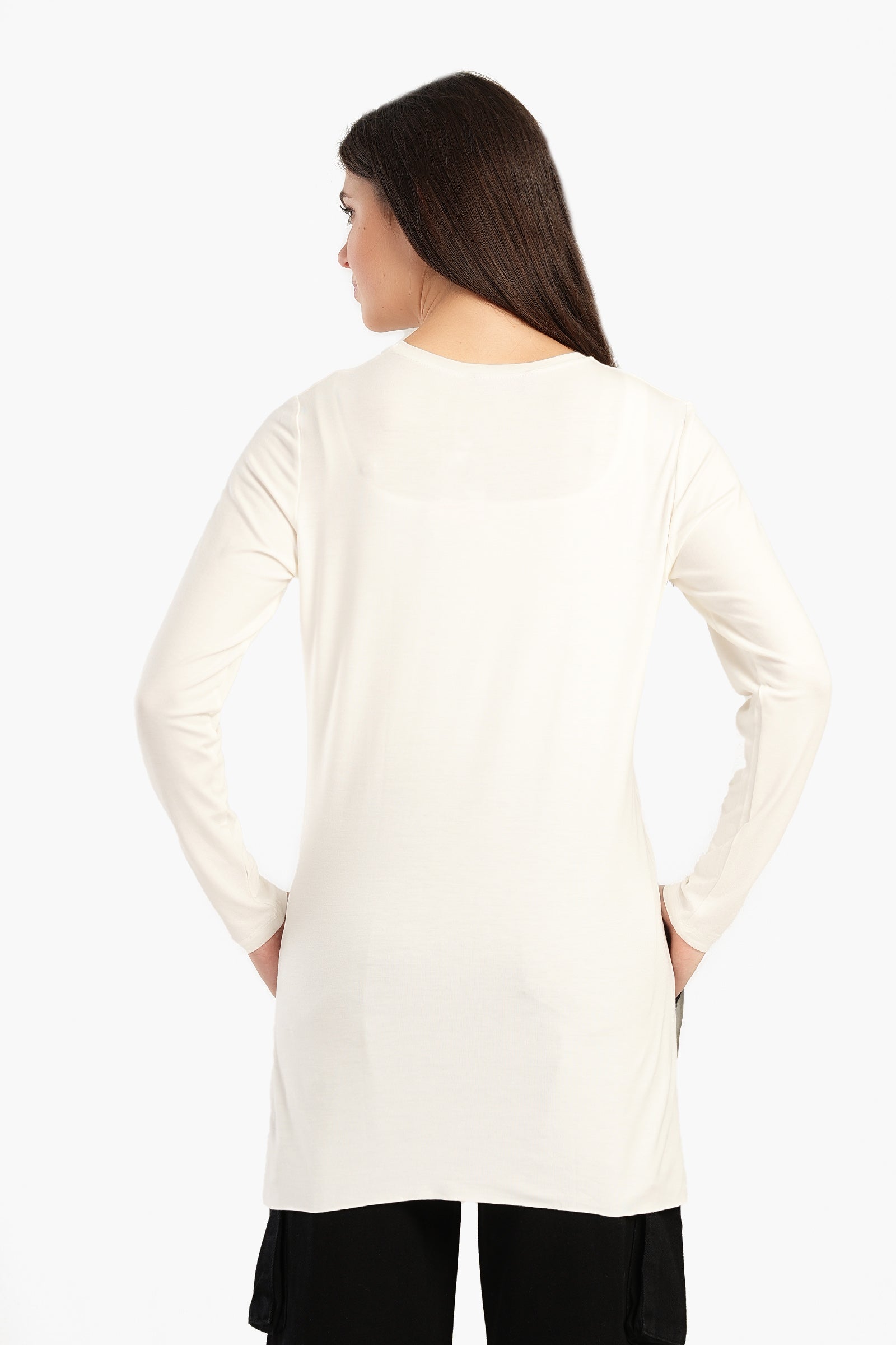 هذا التيشيرت المصنوع من الفيسكوز يمنحكِ الراحة والأناقة بقصته المريحة وقماشه الناعم والمسامي. نقشته المتناسقة تجعله قطعة أساسية متعددة الاستخدامات في خزانة ملابسكِ، بينما تمنحه الرقبة المستديرة مظهرًا عصريًا وعصريًا. بأكمامه الطويلة وفتحتين جانبيتين، يضفي هذا التيشيرت لمسة من الراحة والانسيابية على إطلالتكِ. تصميمه سهل الارتداء يضمن لكِ الراحة والأناقة دون عناء.