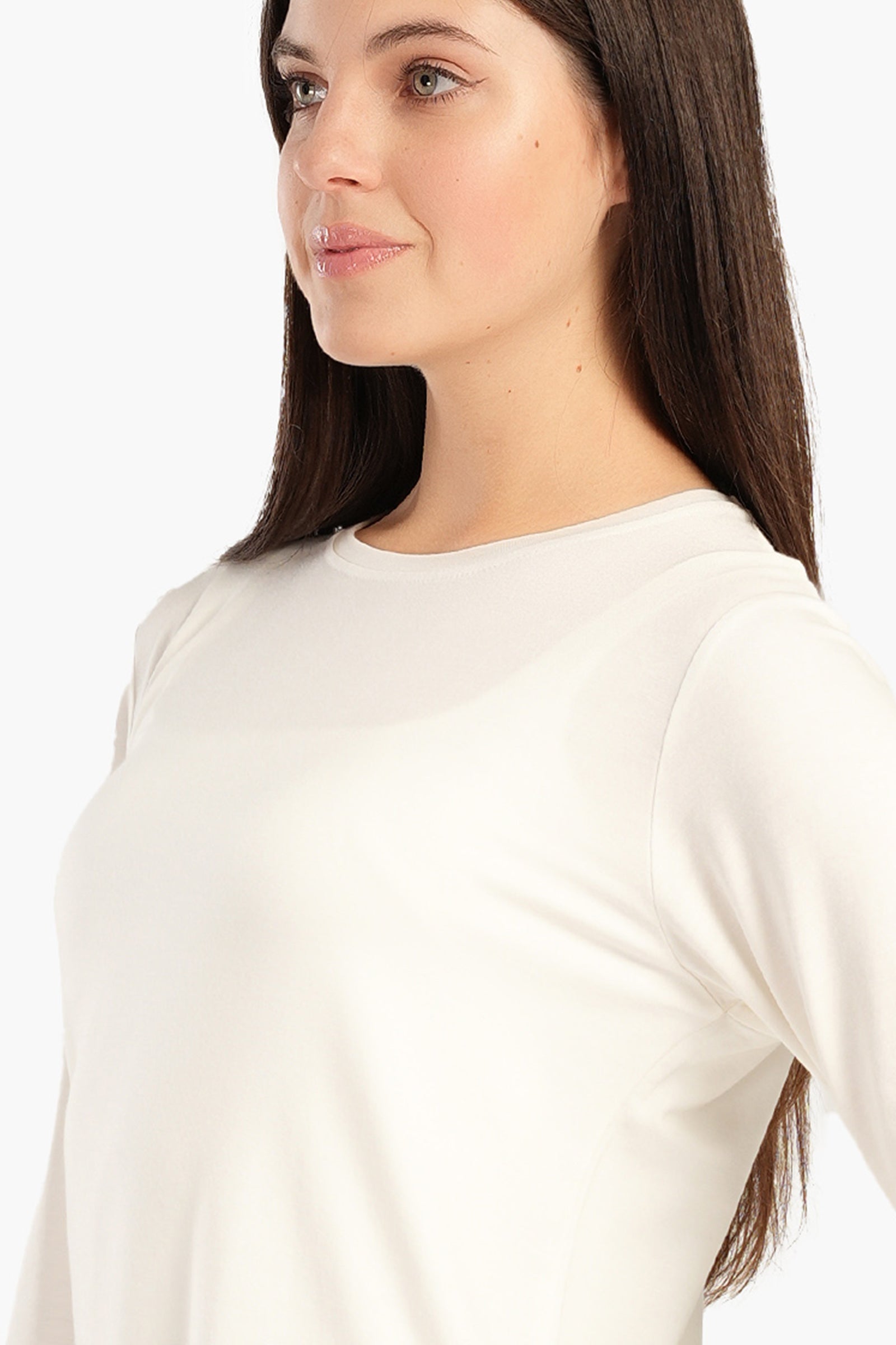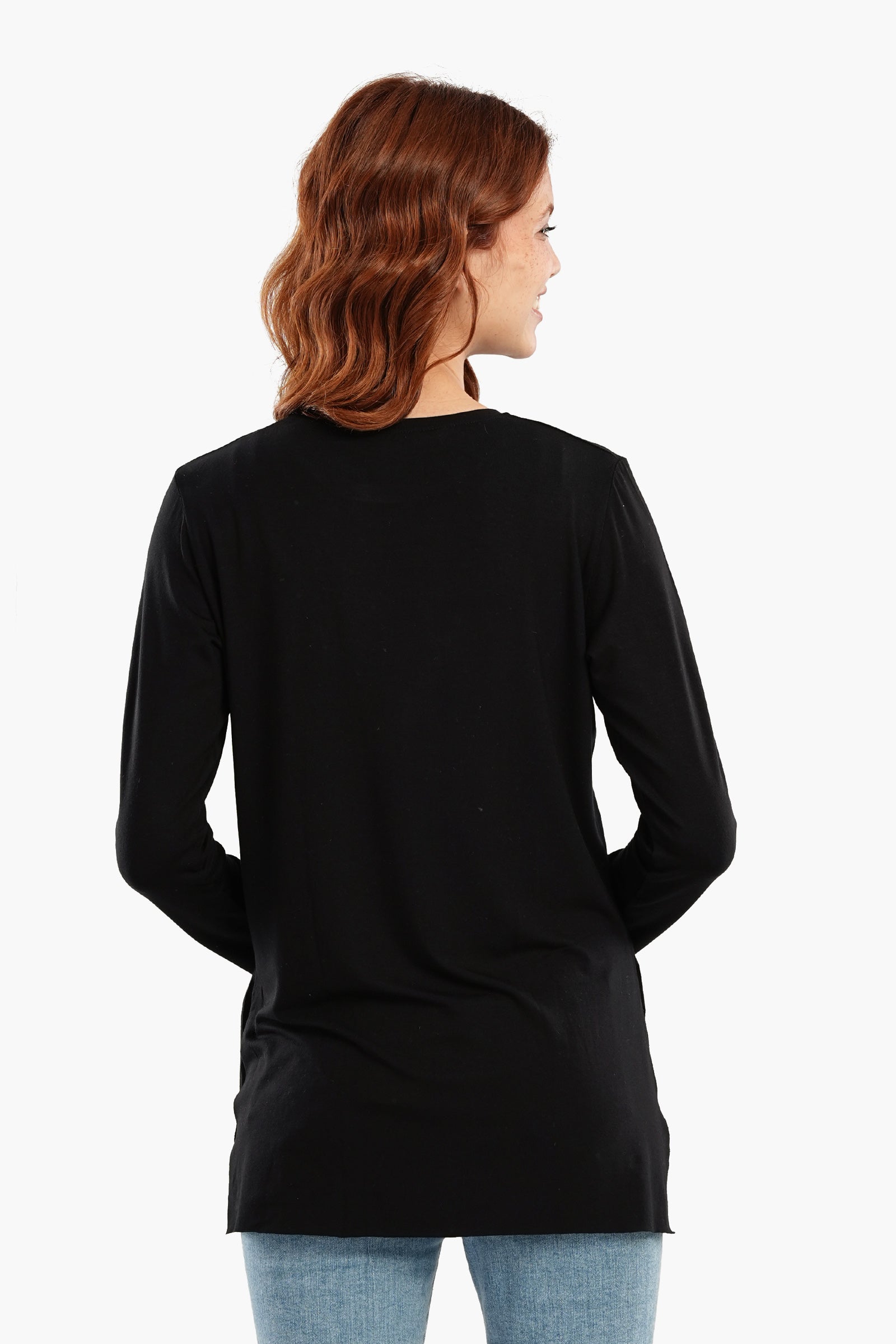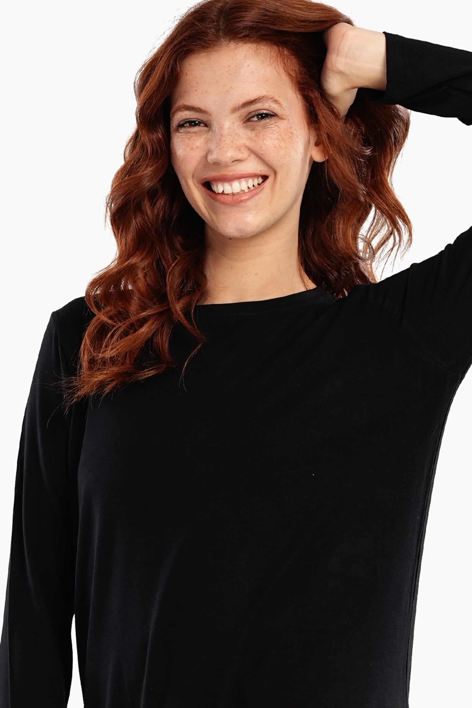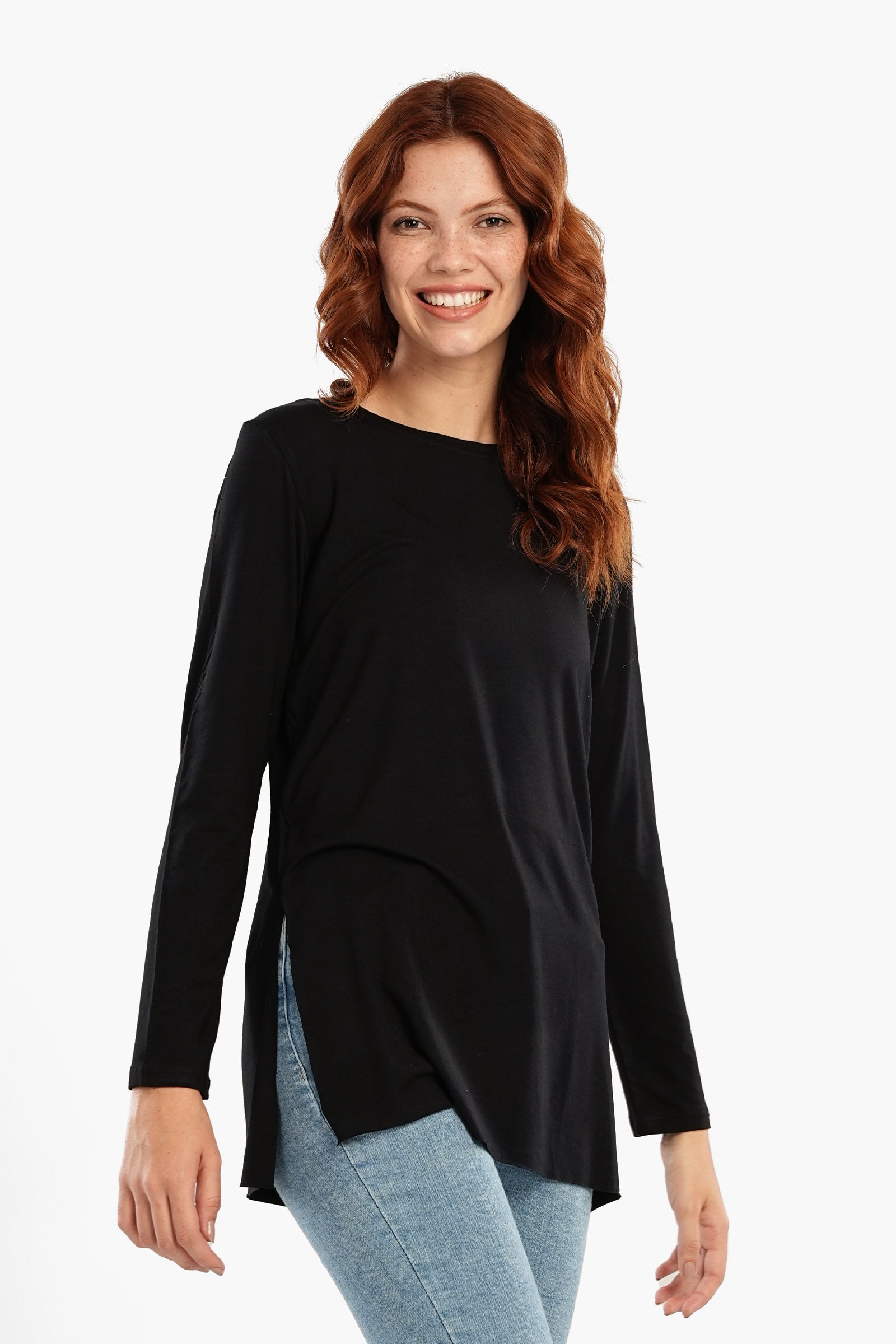 هذا التيشيرت المصنوع من الفيسكوز يمنحكِ الراحة والأناقة بقصته المريحة وقماشه الناعم والمسامي. نقشته المتناسقة تجعله قطعة أساسية متعددة الاستخدامات في خزانة ملابسكِ، بينما تمنحه الرقبة المستديرة مظهرًا عصريًا وعصريًا. بأكمامه الطويلة وفتحتين جانبيتين، يضفي هذا التيشيرت لمسة من الراحة والانسيابية على إطلالتكِ. تصميمه سهل الارتداء يضمن لكِ الراحة والأناقة دون عناء.