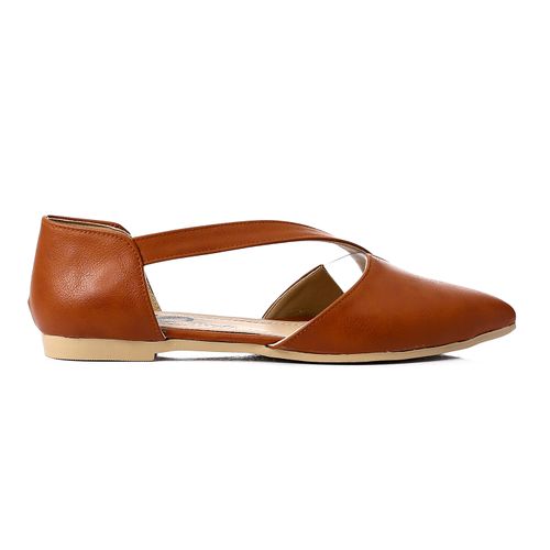 حذاء مسطح جلدي مفتوح الجانبين