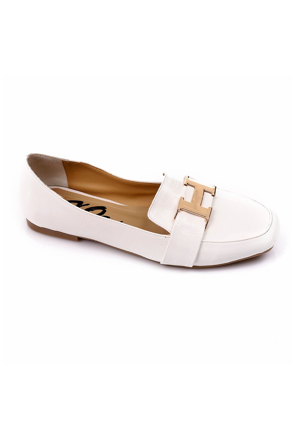 حذاء مسطح بتفاصيل علوية بيضاء