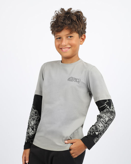 Gray Printed Sleeves Cotton T-shirt for Boys