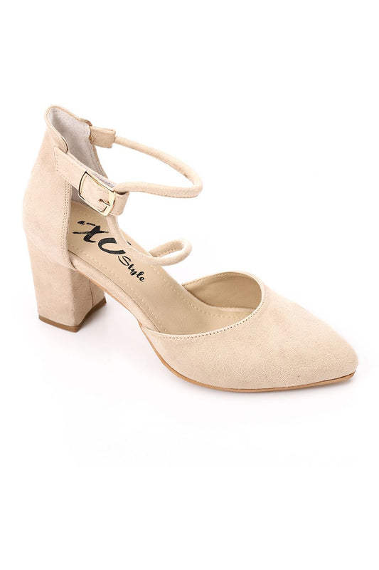 Beige Ankle Buckle Heeled Sandal