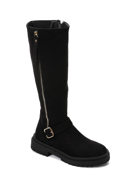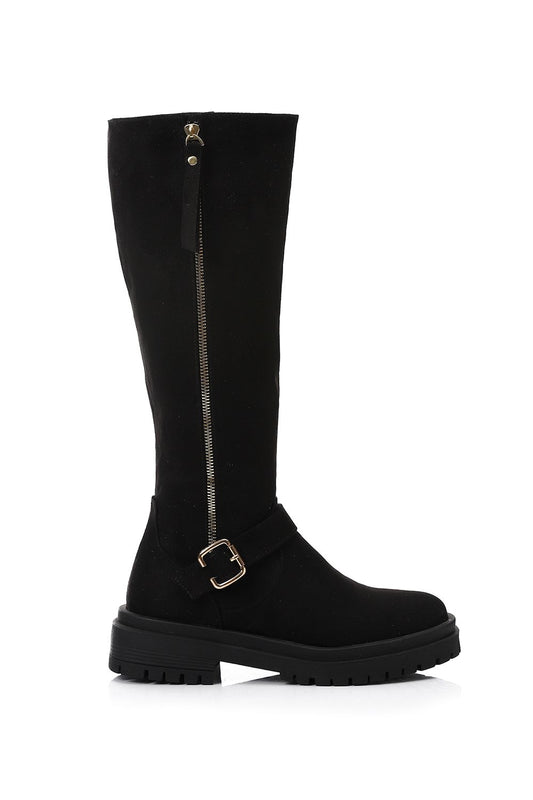 Black Back Suede Knee High Boot