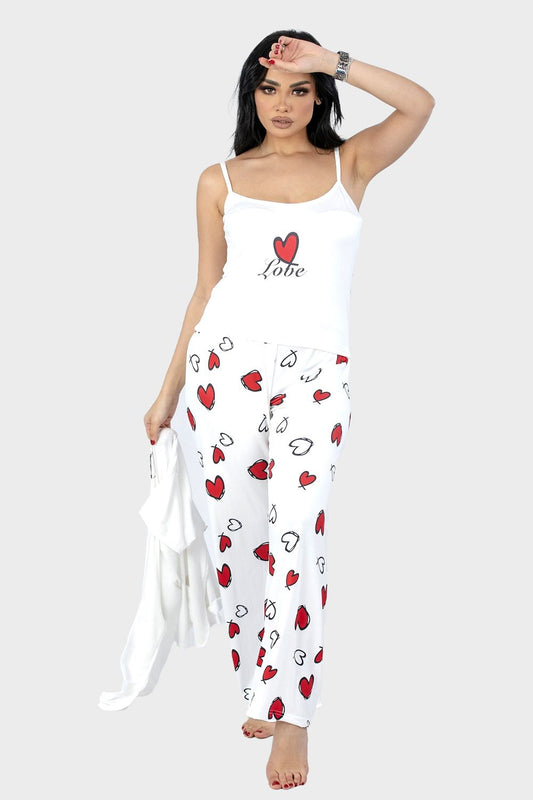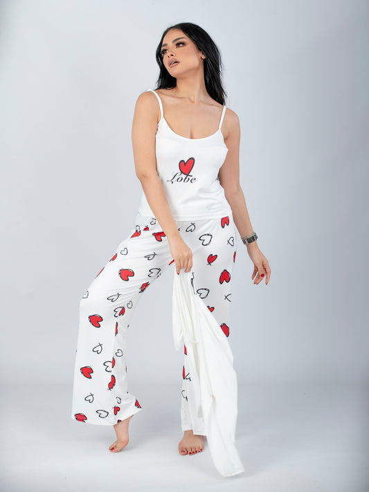 Red Hearts Printed 2 Pieces Pajama Set