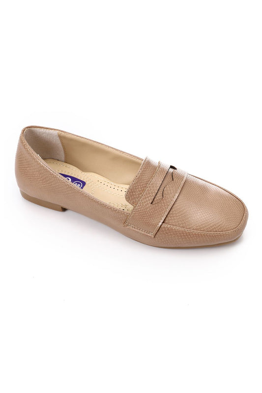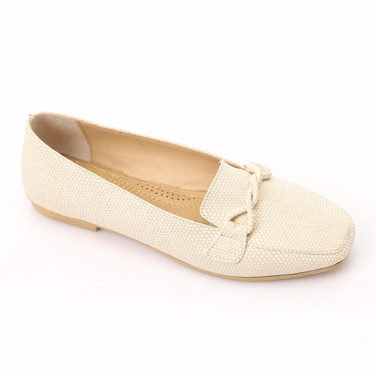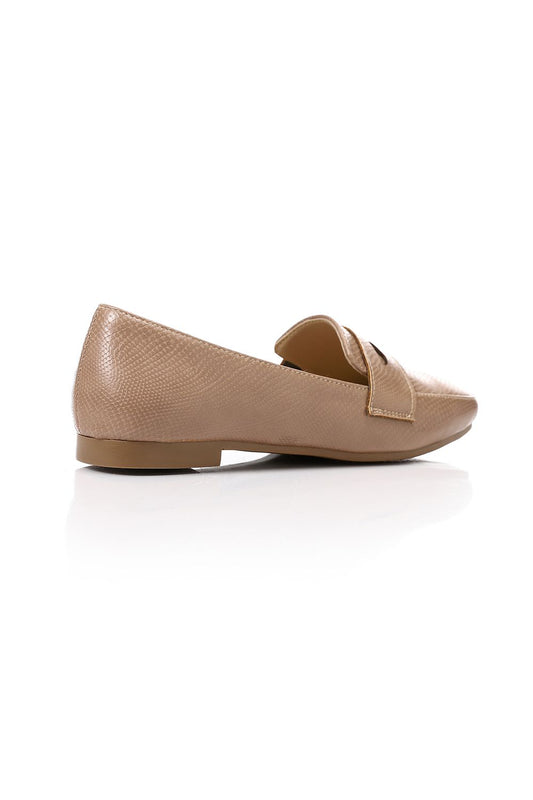 Beige Leather Flat Loafer
