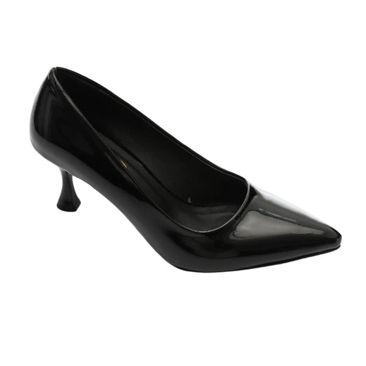 Black Shiny Leather Pointed Toe Heels